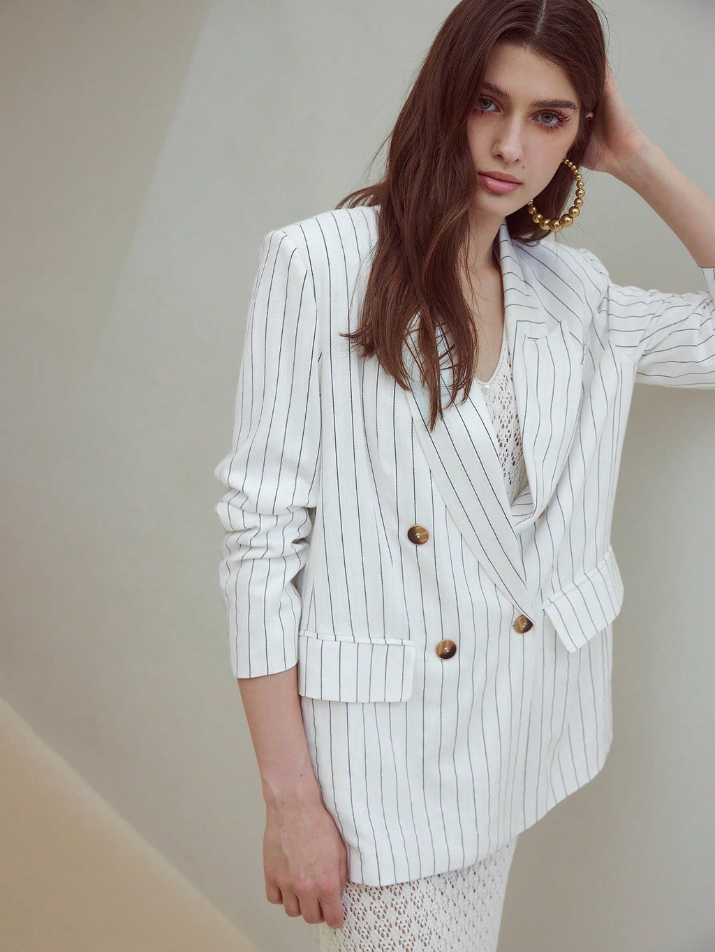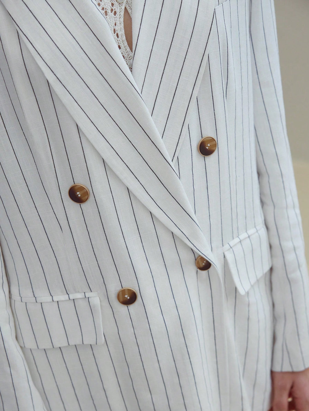 MIU STUDIO LINEN STRIPED DOUBLE BREASTED BLAZER