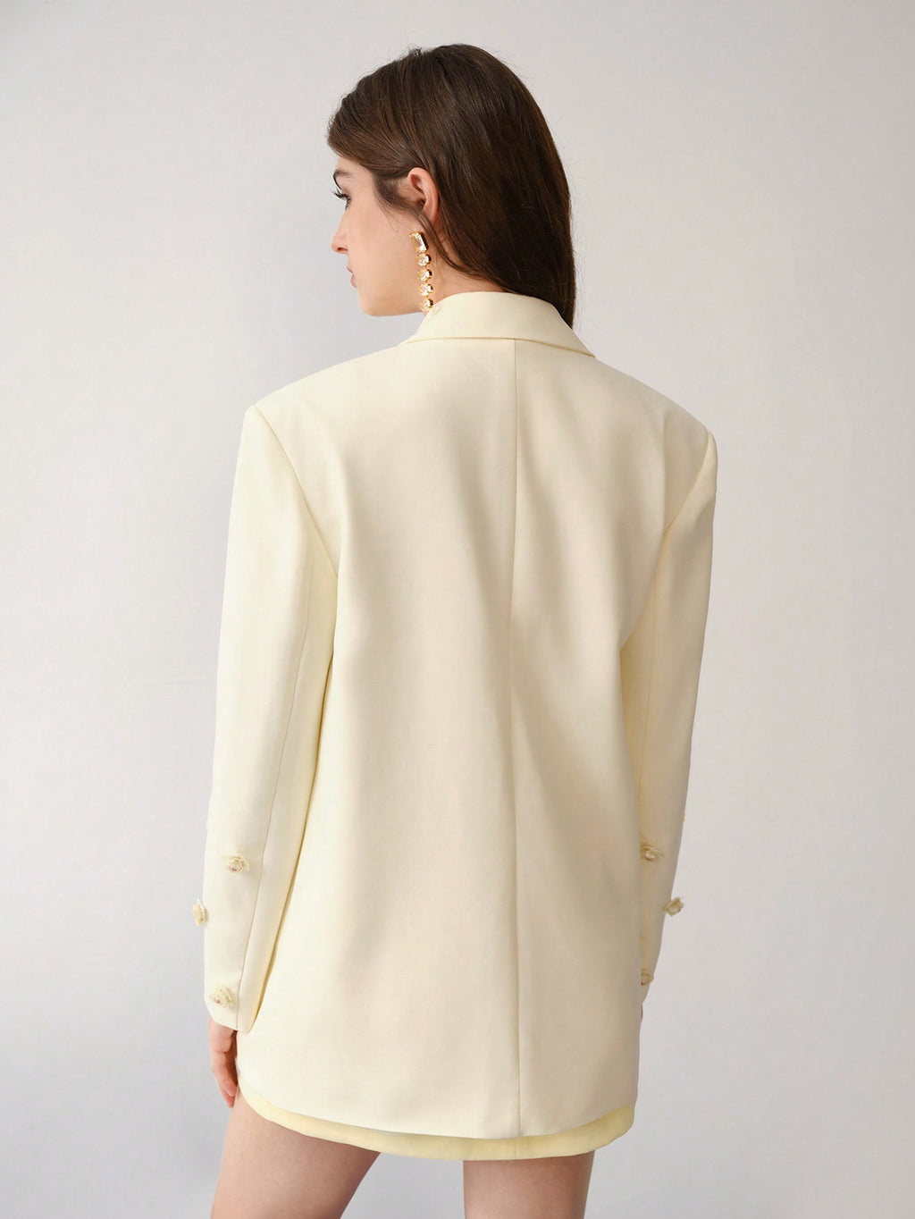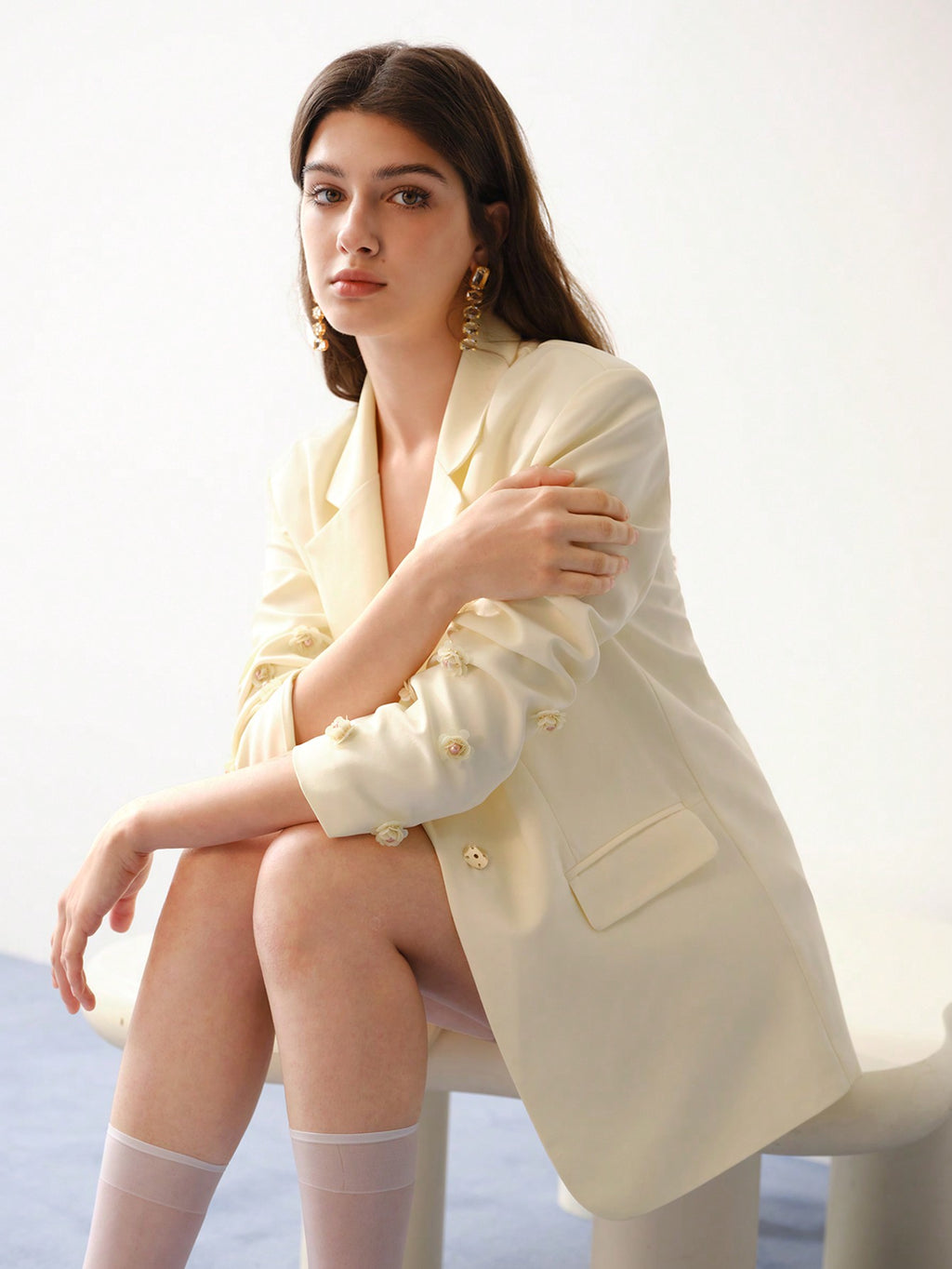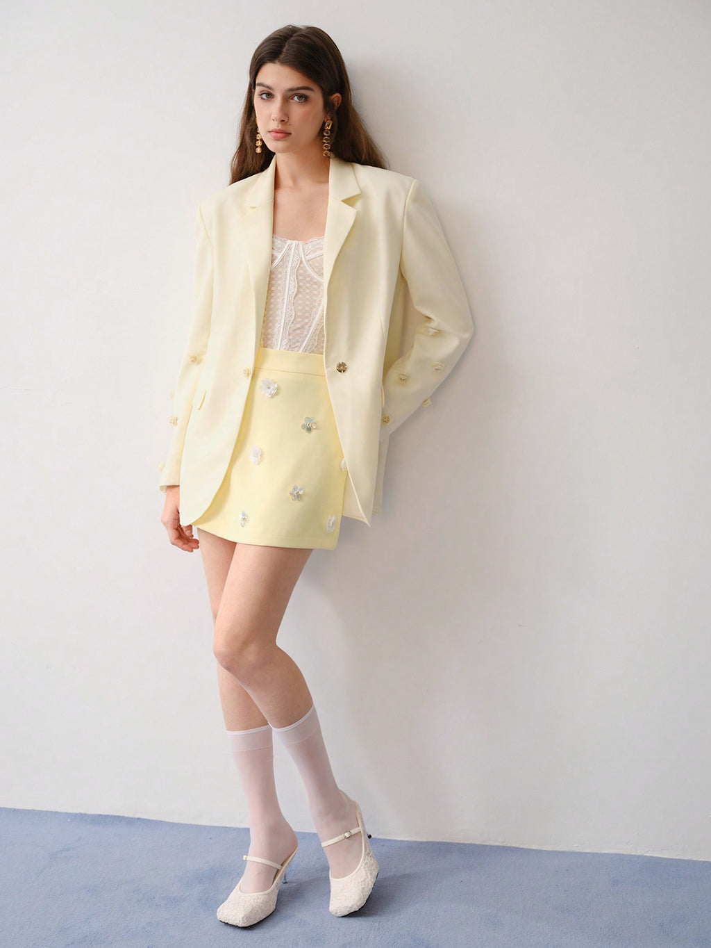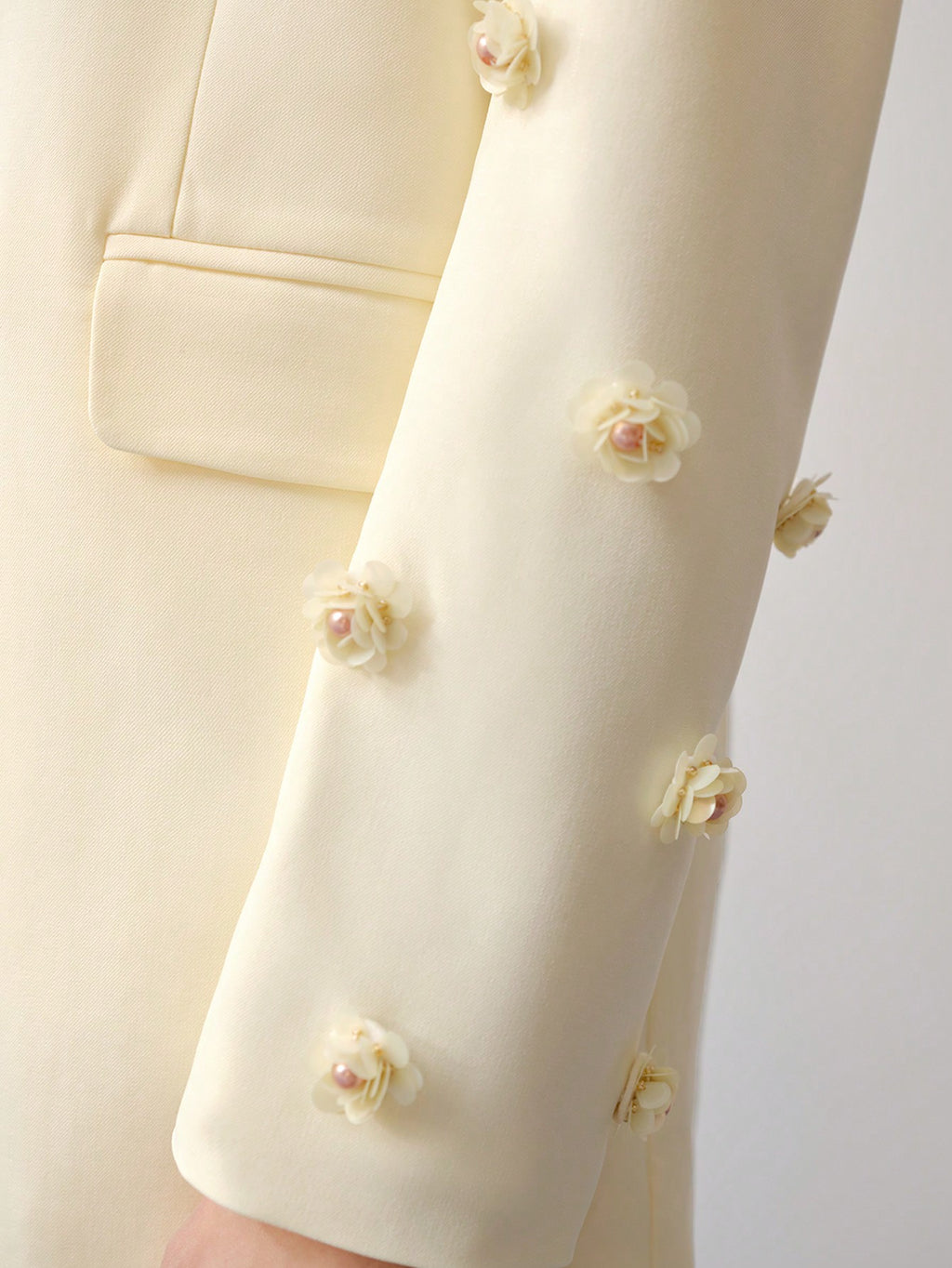 MIU STUDIO SEQUIN FLORAL PATCHED STRAIGHT BLAZER, RELAXED FIT BLAZER, SPRING BLAZER
