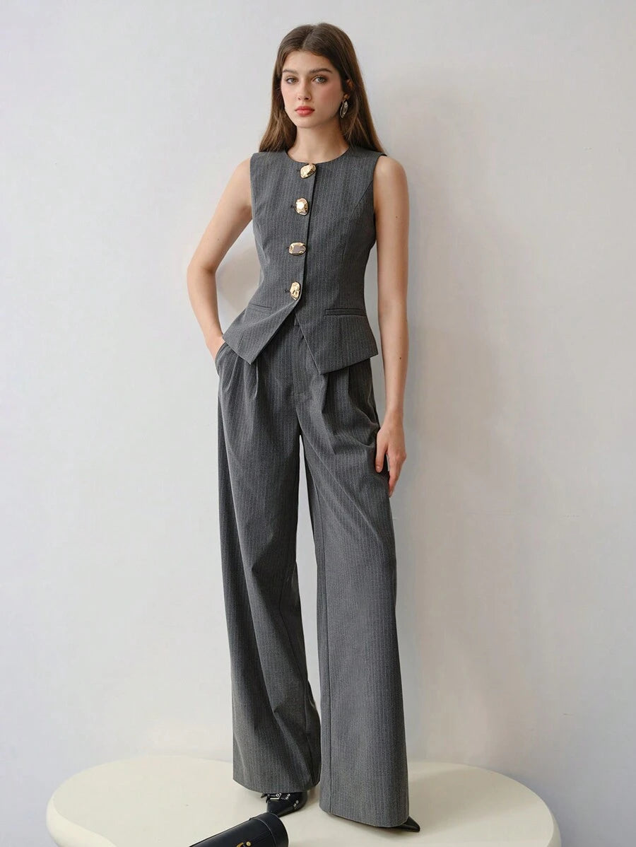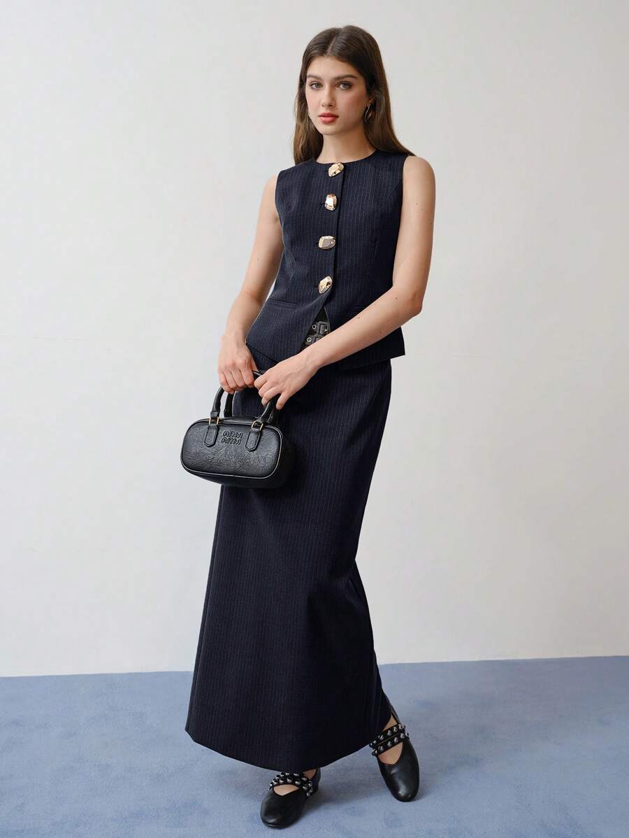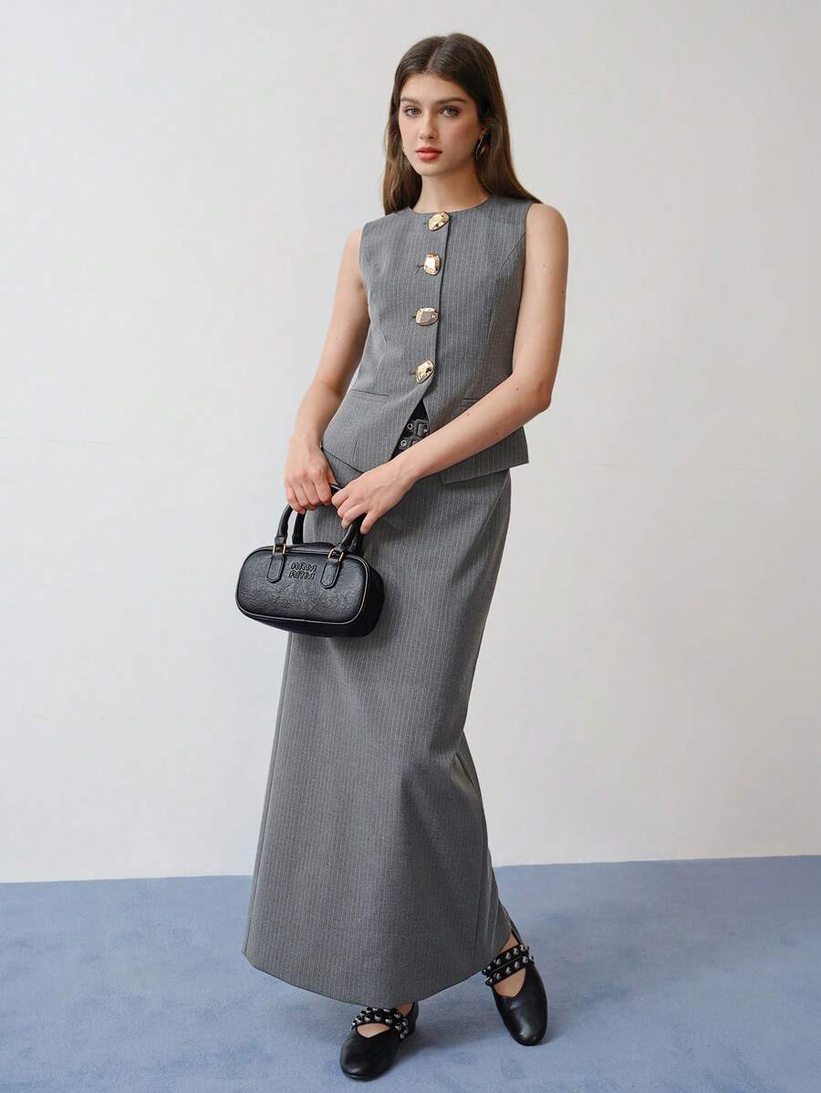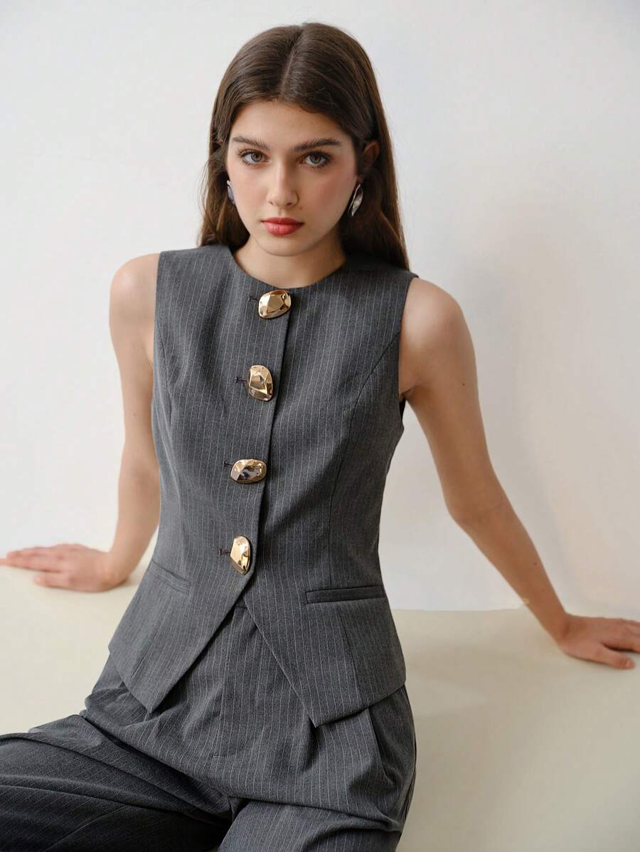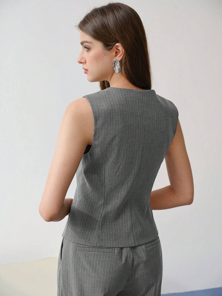 MIU STUDIO STRIPED PRINT BUTTON UP WAISTCOAT