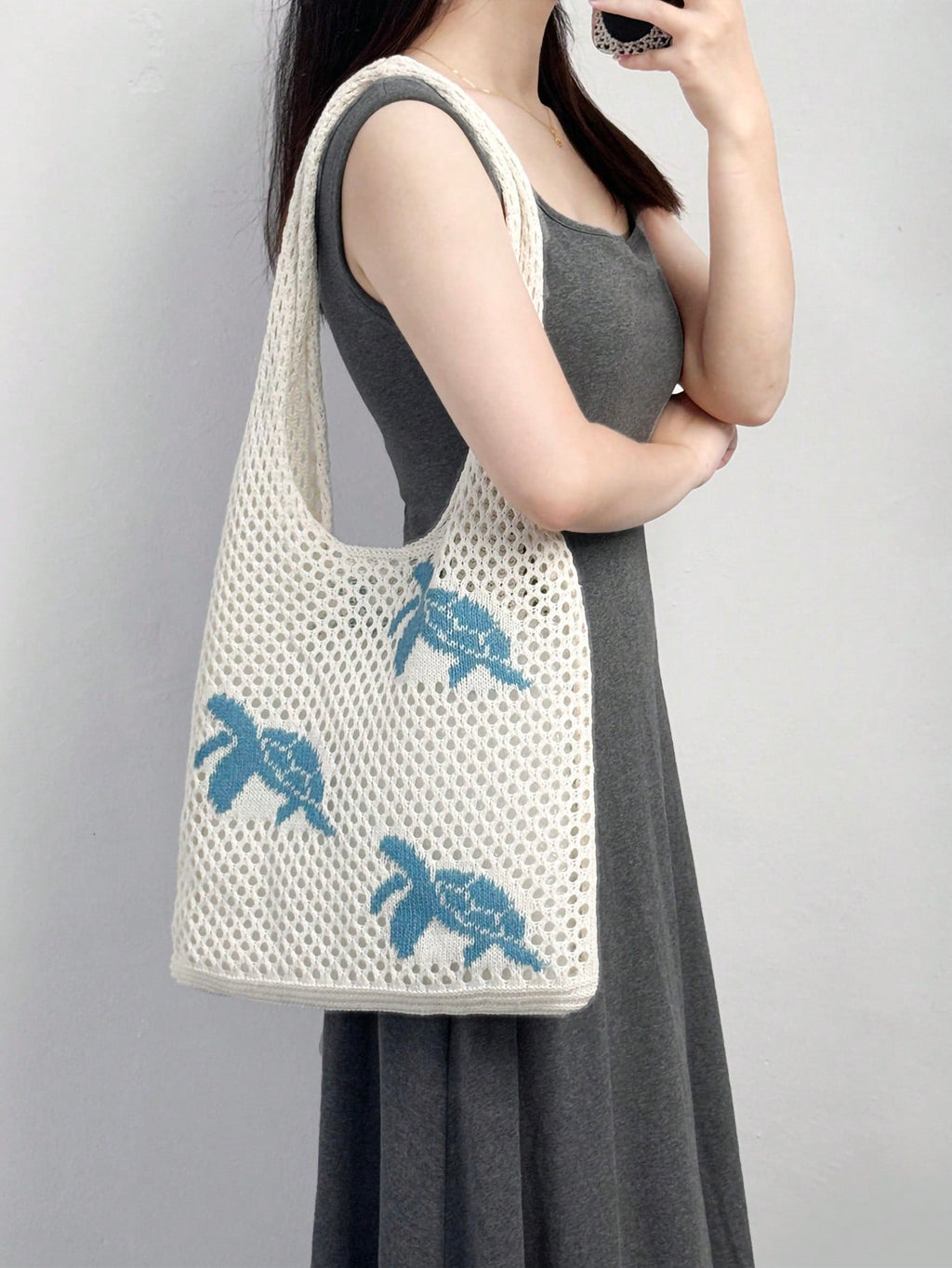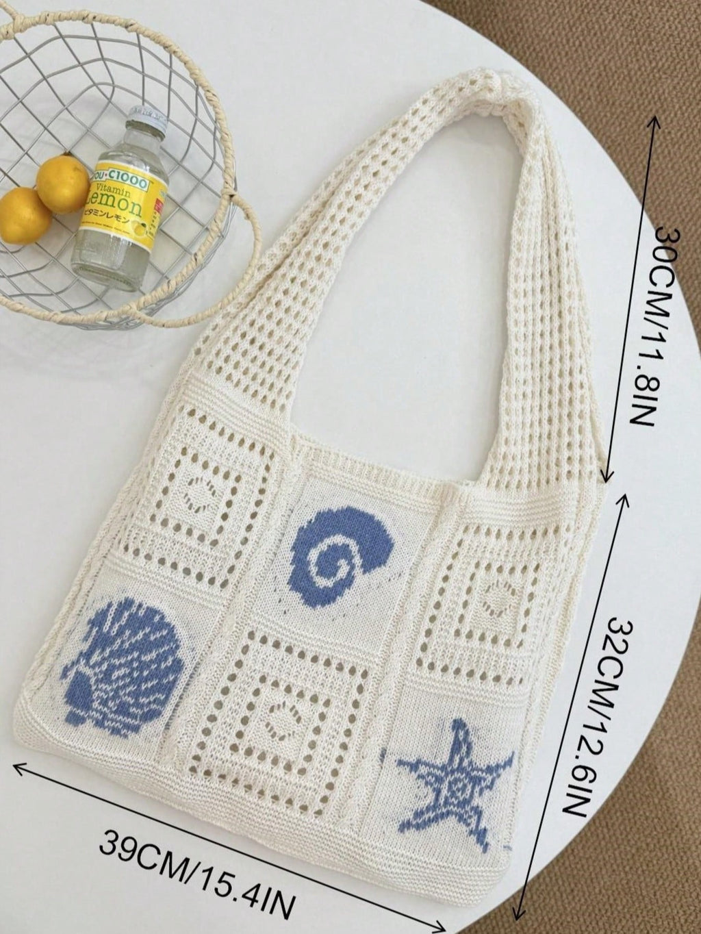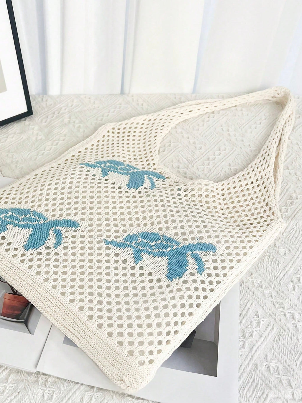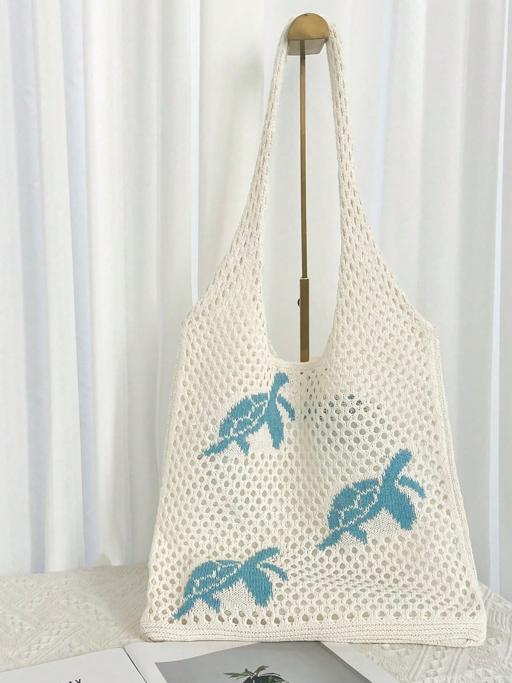 MIU Summer New Style Lady Daily Use Lightweight Tote Bags Sea Turtle Pattern Hollowed Out Knitted Crochet Beach Shopping Bags,Summer Bag,Holiday,Vacation, Perfectly Matching With Crochet Set