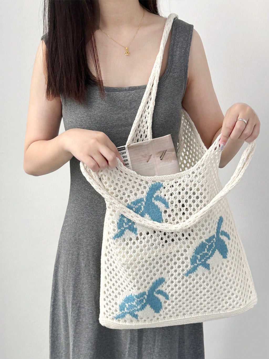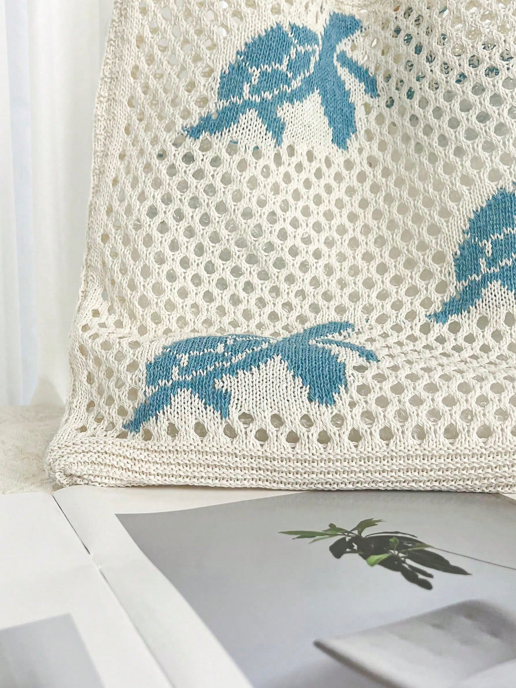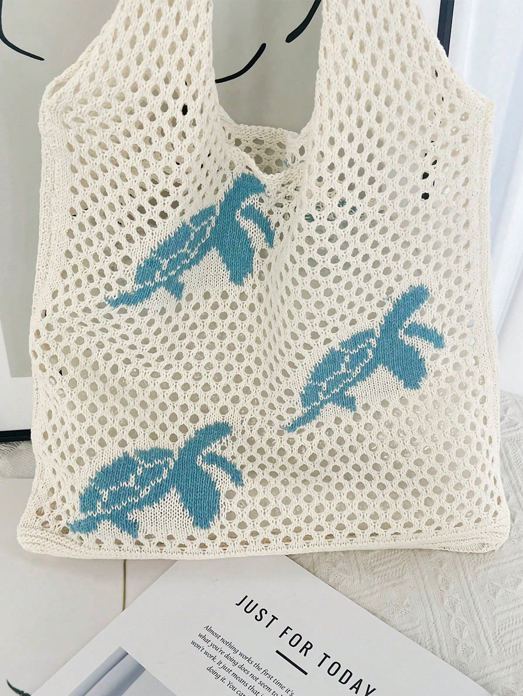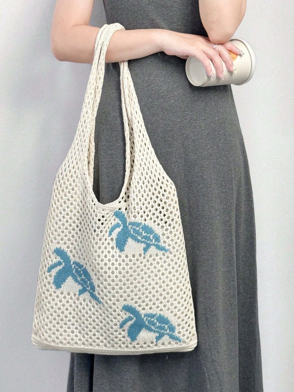 MIU Summer New Style Lady Daily Use Lightweight Tote Bags Sea Turtle Pattern Hollowed Out Knitted Crochet Beach Shopping Bags,Summer Bag,Holiday,Vacation, Perfectly Matching With Crochet Set