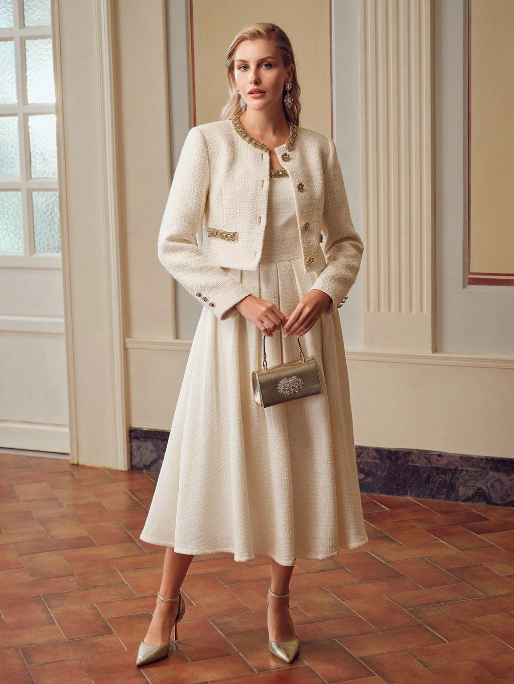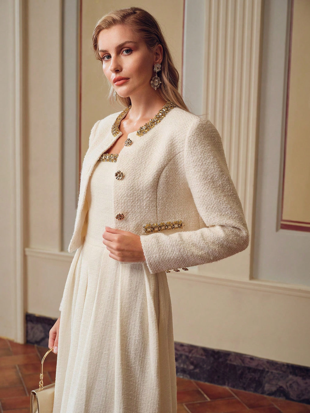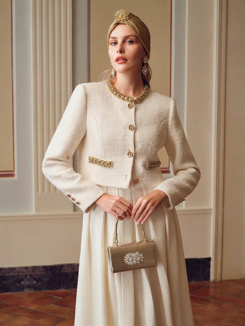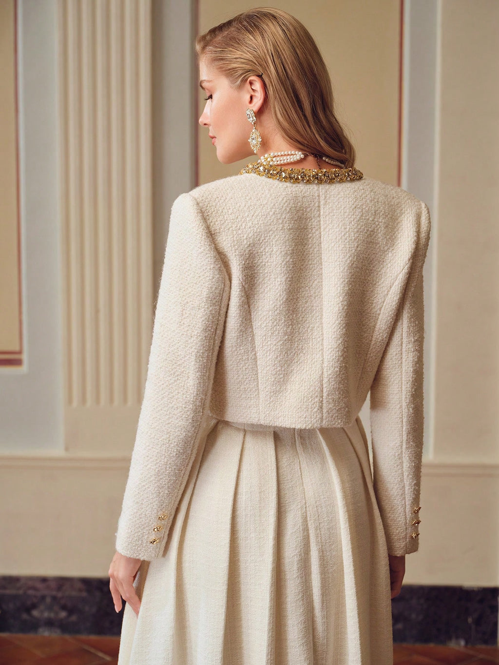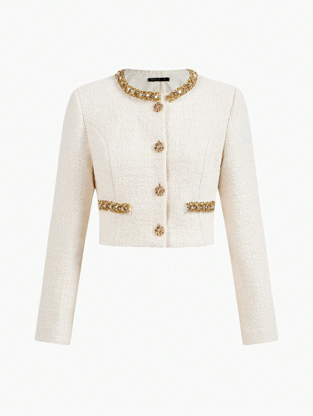 MIU TWEED RHINESTONE AND SEQUIN DETAIL CROP JACKET