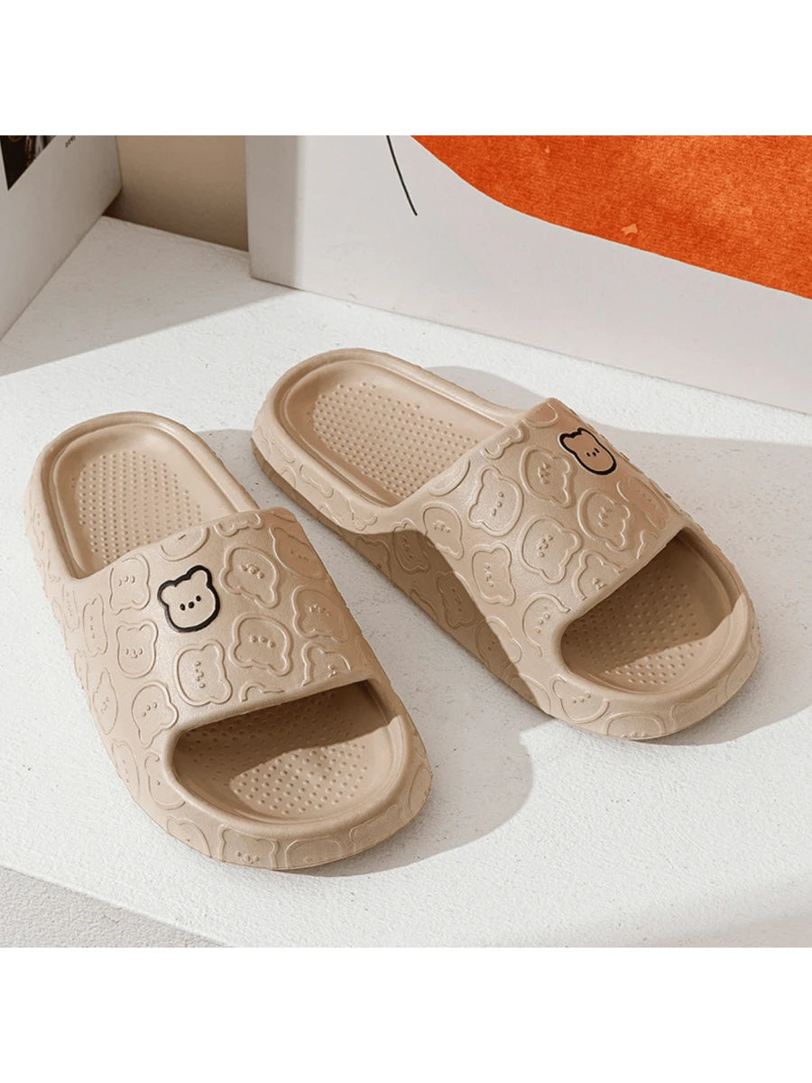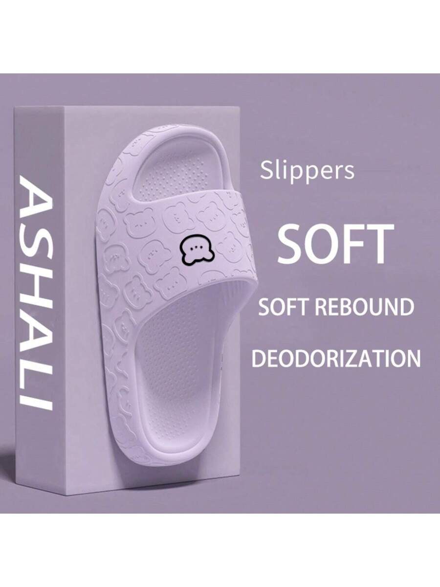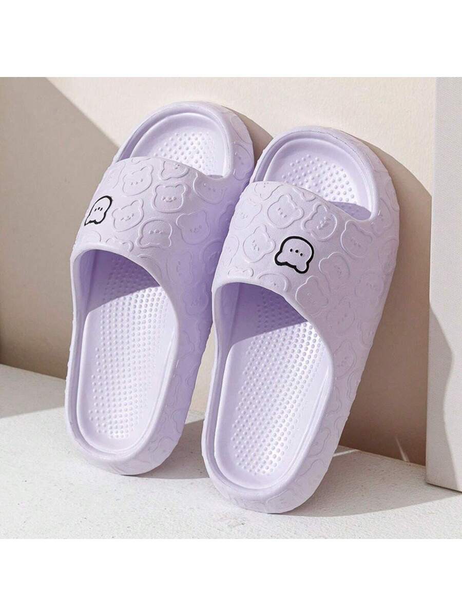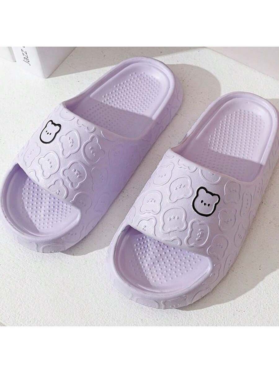 MIU Unisex Cute Cartoon Bear Purple Breathable Indoor Slippers, EVA Lightweight Simple Style Can Be Worn Outdoor, Couples Slippers
