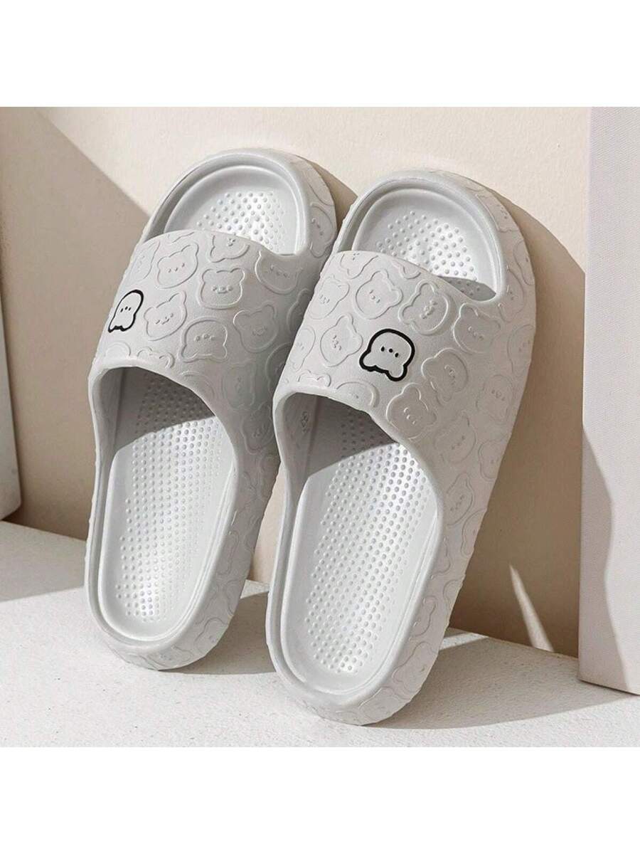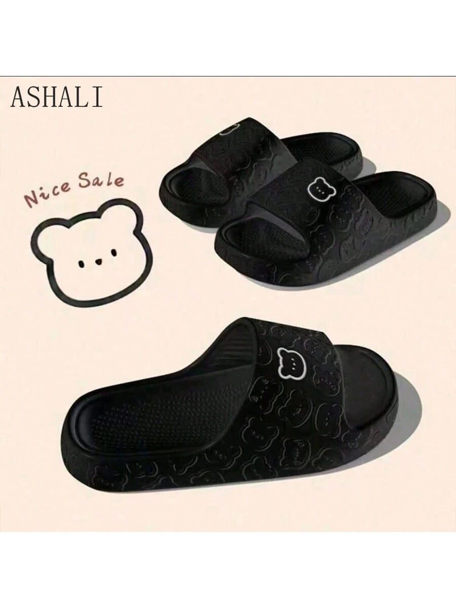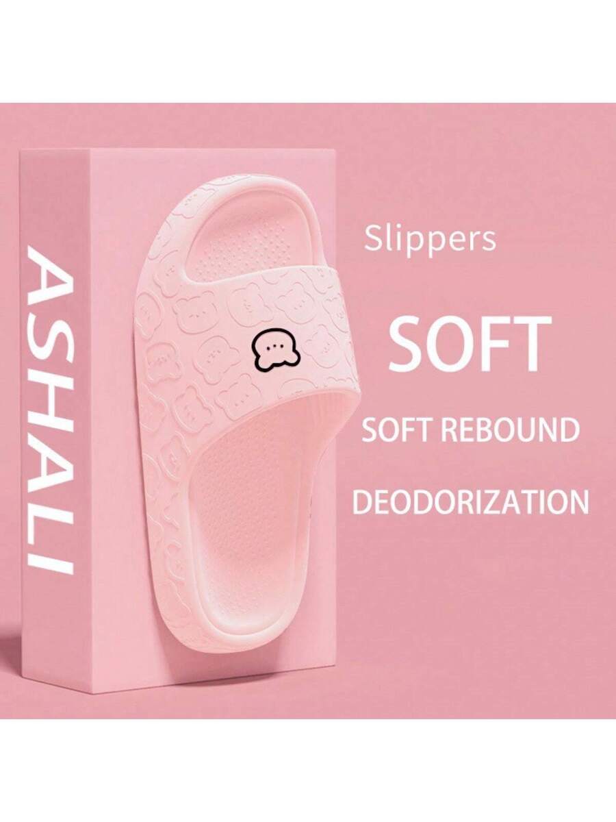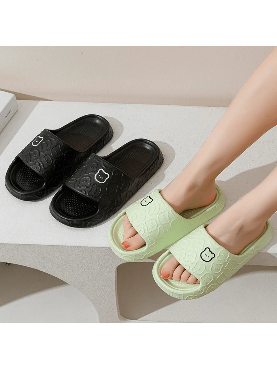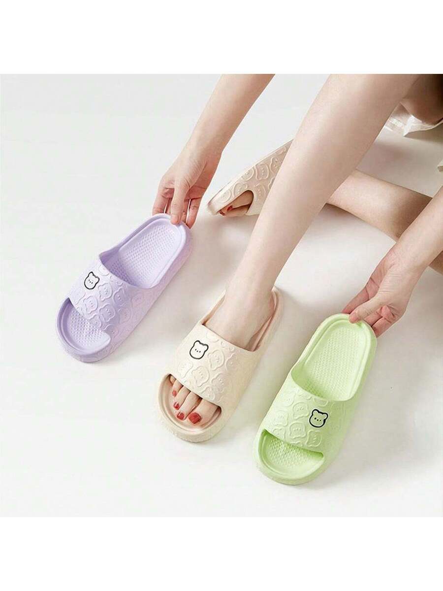 MIU Unisex Cute Cartoon Bear Purple Breathable Indoor Slippers, EVA Lightweight Simple Style Can Be Worn Outdoor, Couples Slippers