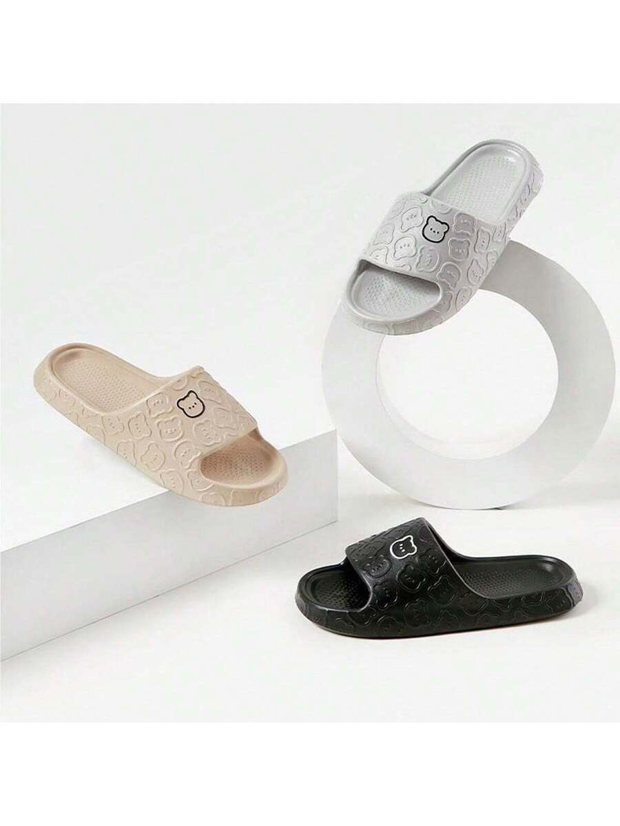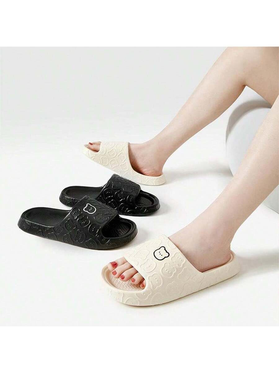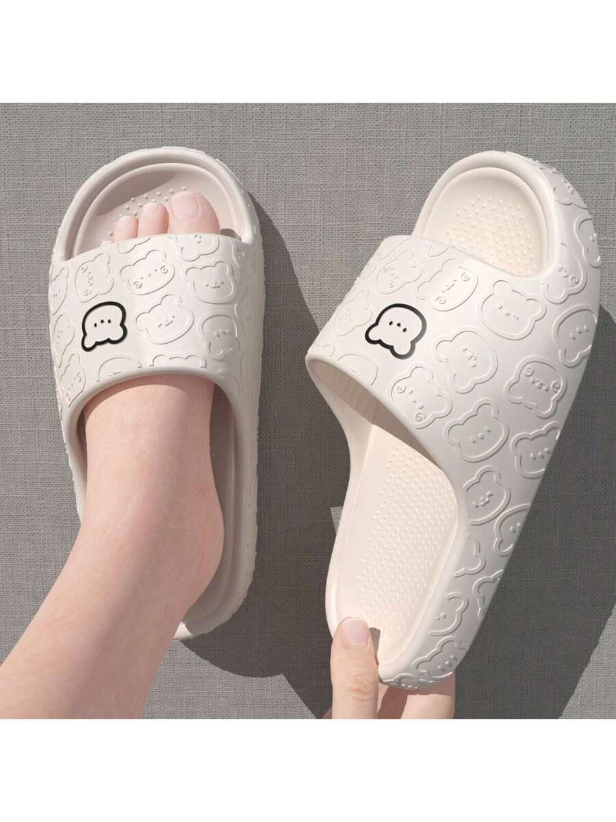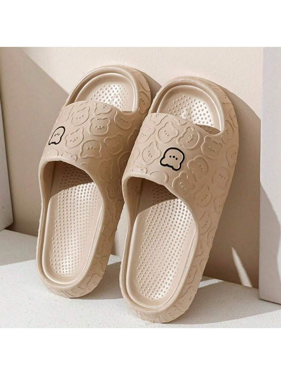 MIU Unisex Cute Cartoon Bear Purple Breathable Indoor Slippers, EVA Lightweight Simple Style Can Be Worn Outdoor, Couples Slippers