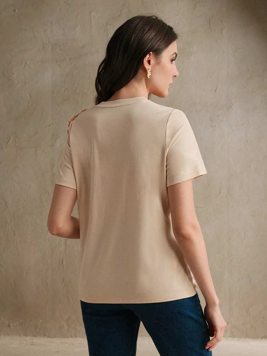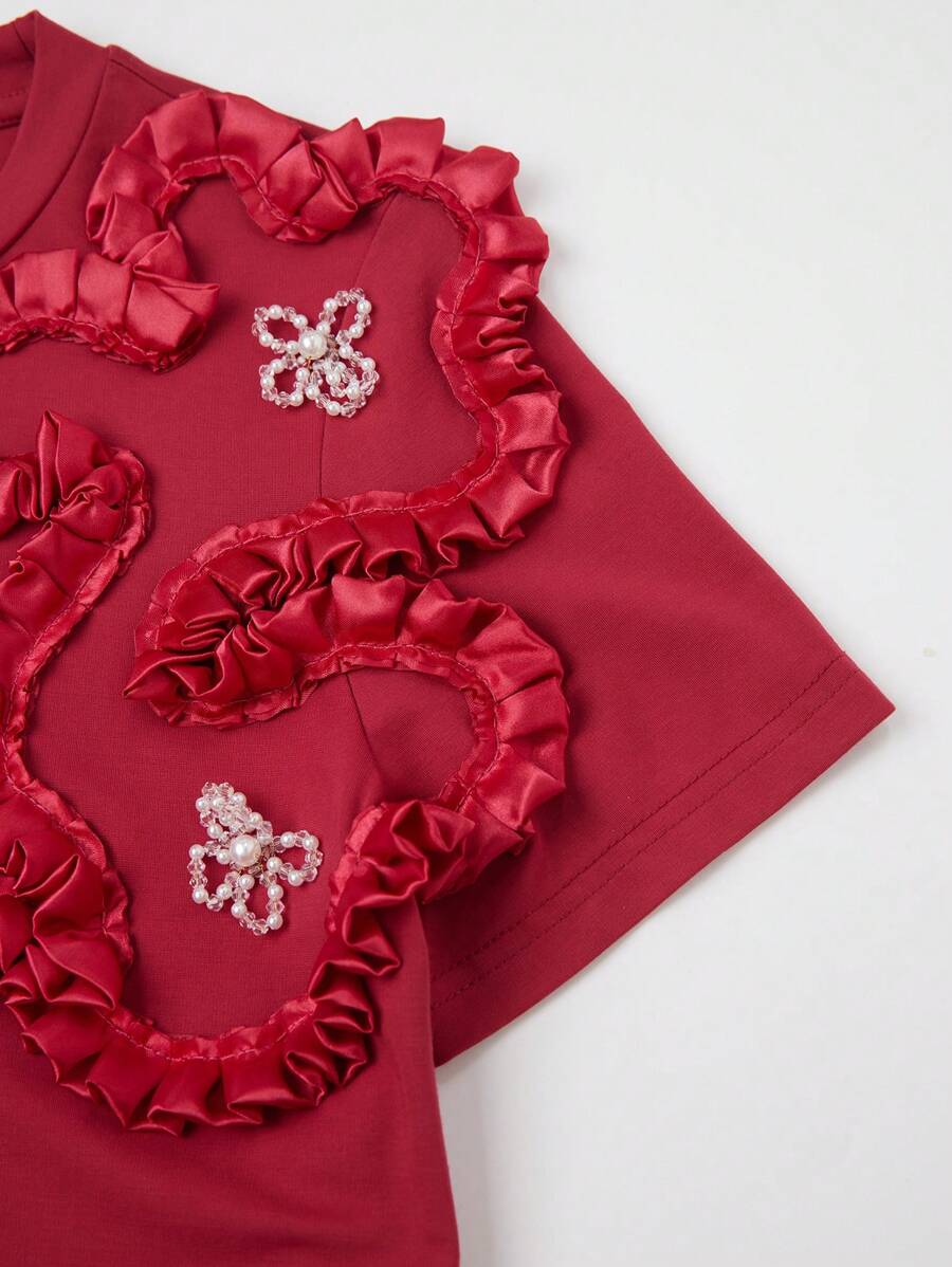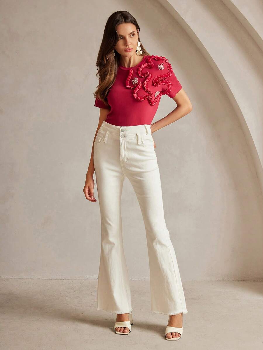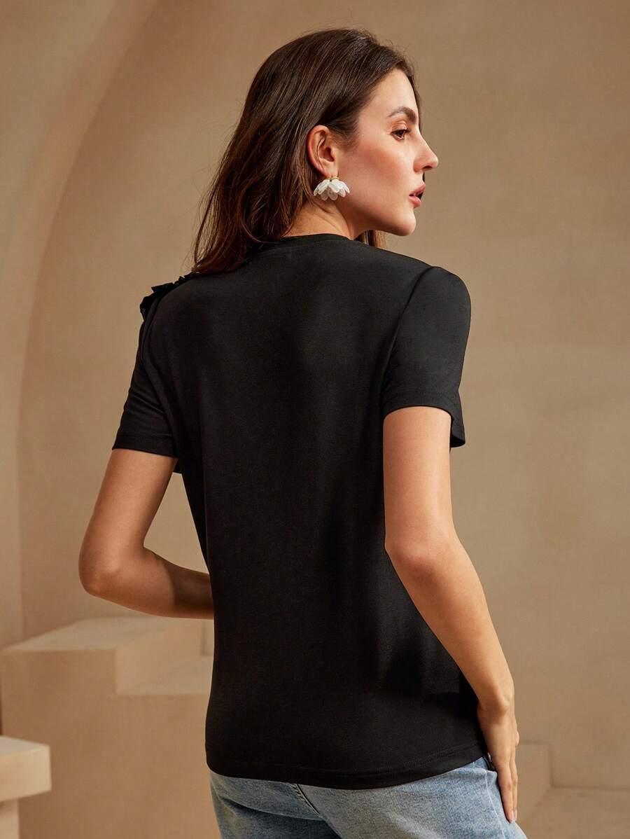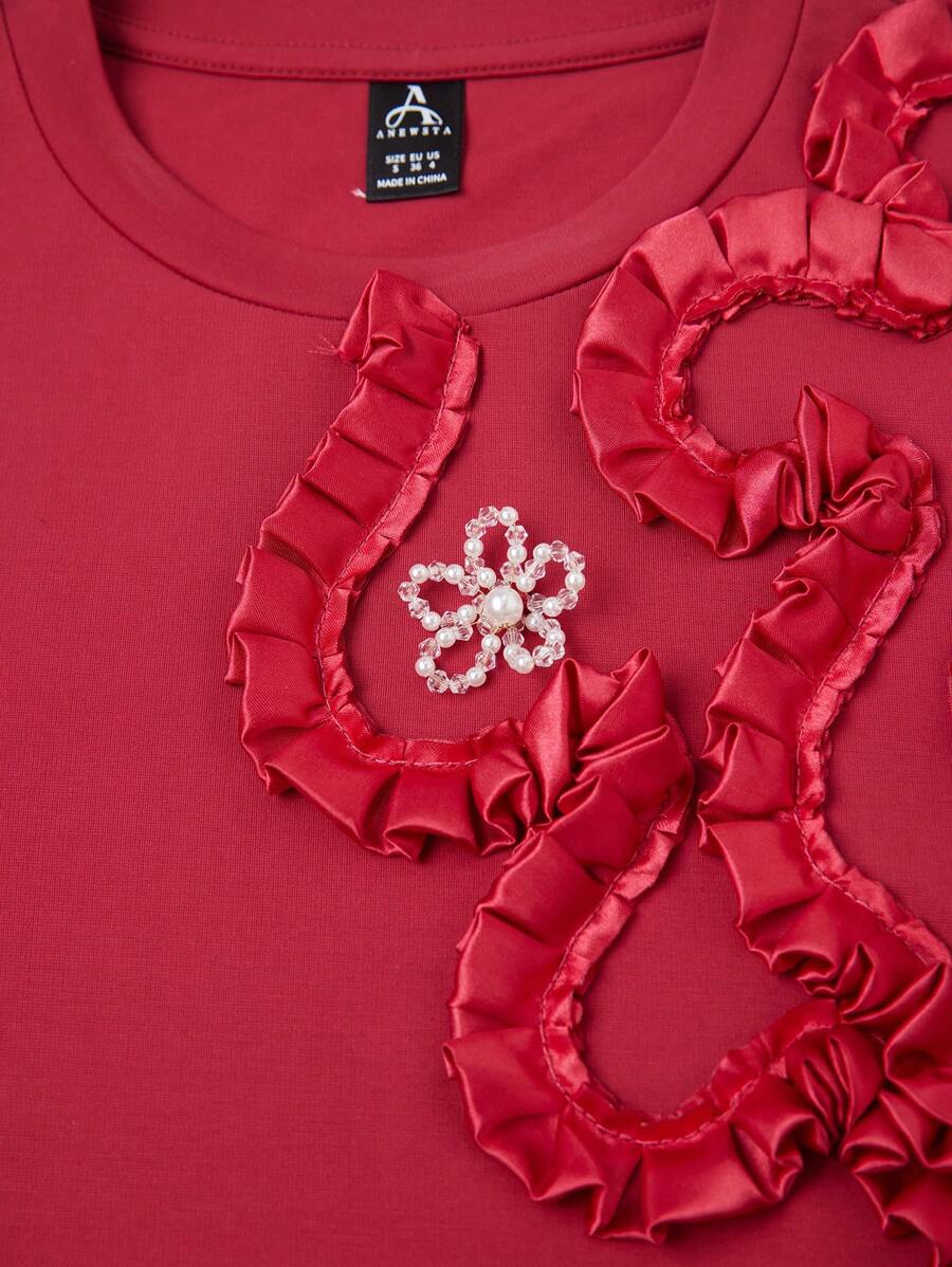 MIU Urban Blue Elasticized 3D Flower Short Sleeve T-Shirt For Women, Spring Summer