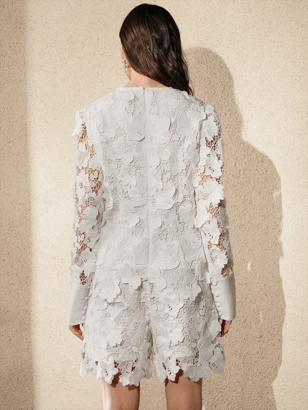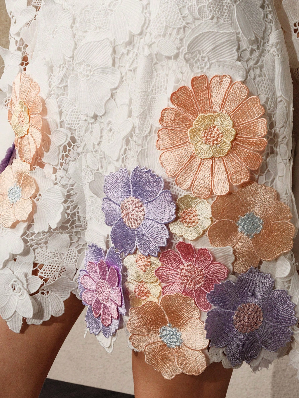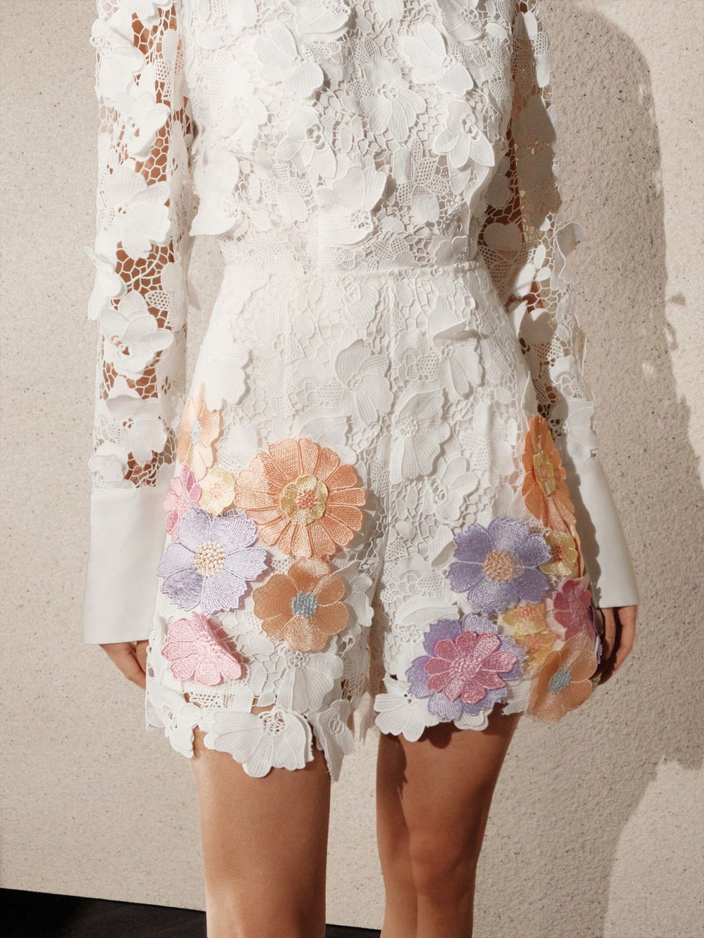 MIU White Lace 3D Floral Shorts For Women, Suitable For Spring, Valentine's Day, Date Night, Vacation