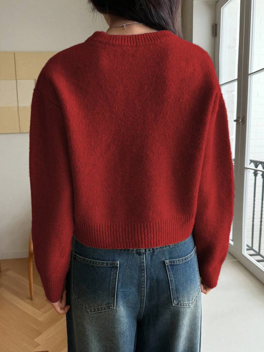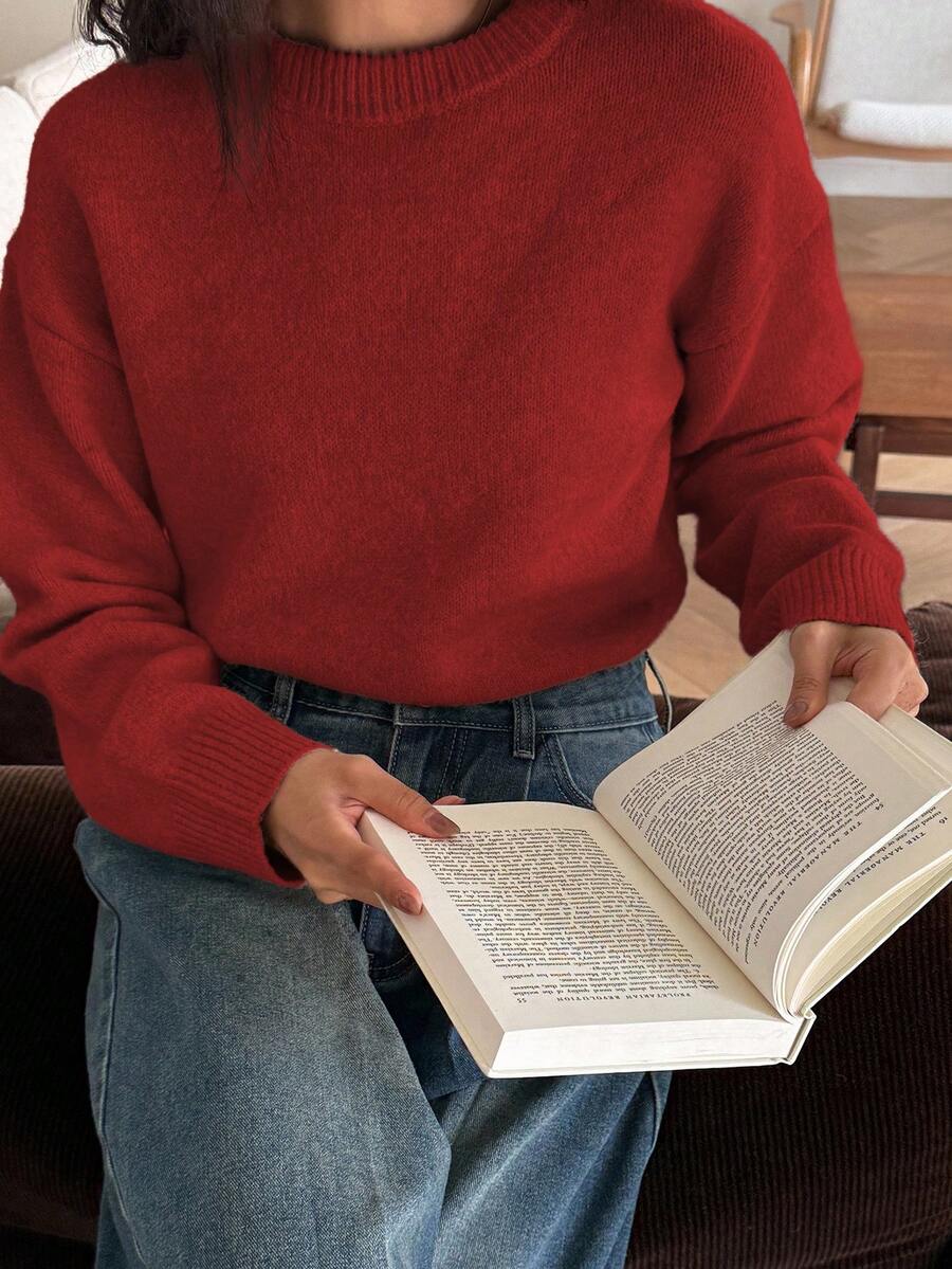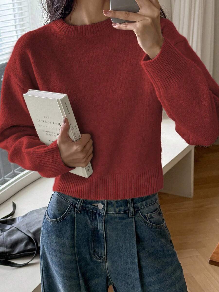 MIU Women Casual Solid Color Crew Neck Sweater, Autumn