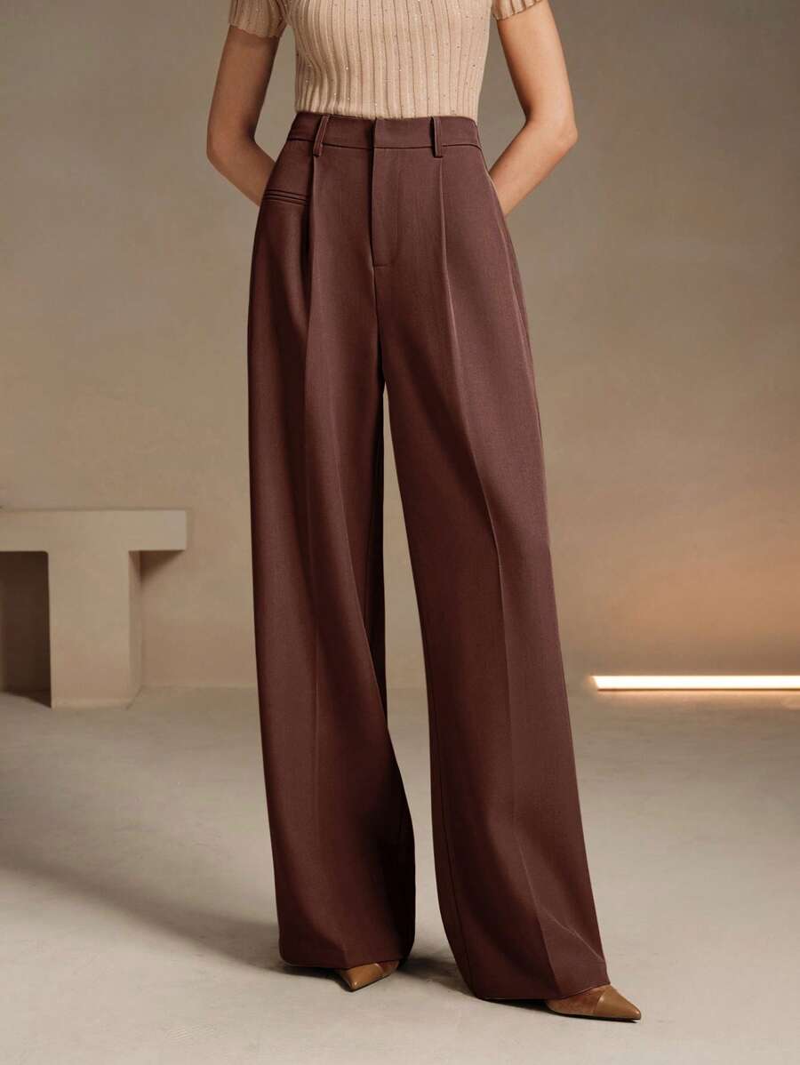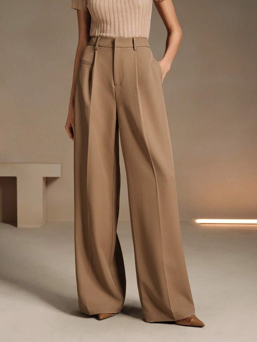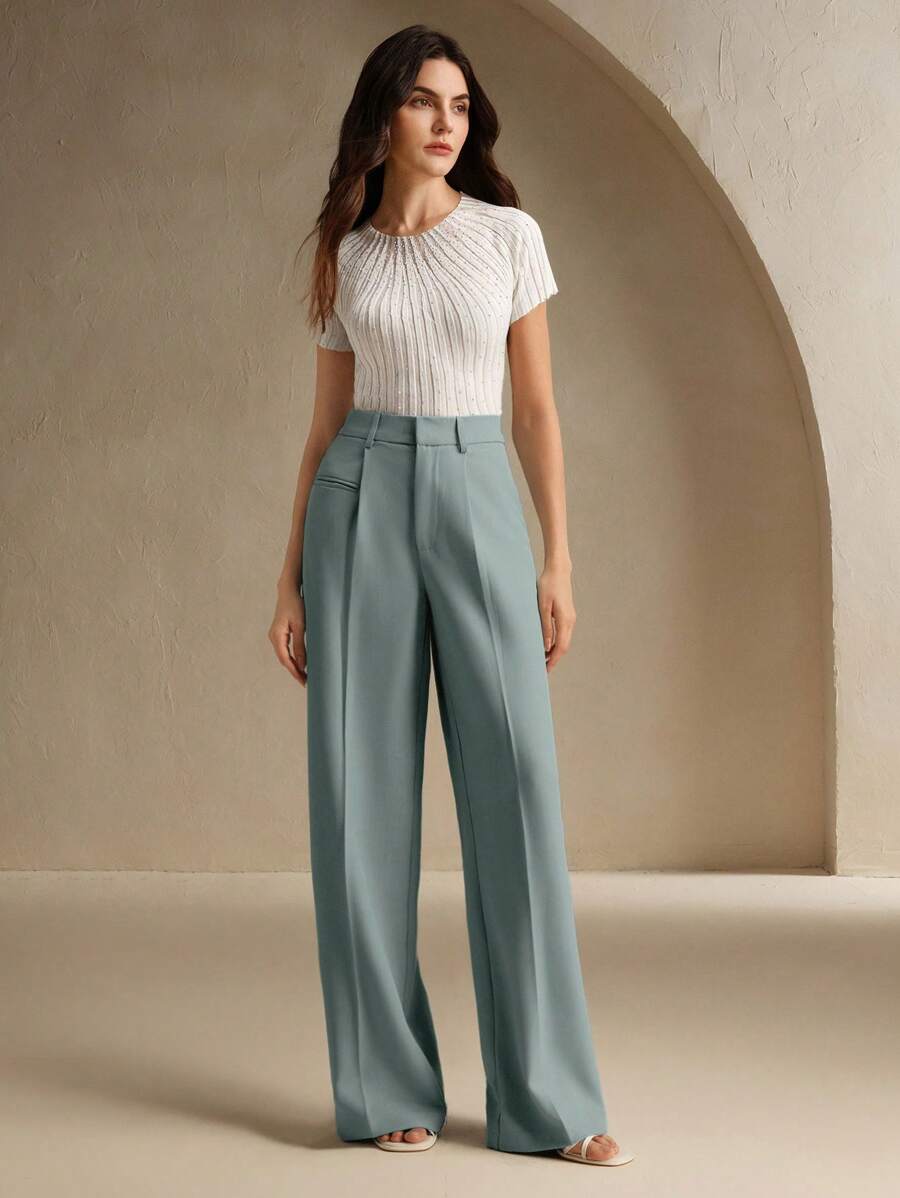 MIU Women Classic Straight Pants, Elegant Commuter Chic Modest Style, Suitable For Spring/Summer Vacation