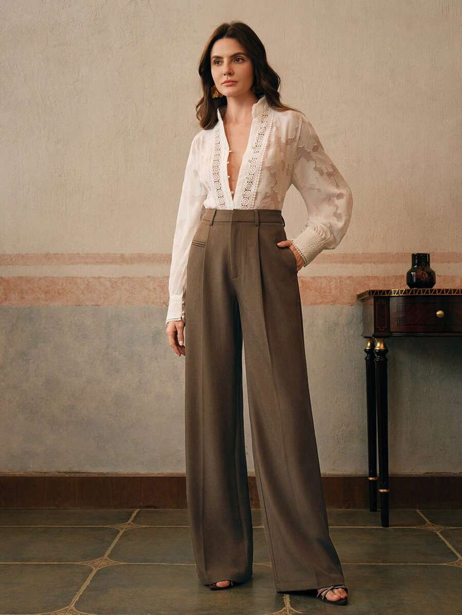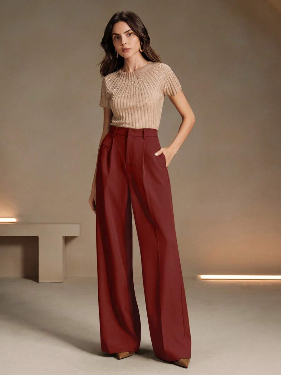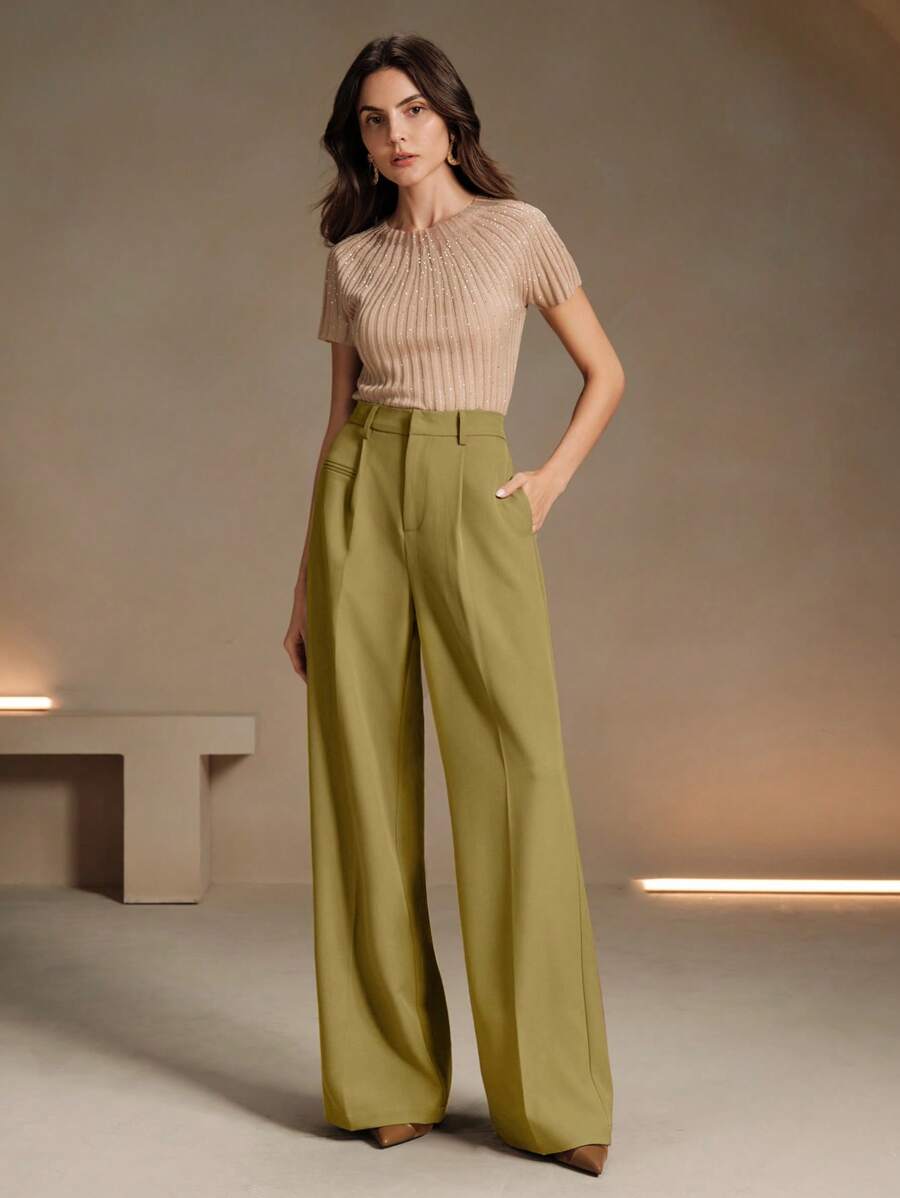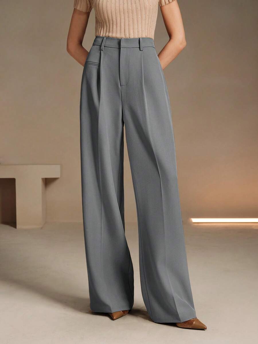 MIU Women Classic Straight Pants, Elegant Commuter Chic Modest Style, Suitable For Spring/Summer Vacation