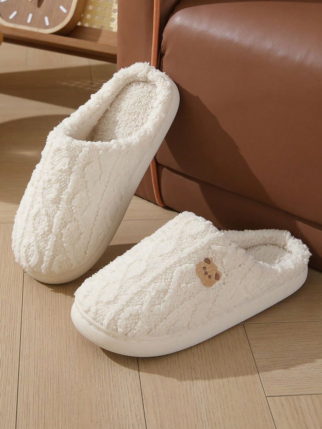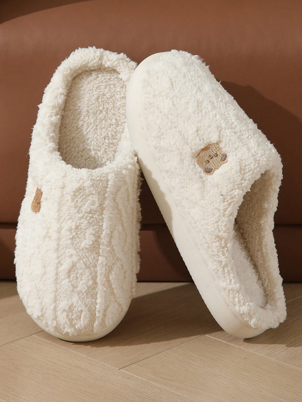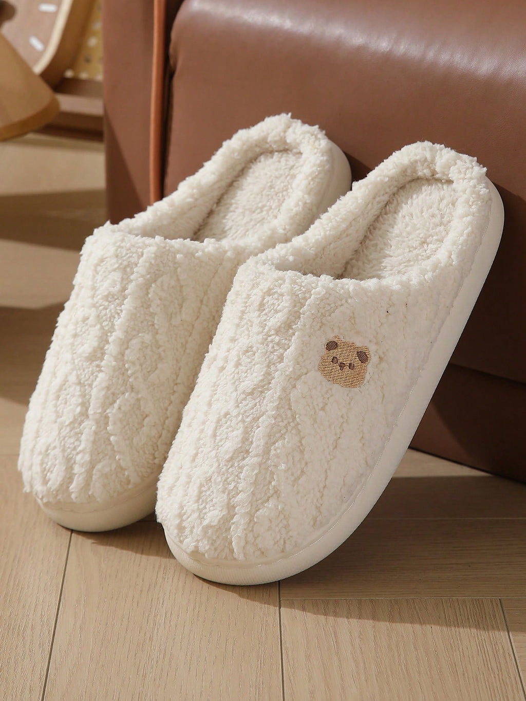 MIU Women Cute Cartoon Bear Plush Slippers, Anti-Slip Wear-Resistant Comfortable Warm House Slippers For Autumn/Winter