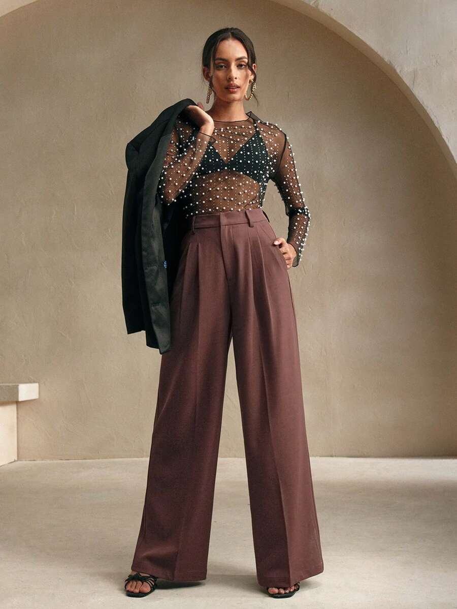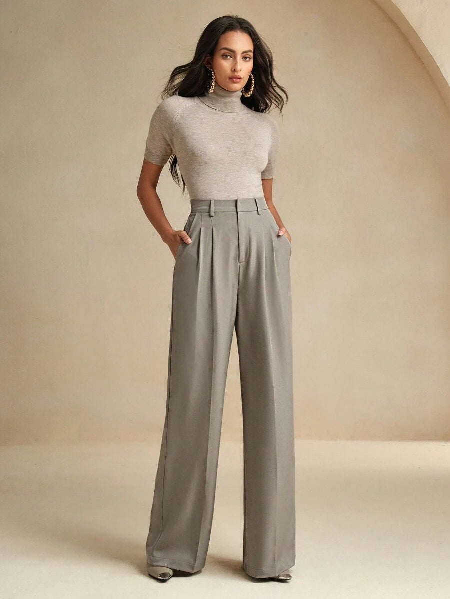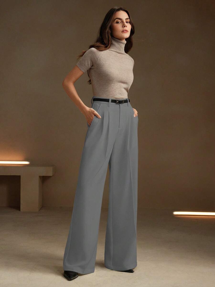 MIU Women Elegant Modern Fashion Office Wear Straight Leg Suit Pants, Spring/Summer Outfits