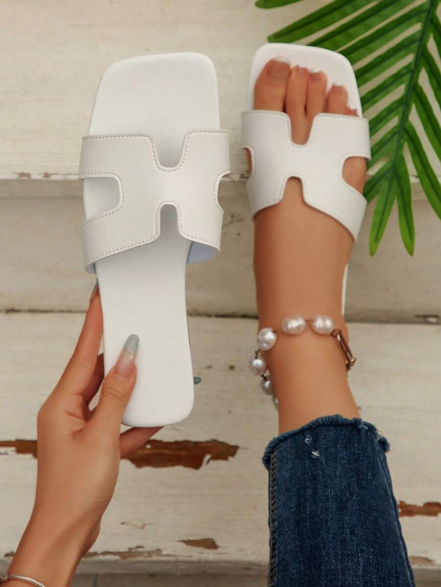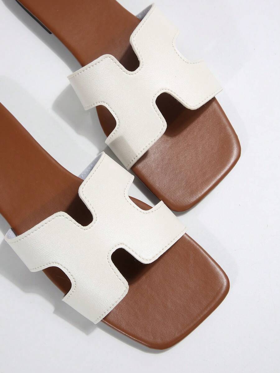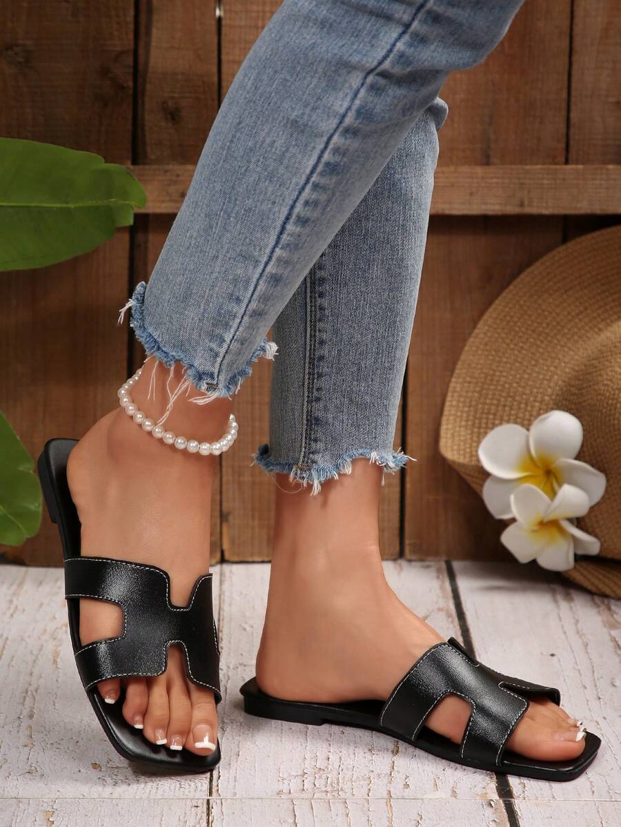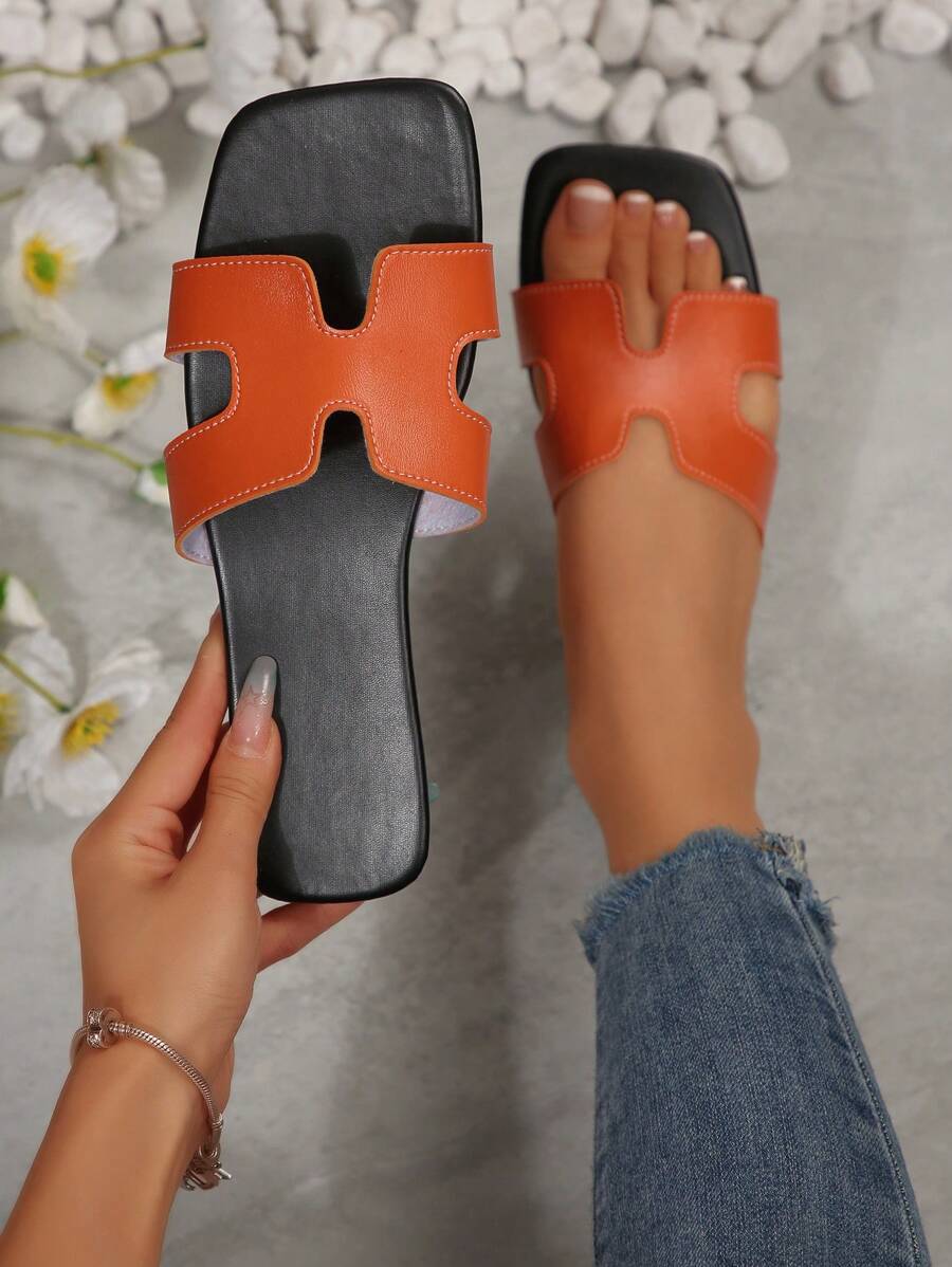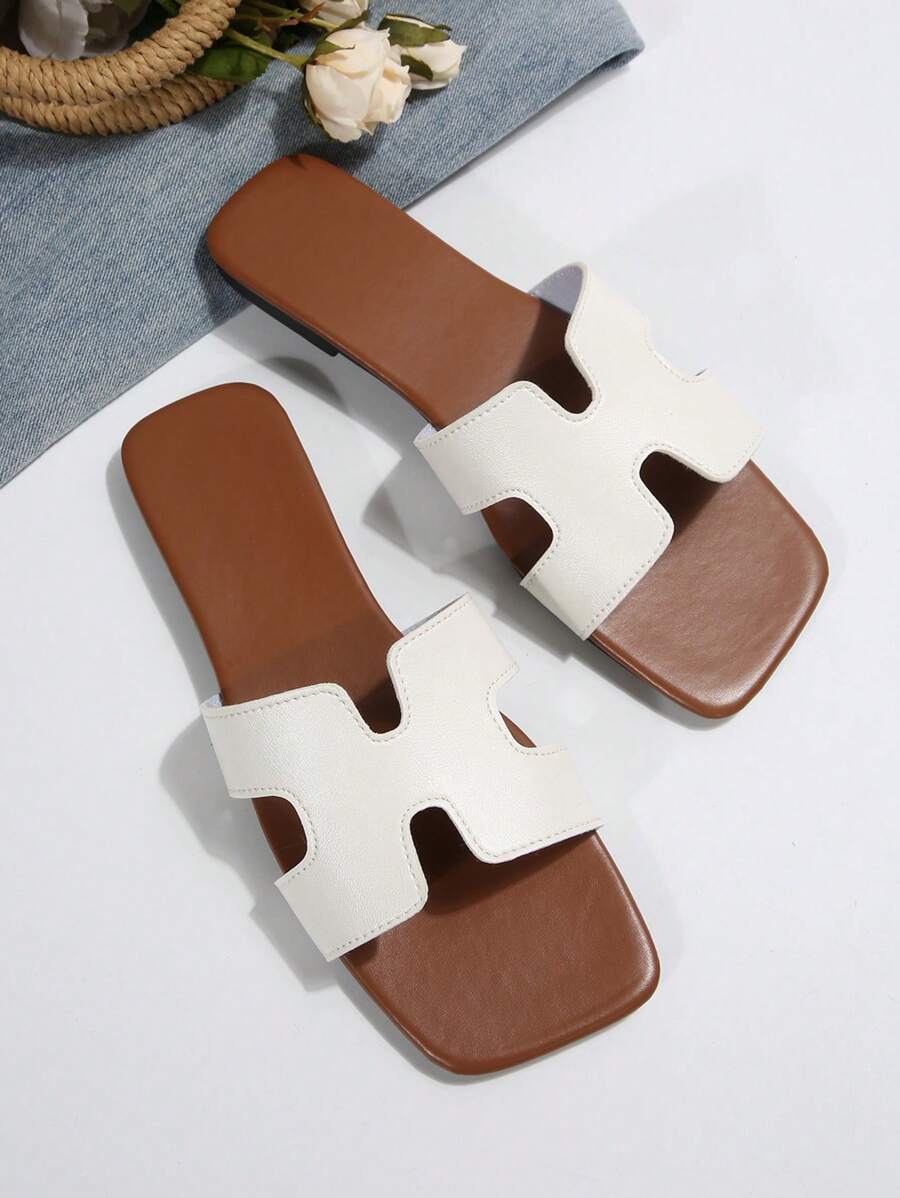 MIU Women Fashion Flat Open Toe Slide Sandals, Versatile Ladies Spring/Summer New Casual Slippers