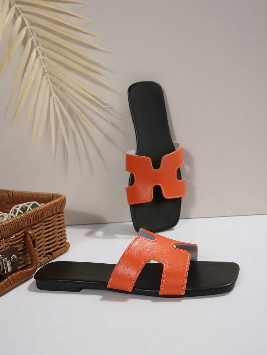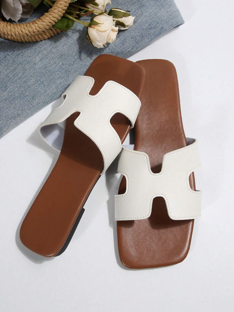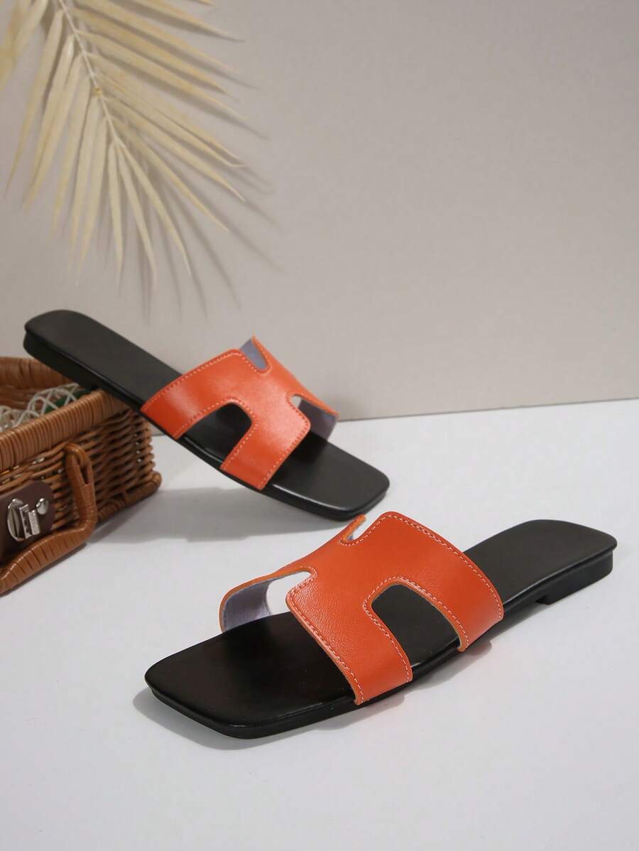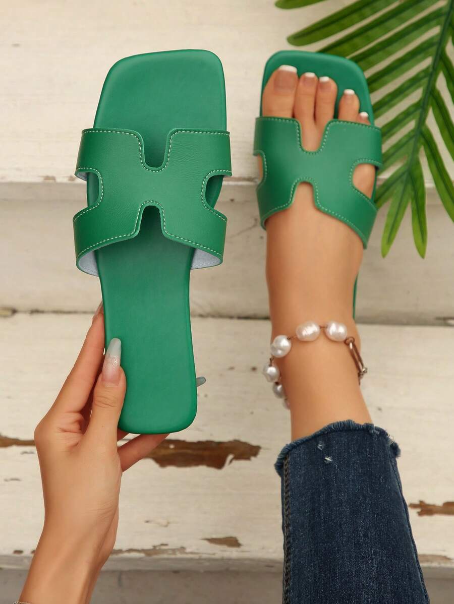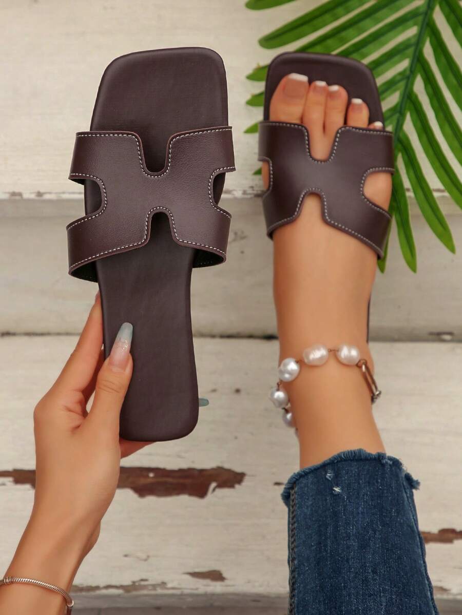 MIU Women Fashion Flat Open Toe Slide Sandals, Versatile Ladies Spring/Summer New Casual Slippers