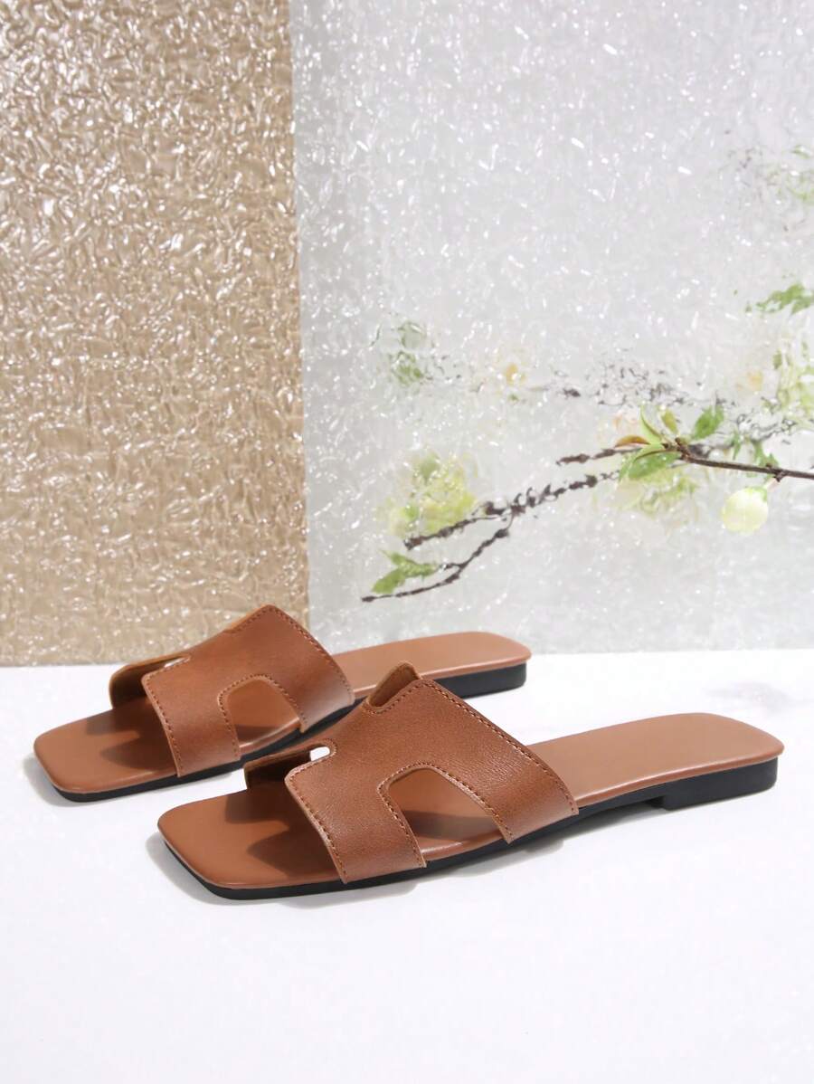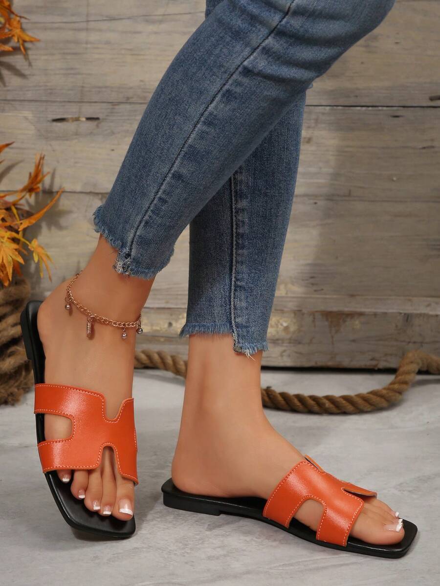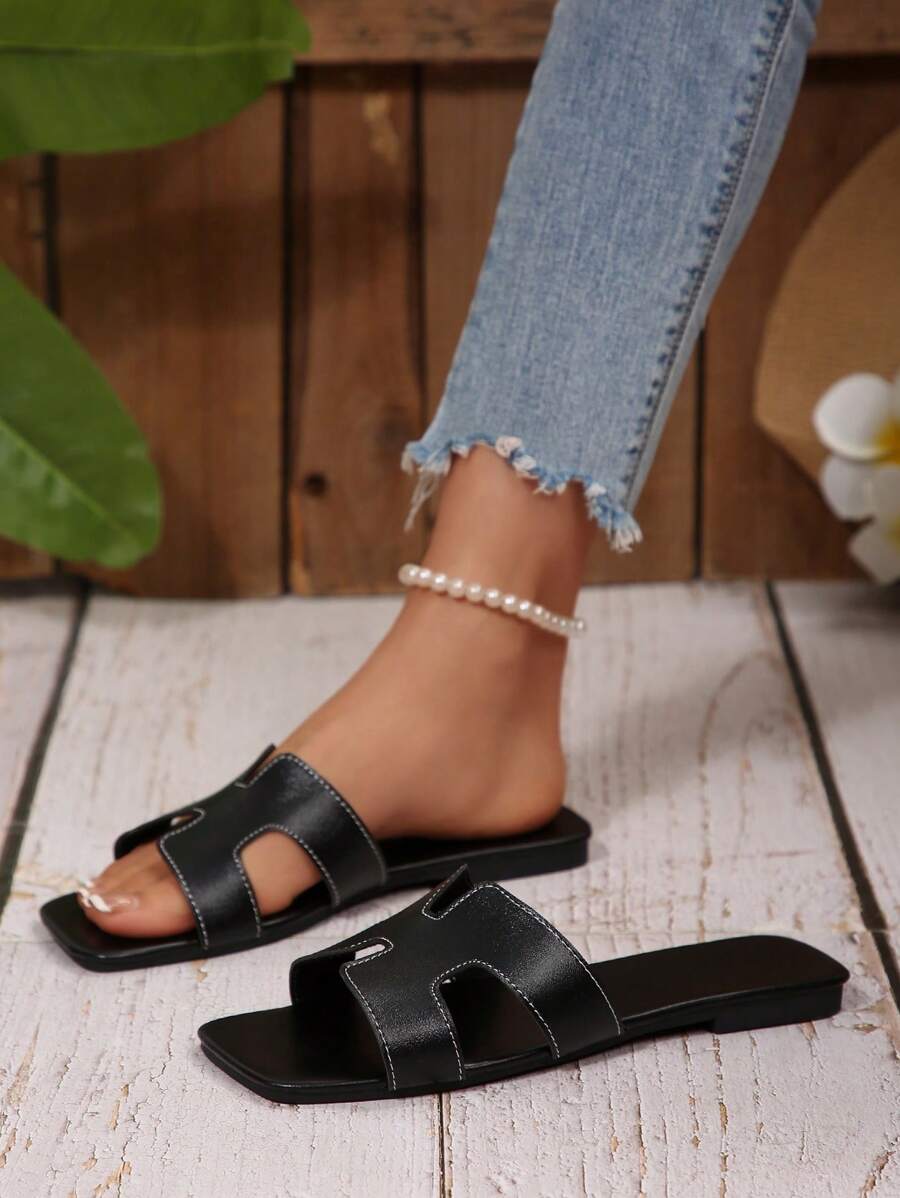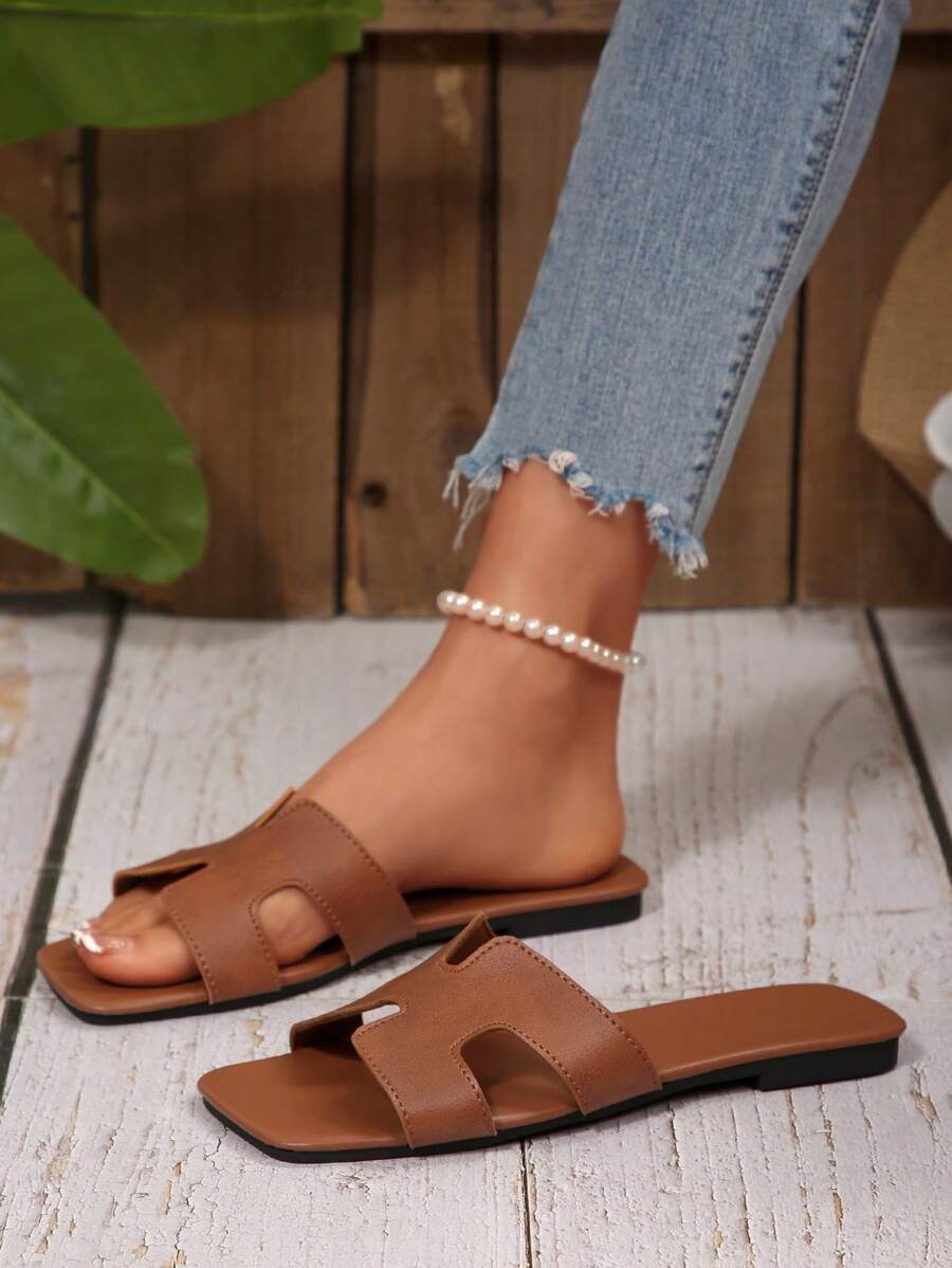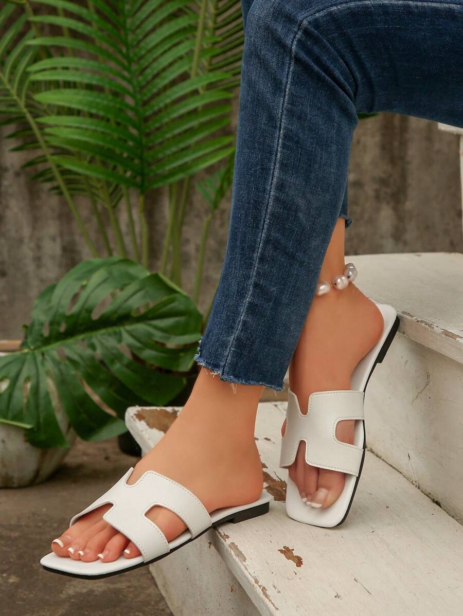 MIU Women Fashion Flat Open Toe Slide Sandals, Versatile Ladies Spring/Summer New Casual Slippers