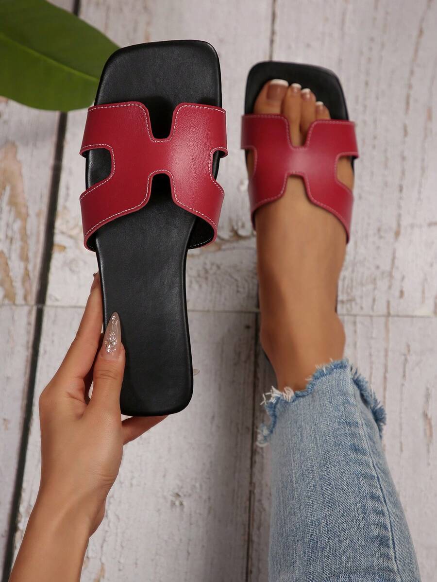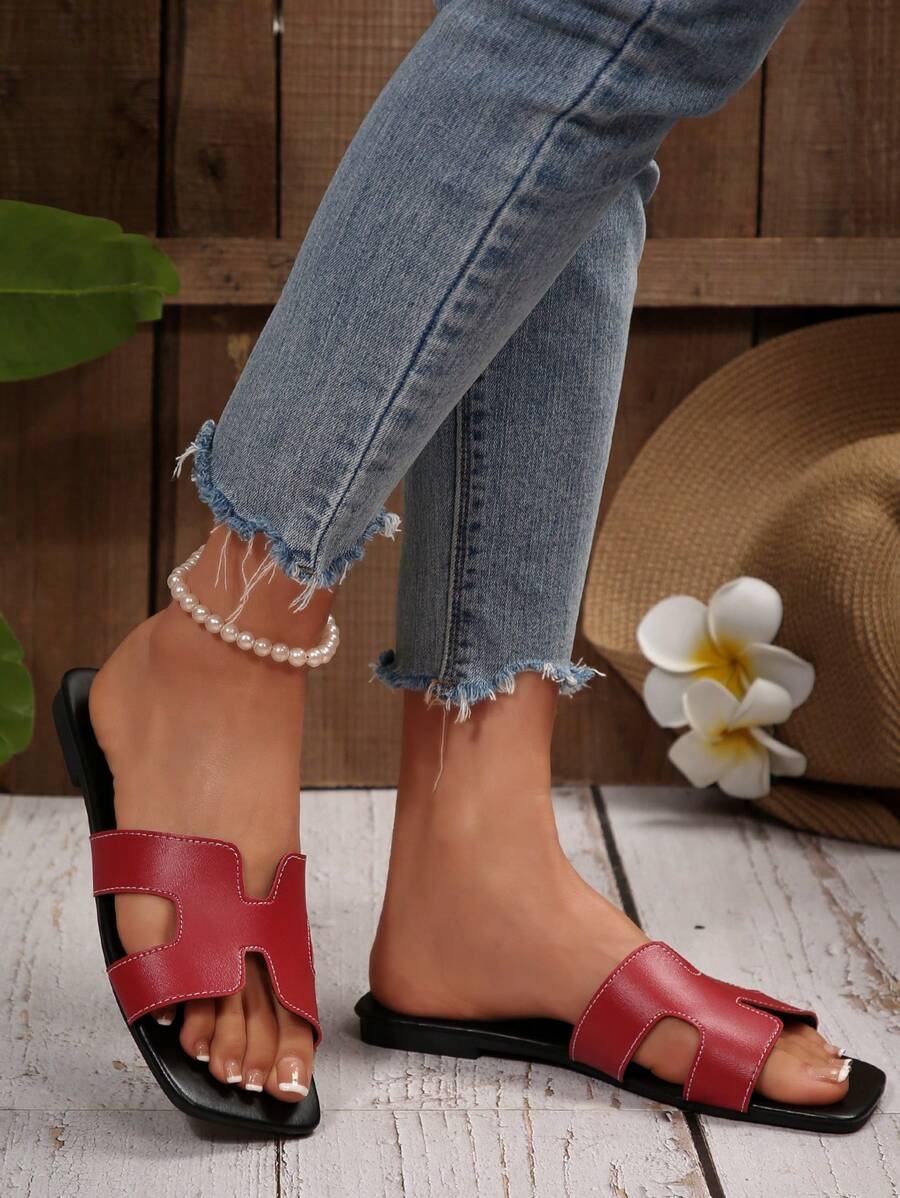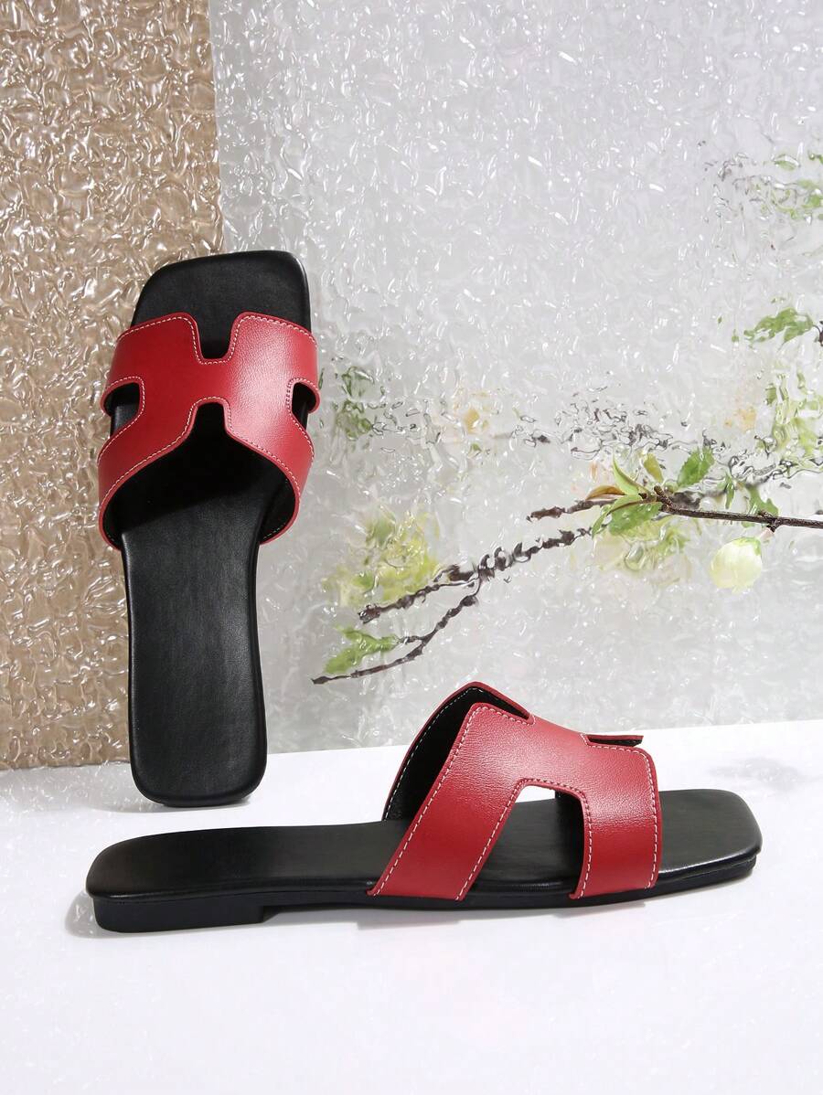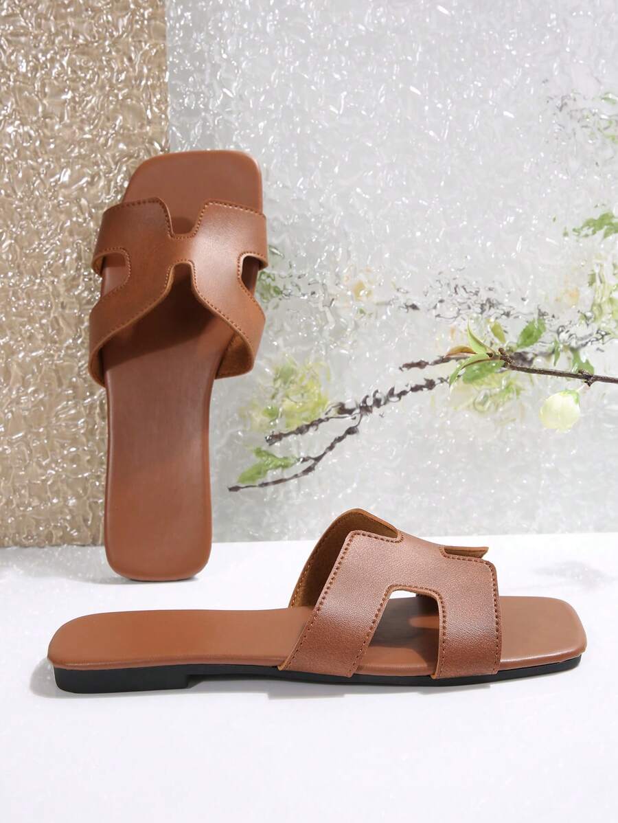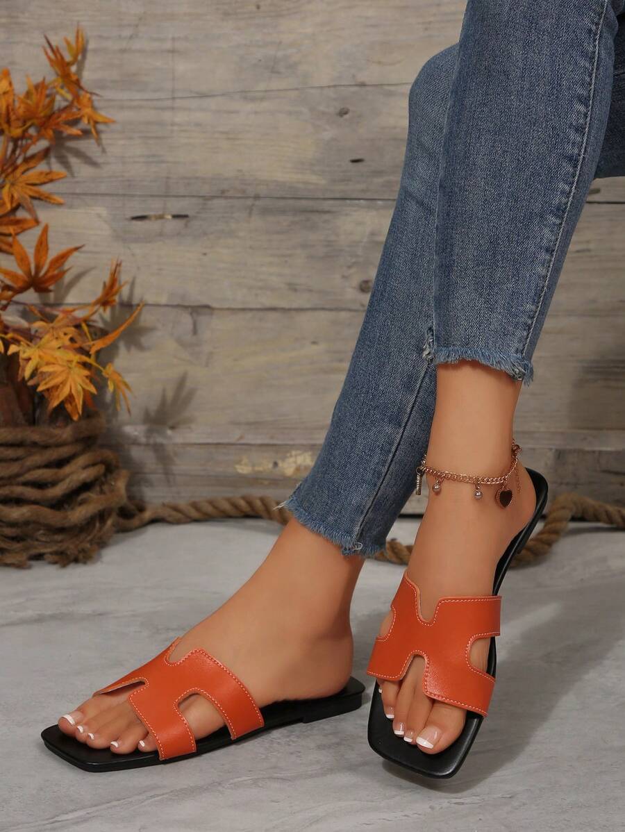 MIU Women Fashion Flat Open Toe Slide Sandals, Versatile Ladies Spring/Summer New Casual Slippers