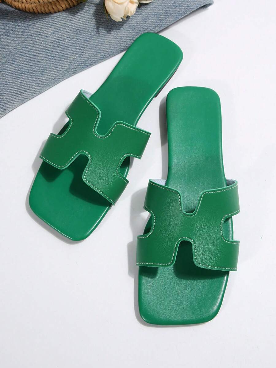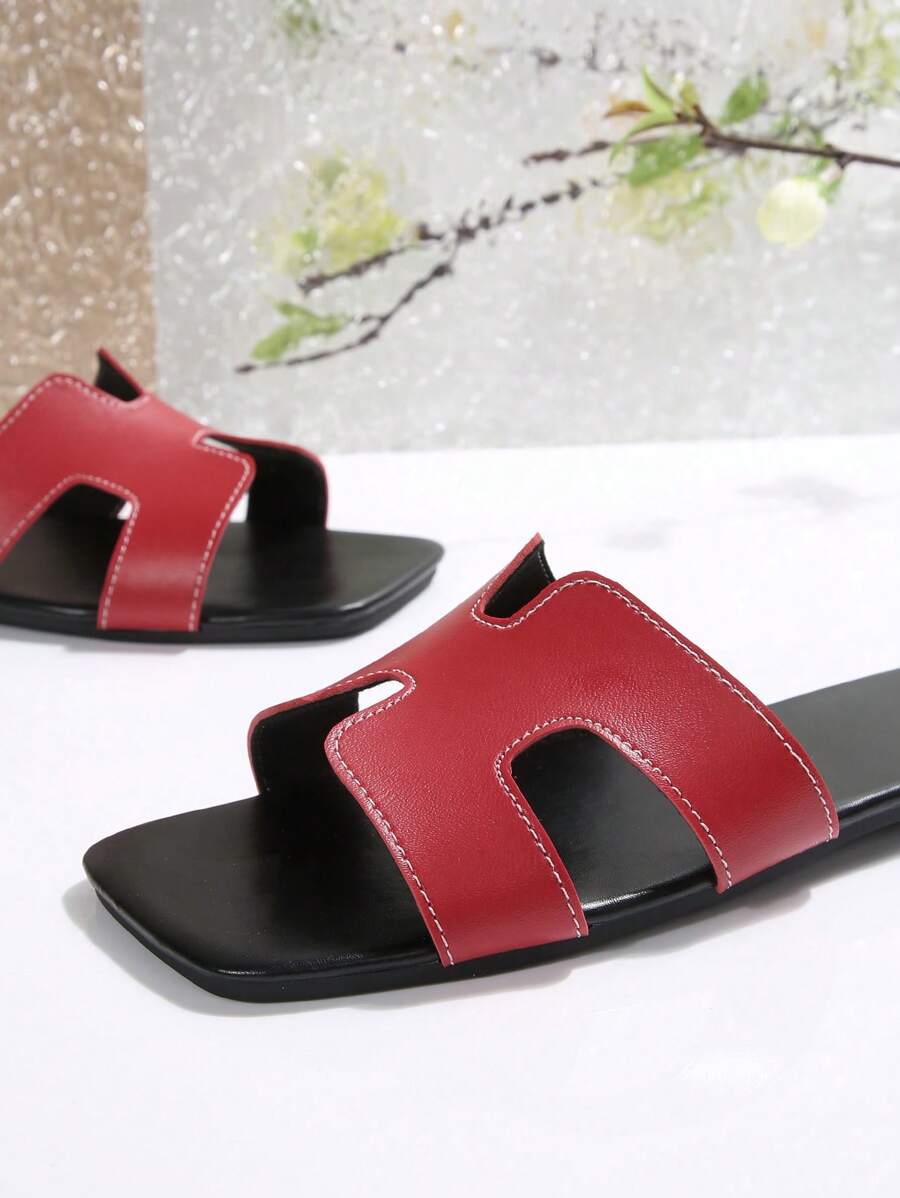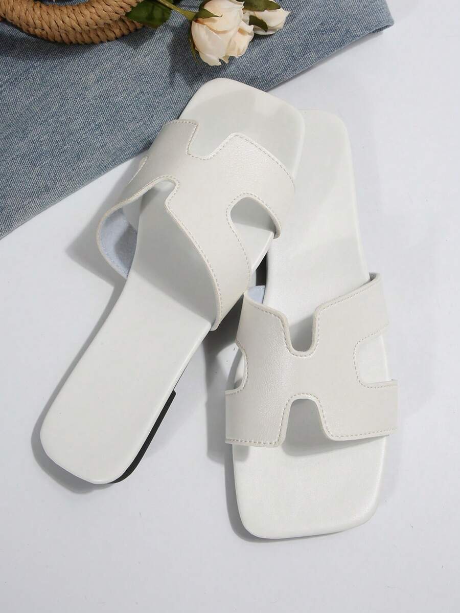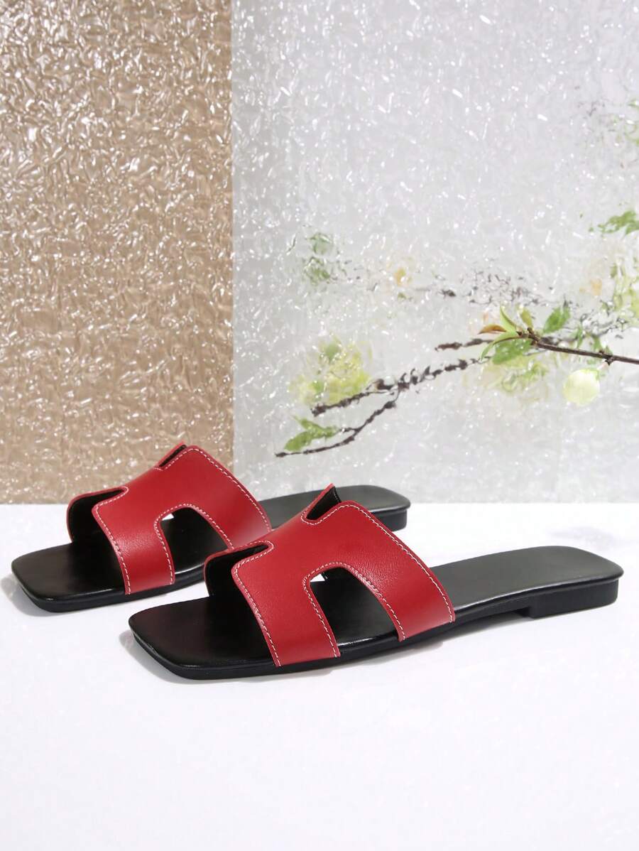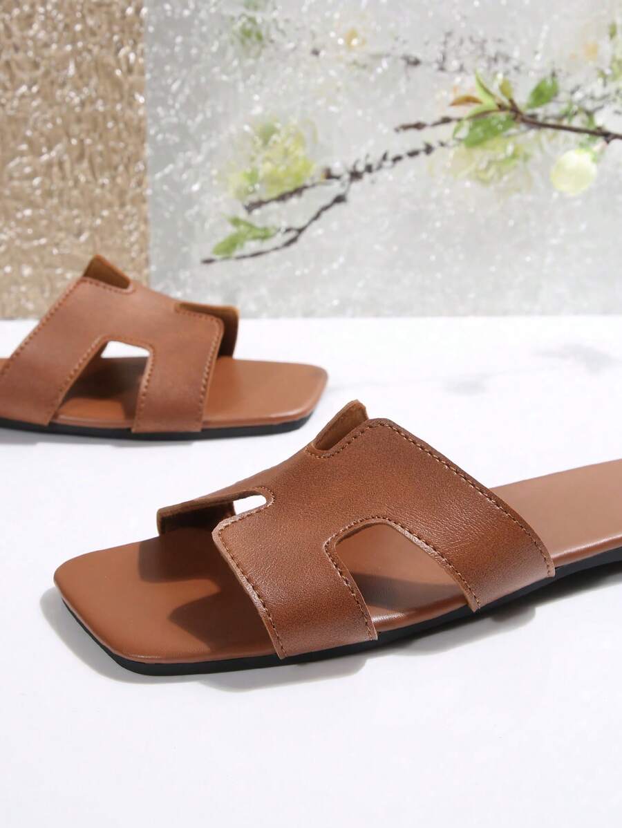 MIU Women Fashion Flat Open Toe Slide Sandals, Versatile Ladies Spring/Summer New Casual Slippers