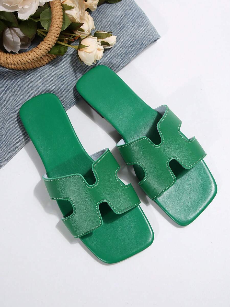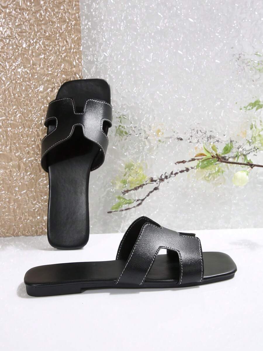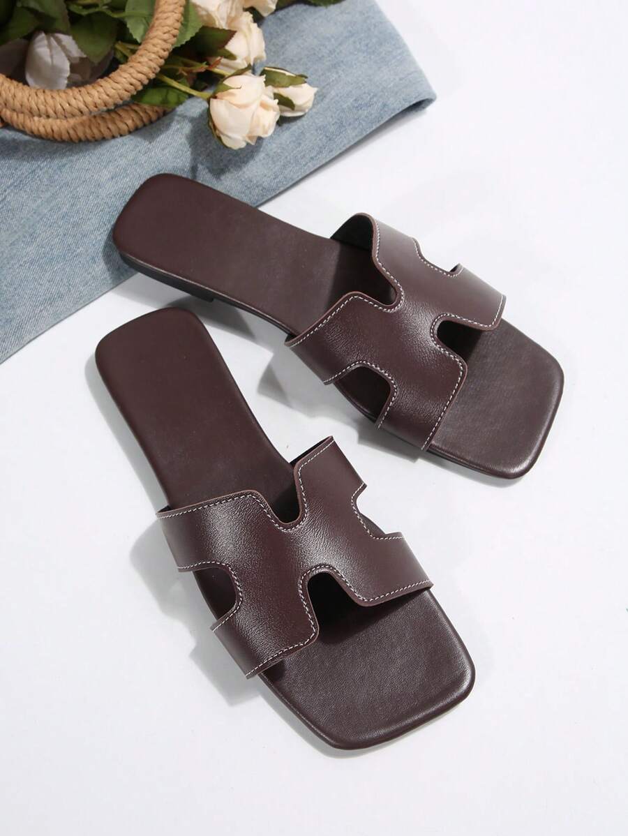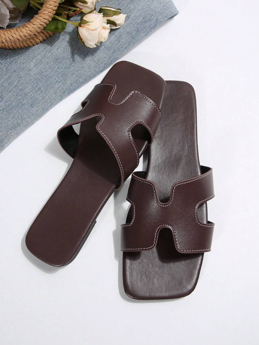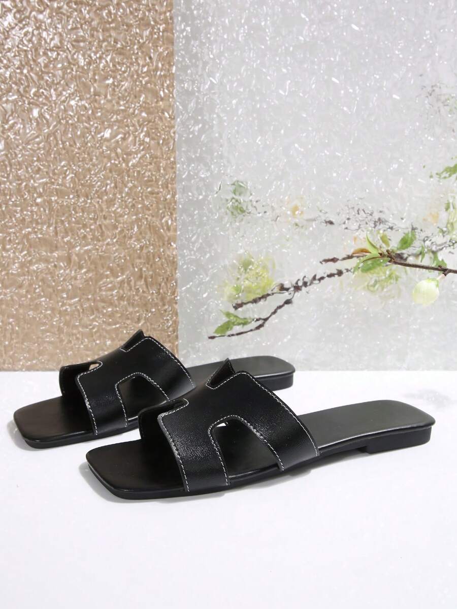 MIU Women Fashion Flat Open Toe Slide Sandals, Versatile Ladies Spring/Summer New Casual Slippers