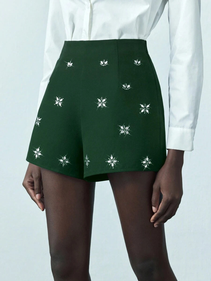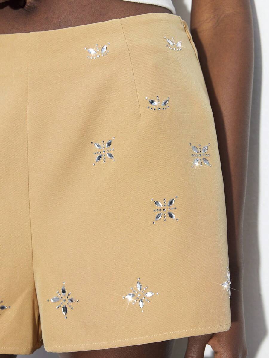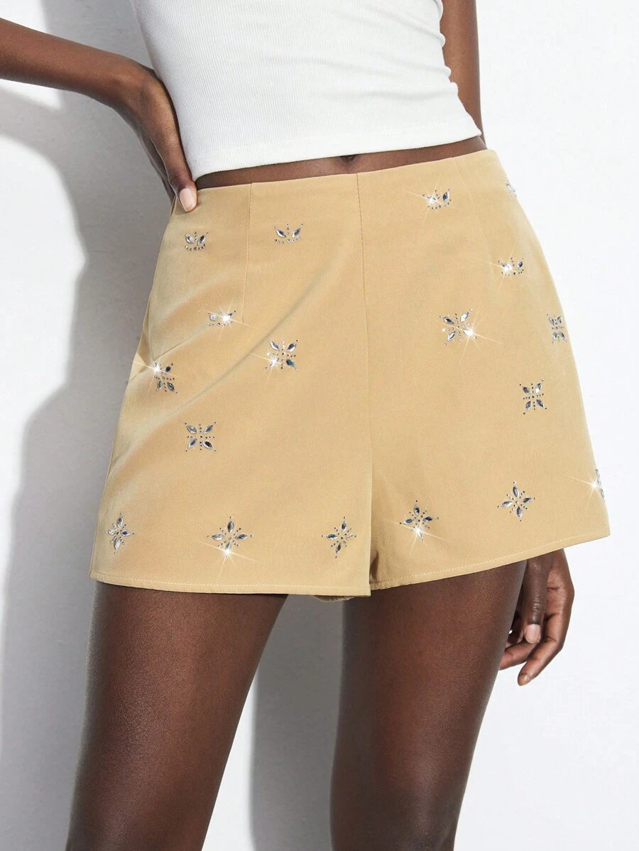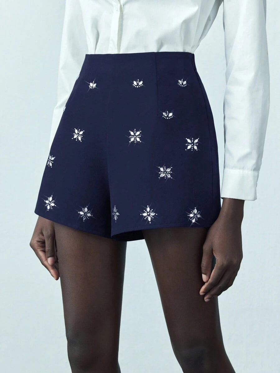 MIU Women Navy Blue Rhinestone Decor Versatile Fashionable Summer Party Hot Shorts,Summer Clothes Women