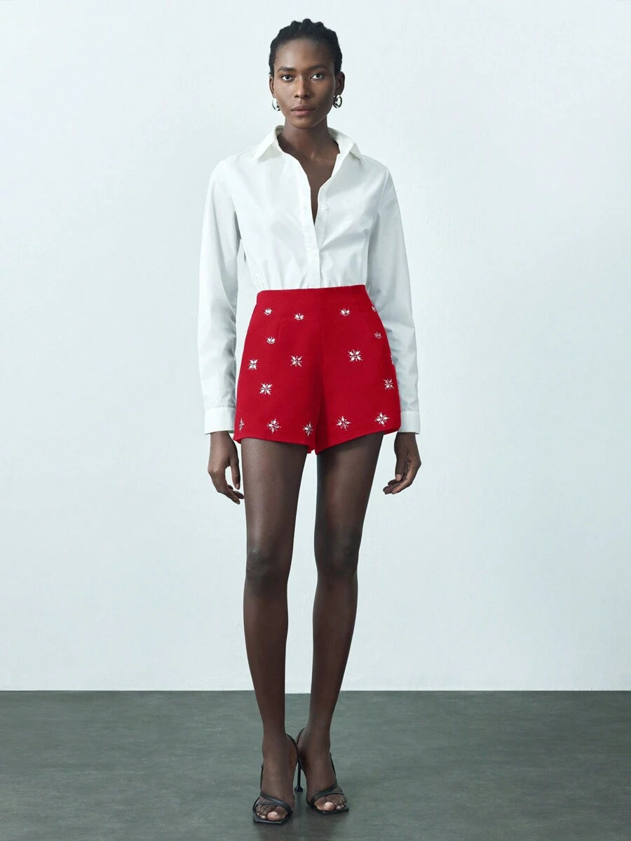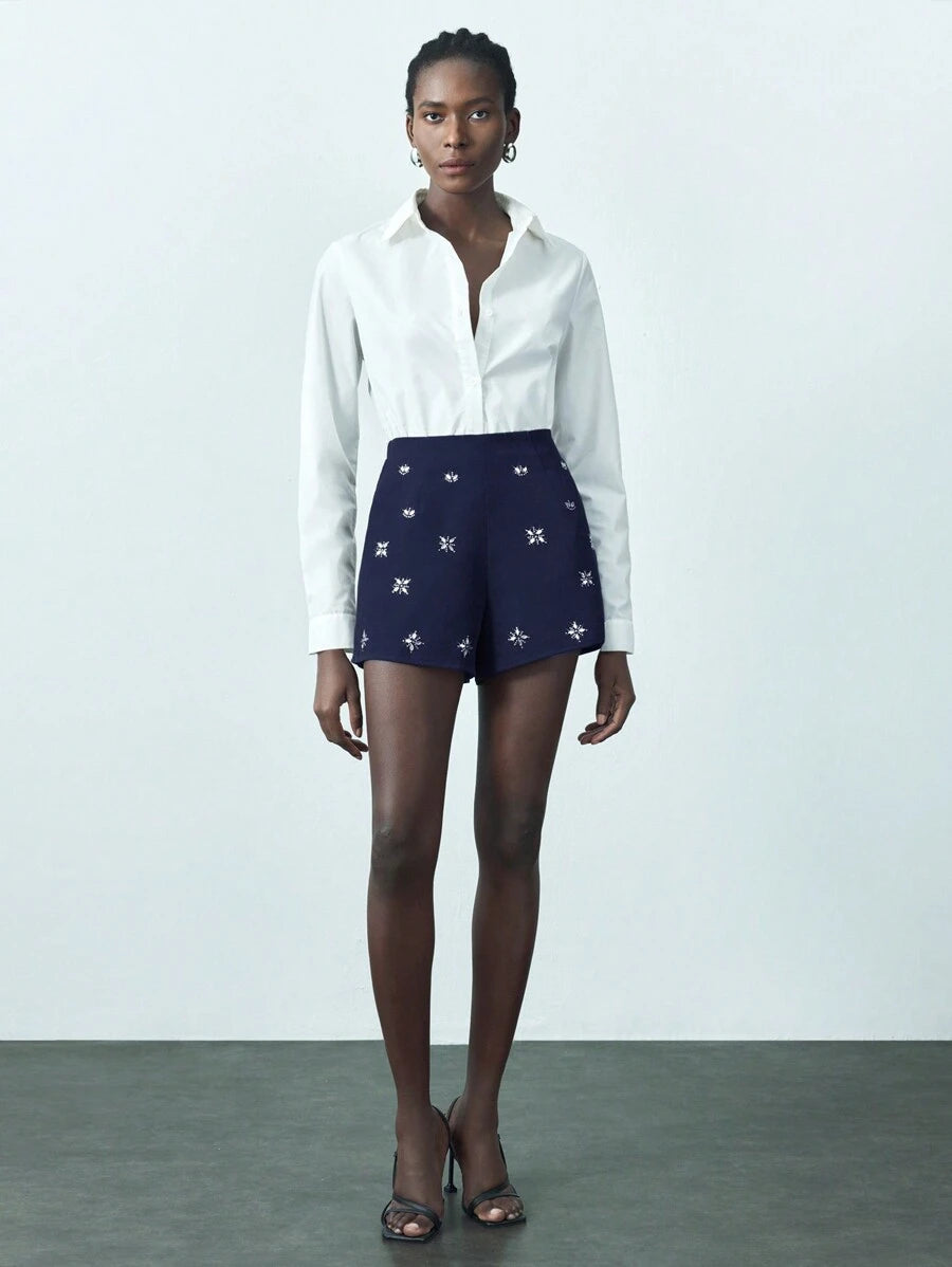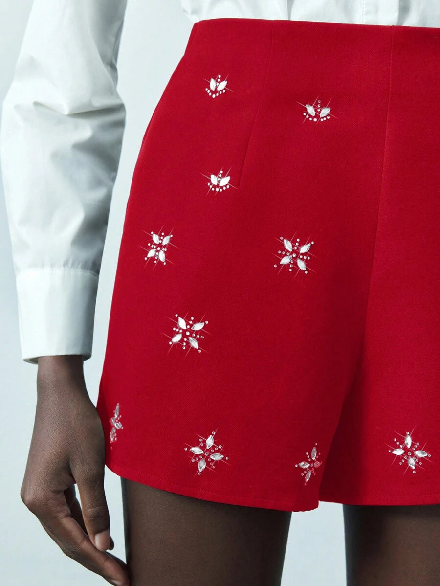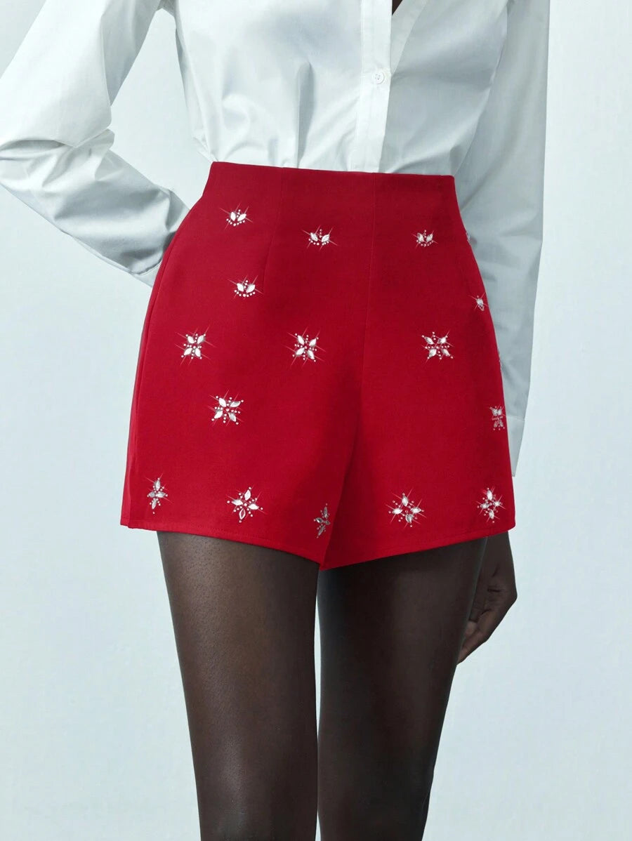 MIU Women Navy Blue Rhinestone Decor Versatile Fashionable Summer Party Hot Shorts,Summer Clothes Women
