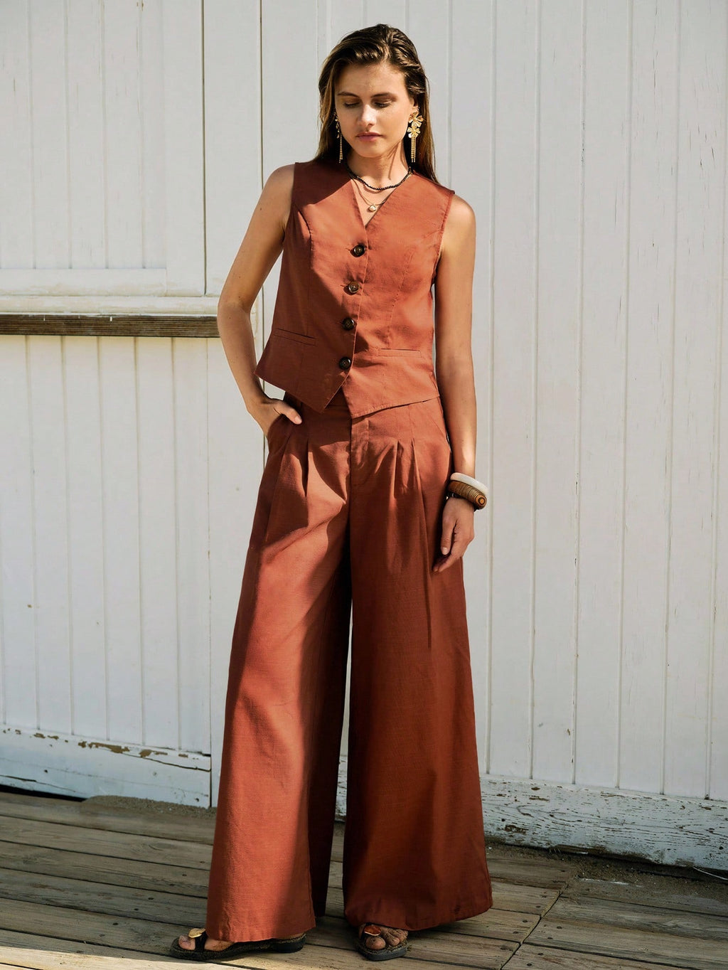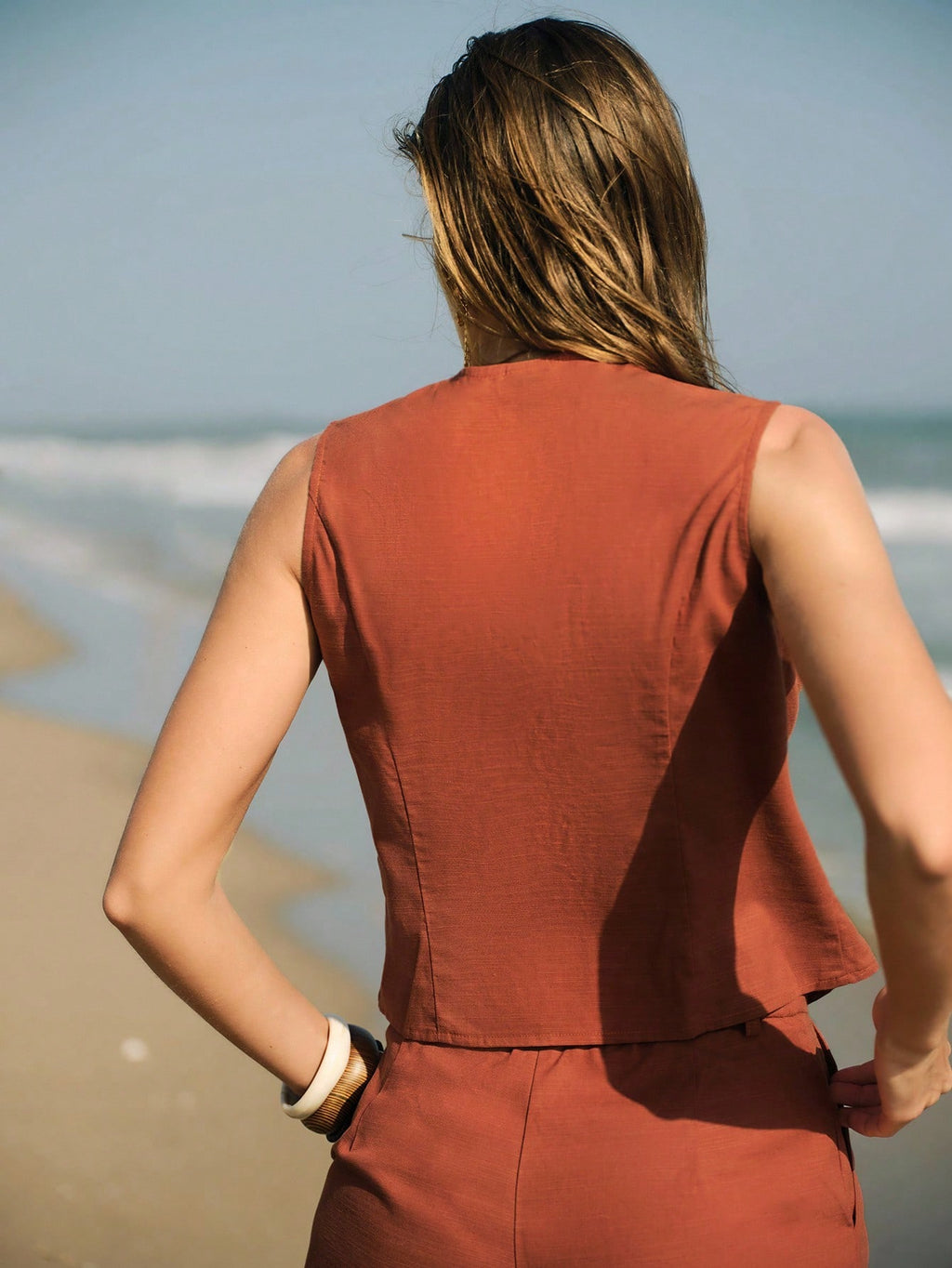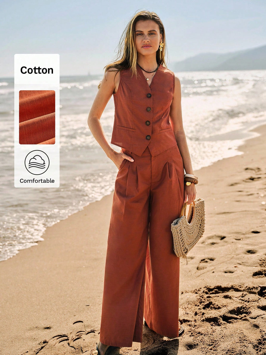 MIU Women Two Pieces Outfits For Daily Wear Women Linen Outfits Summer Top