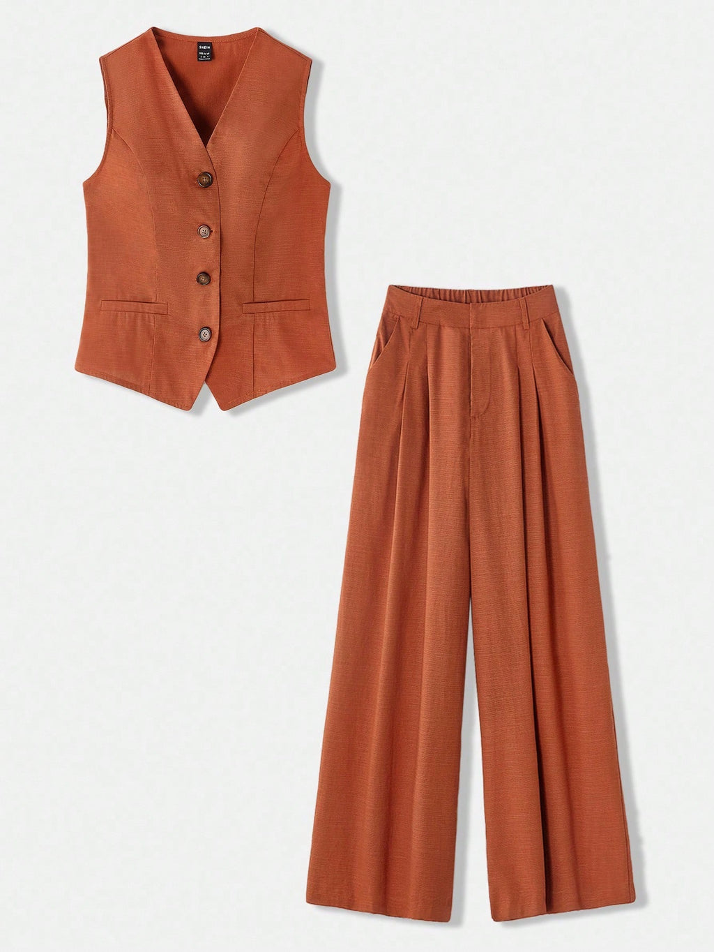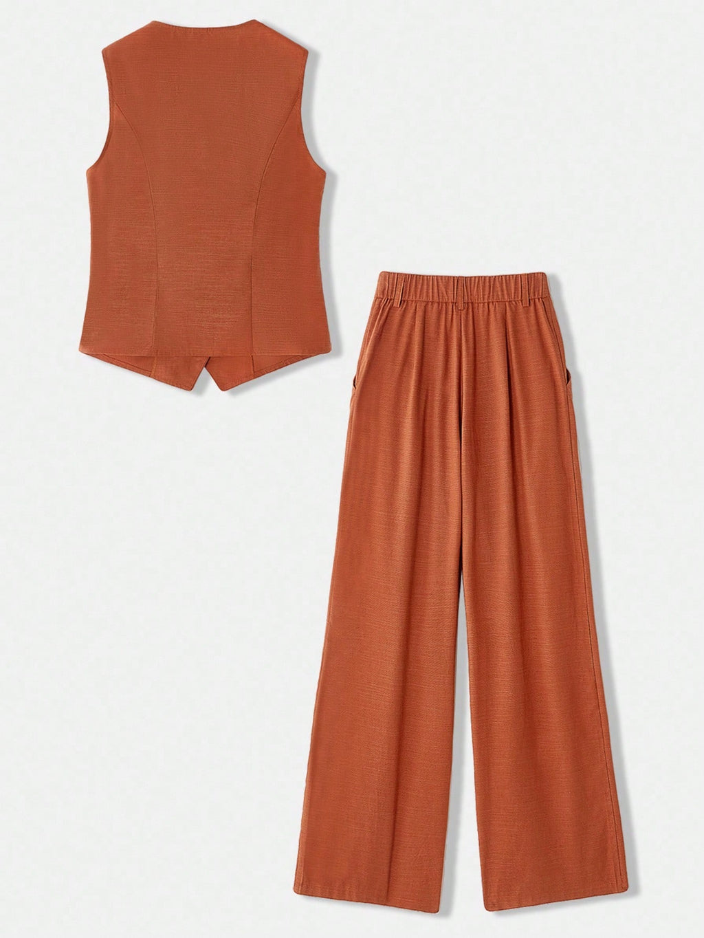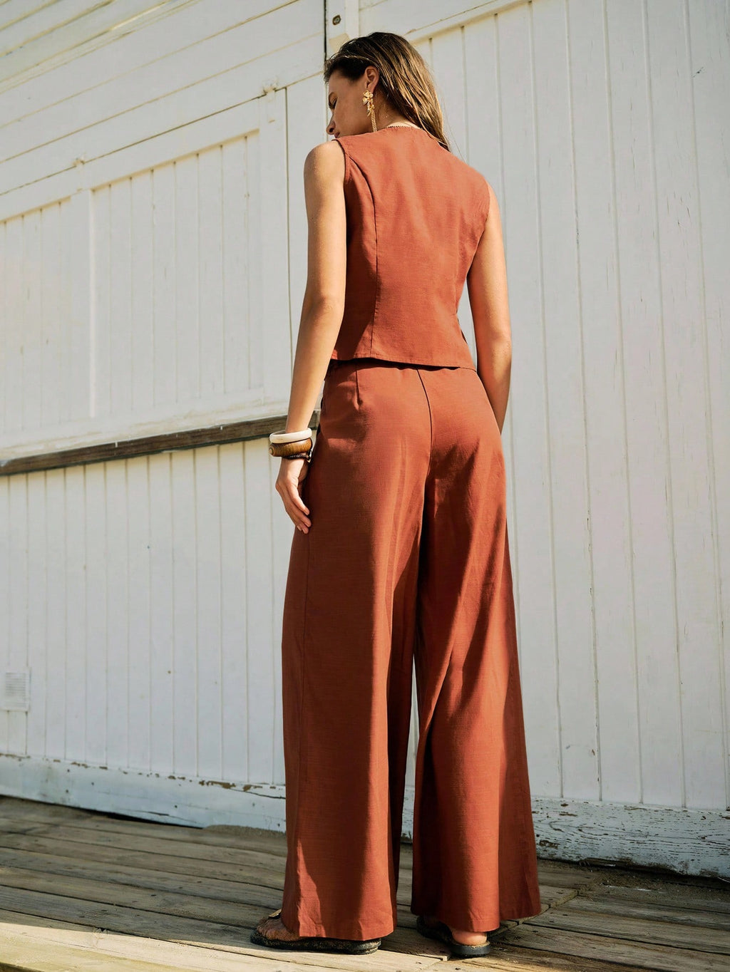 MIU Women Two Pieces Outfits For Daily Wear Women Linen Outfits Summer Top