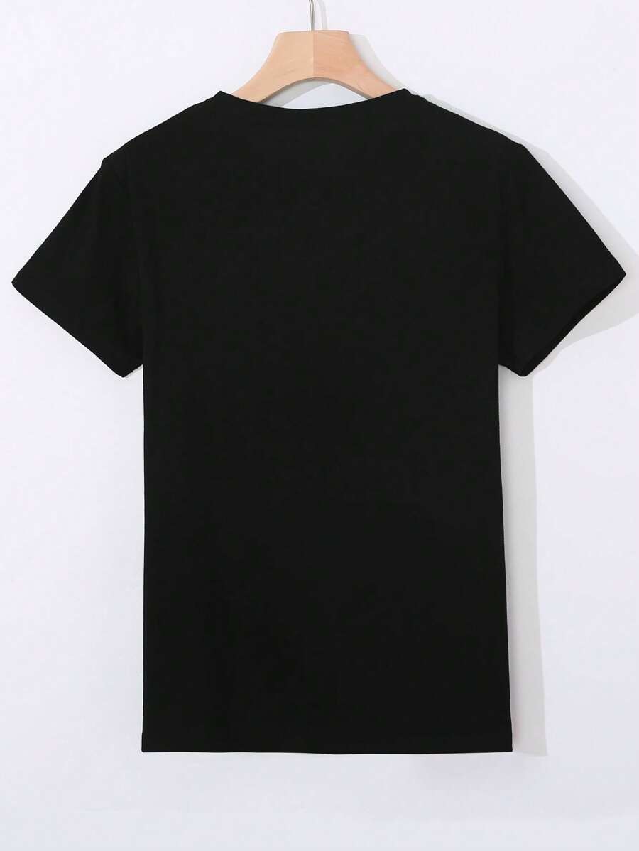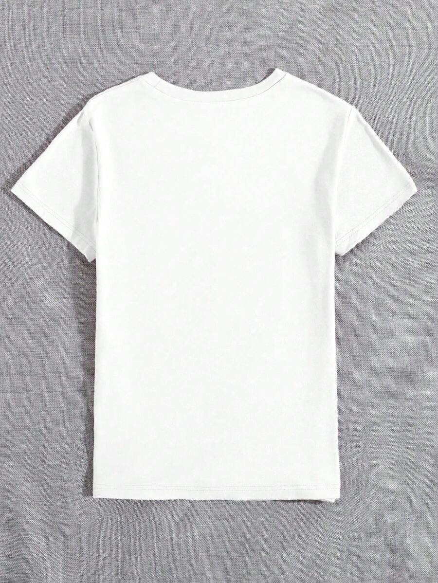 MIU Women's Casual Cartoon Print Round Neck Short Sleeve T-Shirt, Summer