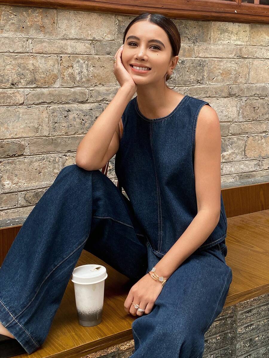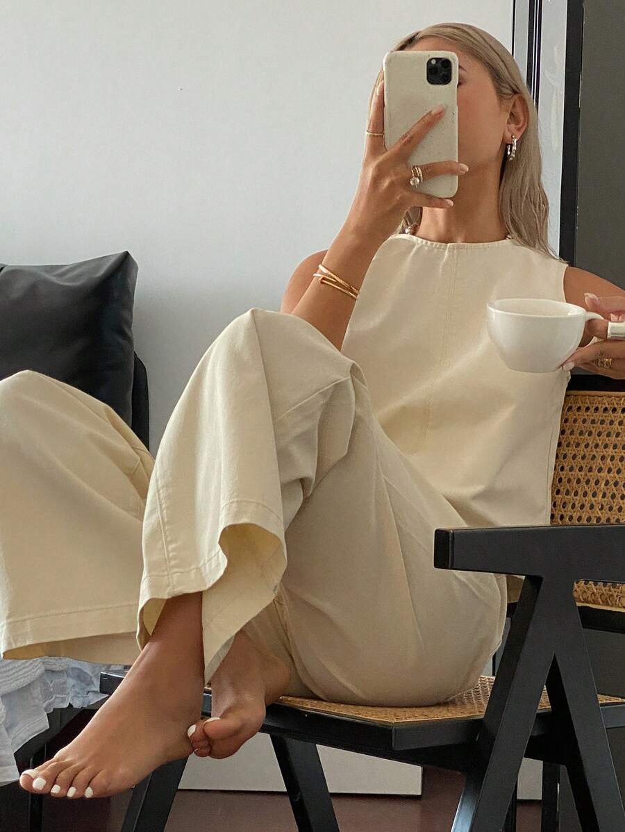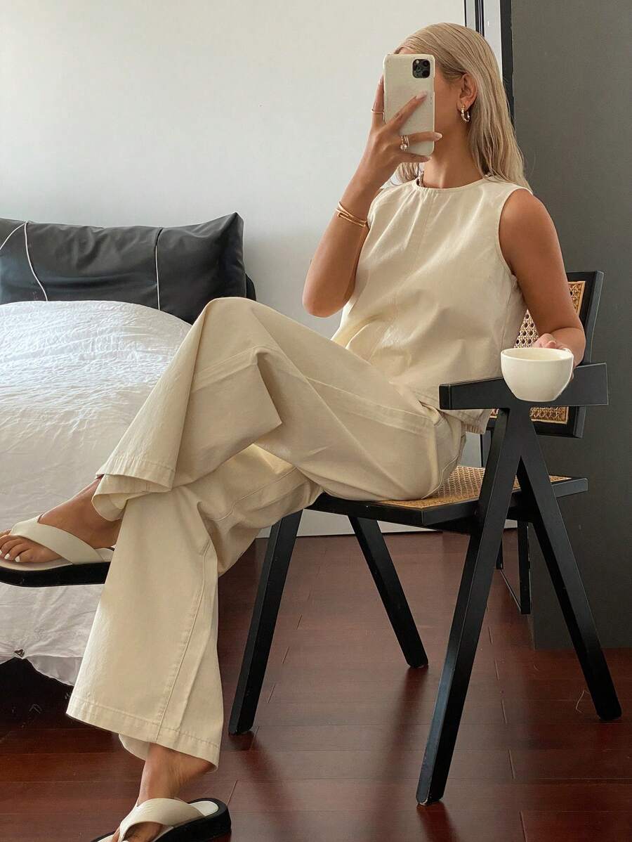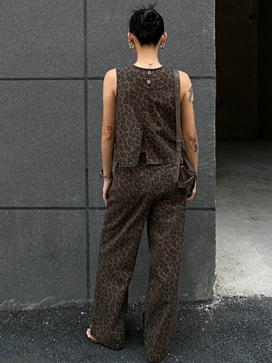 MIU Women's Casual Solid Color Denim Vest Jeans Set