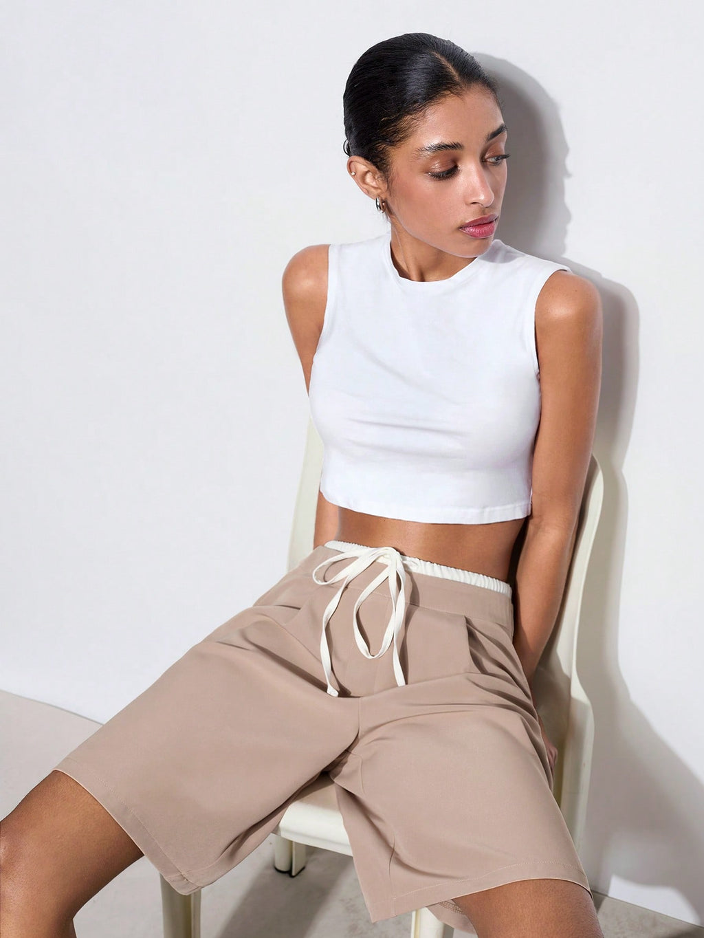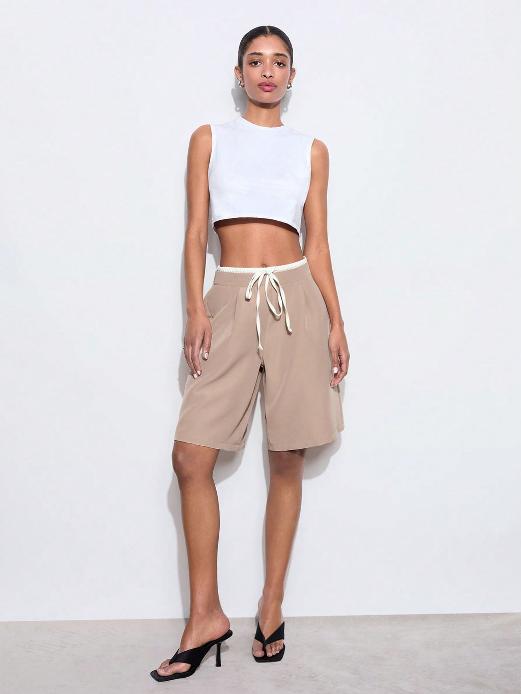 MIU Women's Colorblock Waist Mid-Length Pants, Suitable For Music Festival, Beach, Daily Casual, Romantic City Vacation, Outdoor Party, Wedding, Graduation