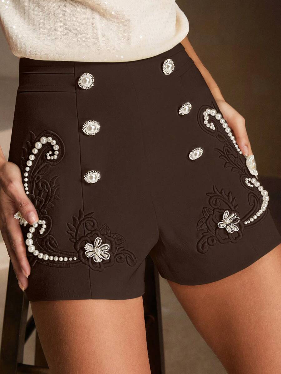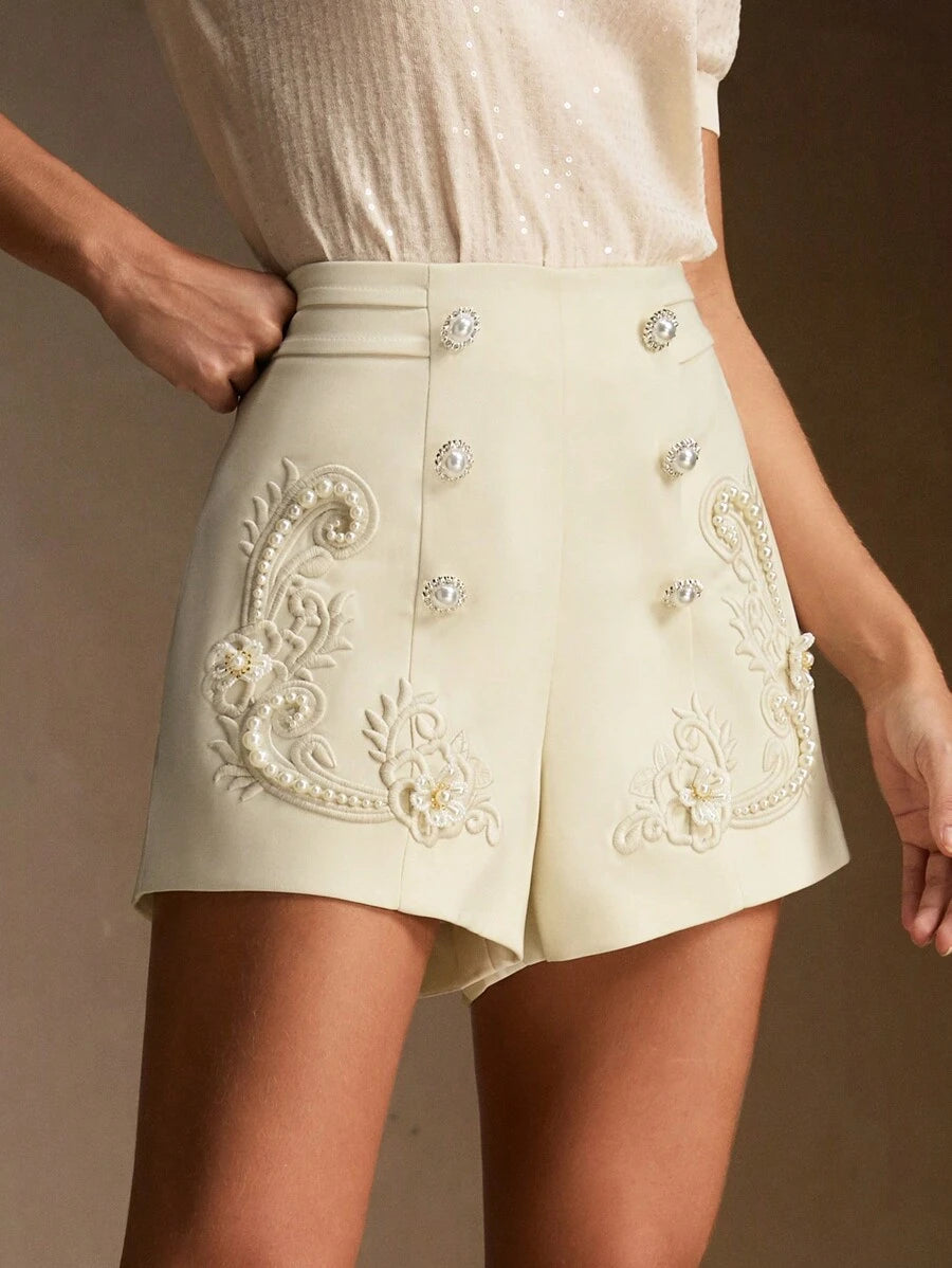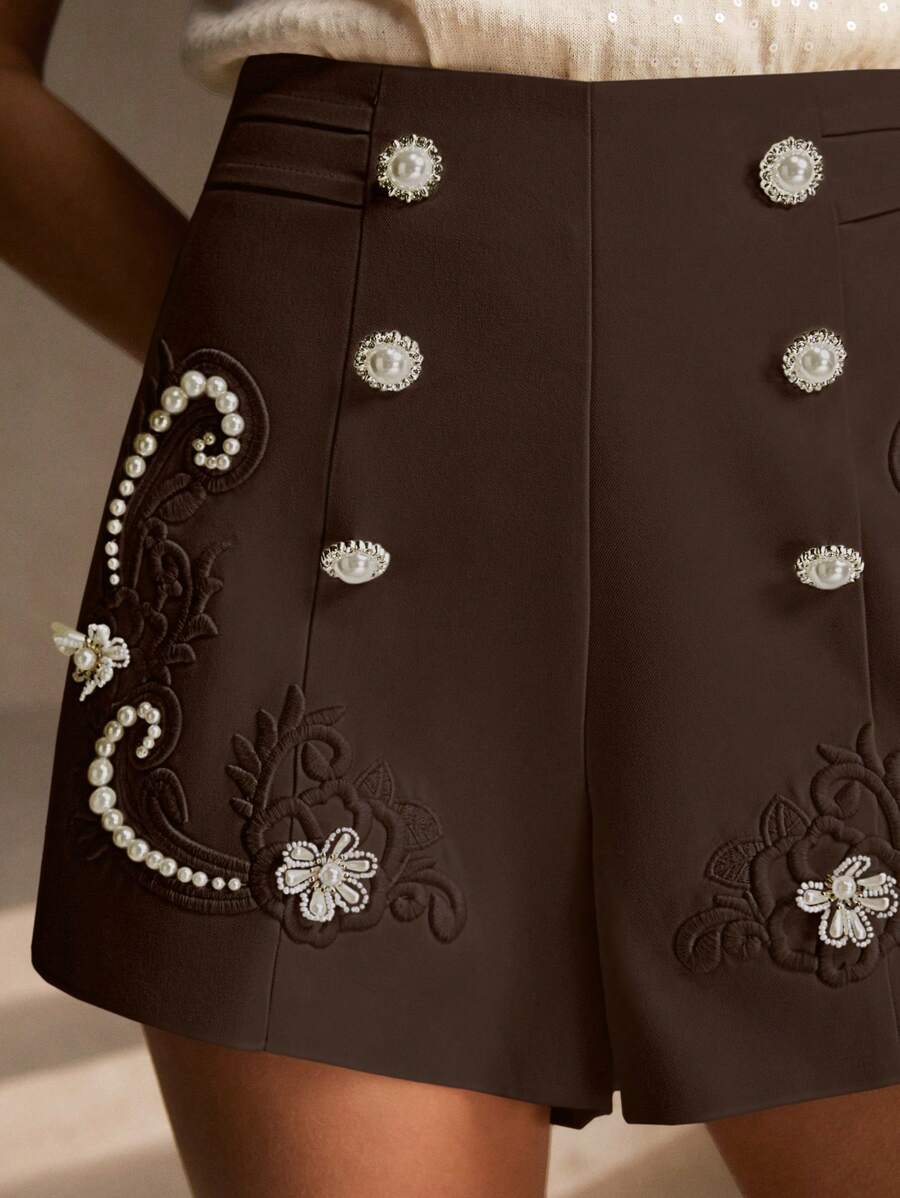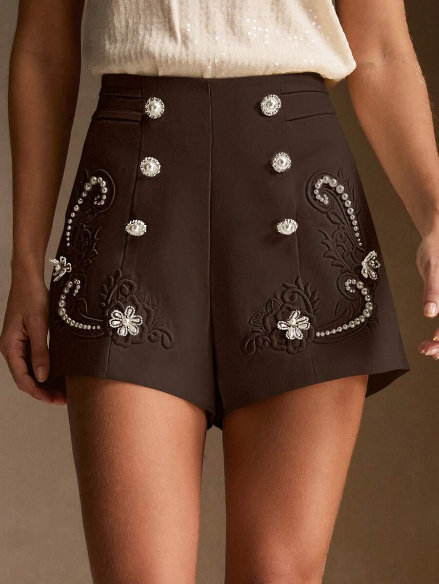 MIU Women's Commuting Urban Coarse Pearled Embroidered A-Line Shorts