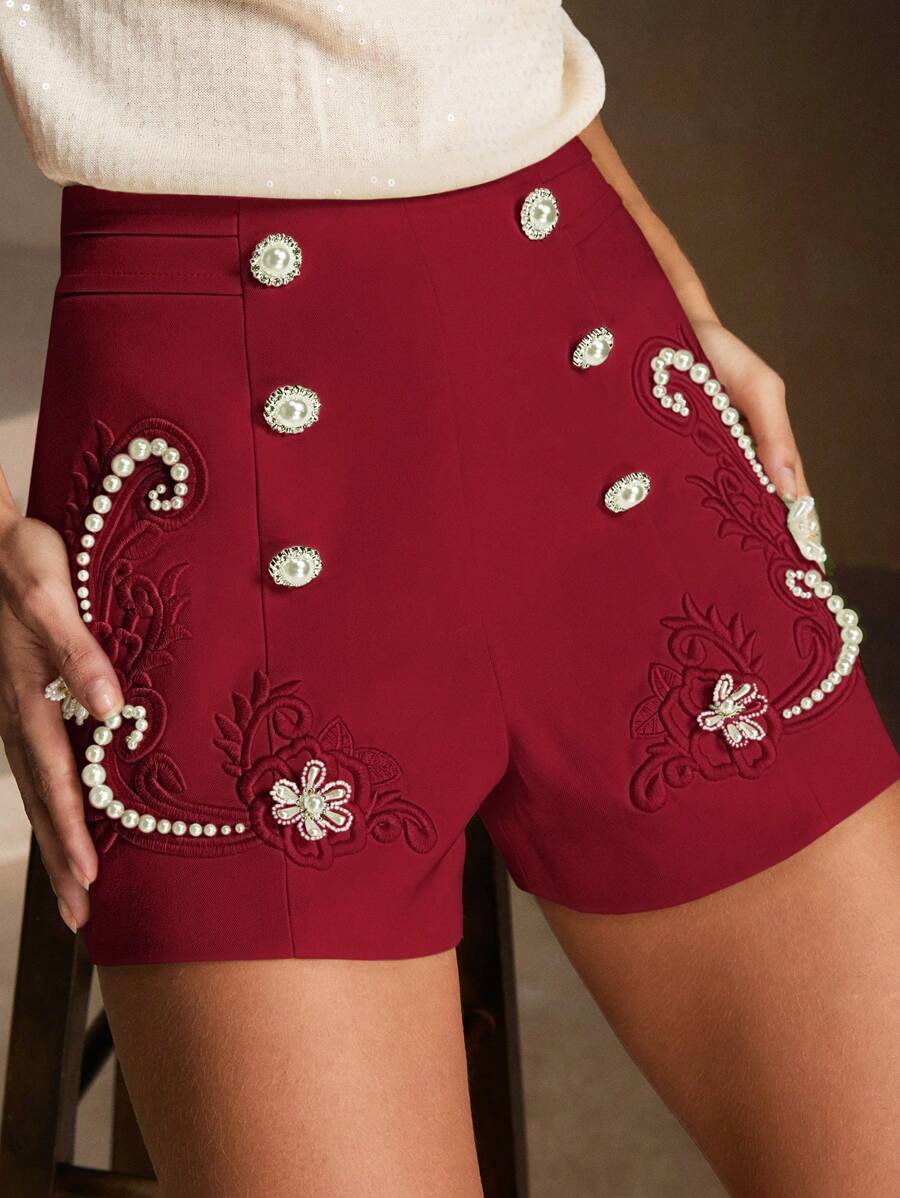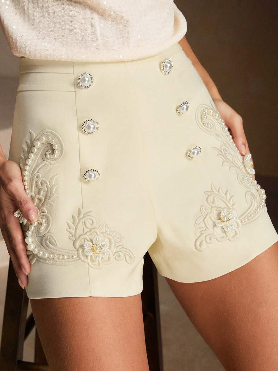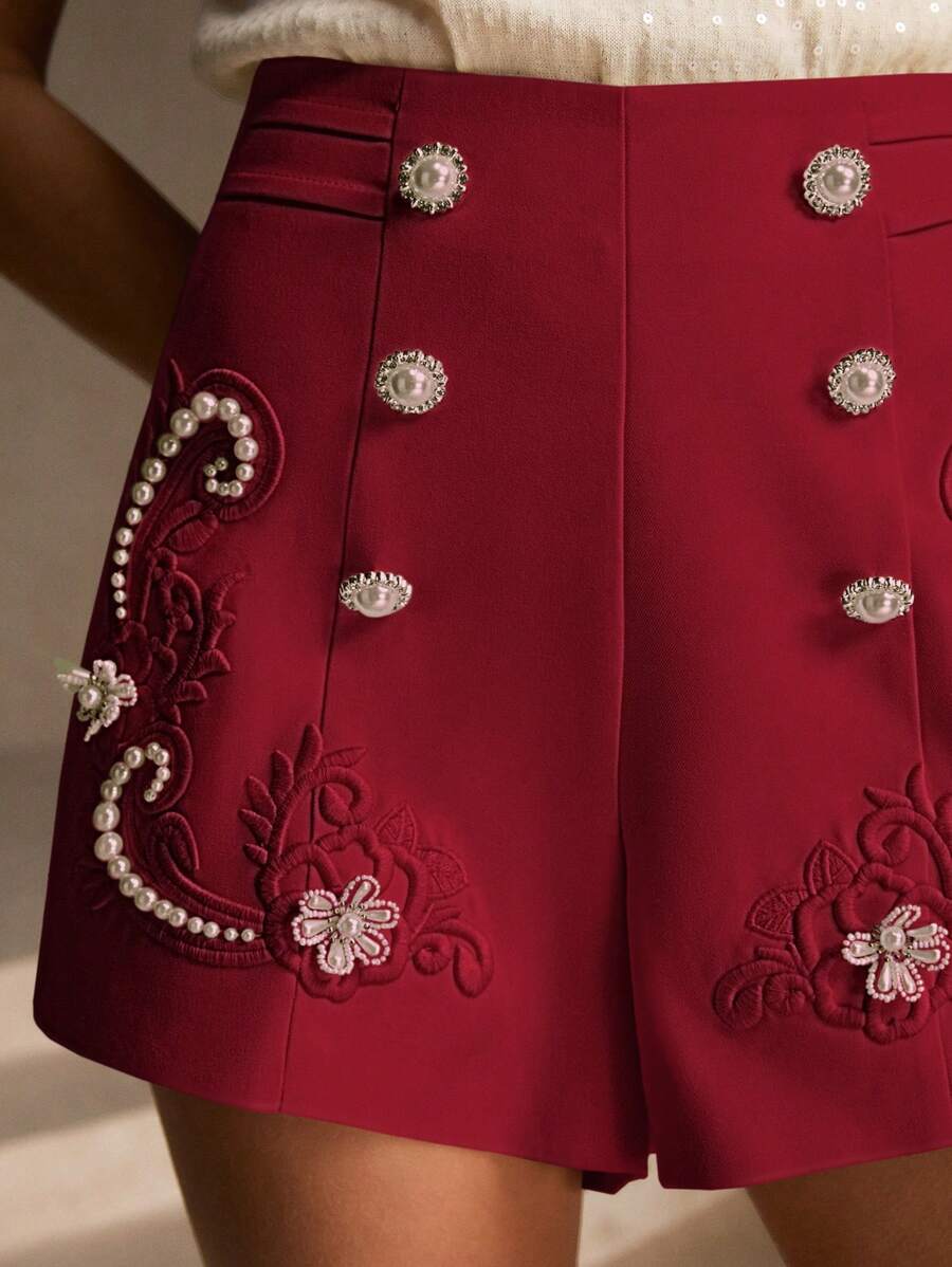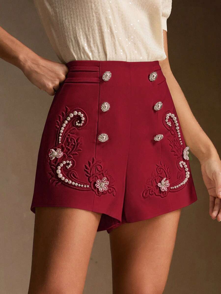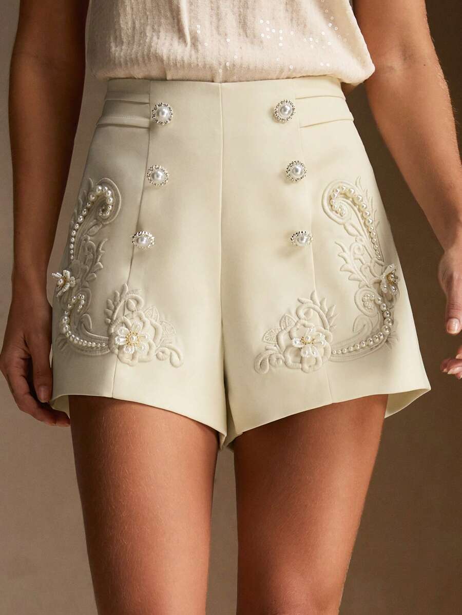 MIU Women's Commuting Urban Coarse Pearled Embroidered A-Line Shorts