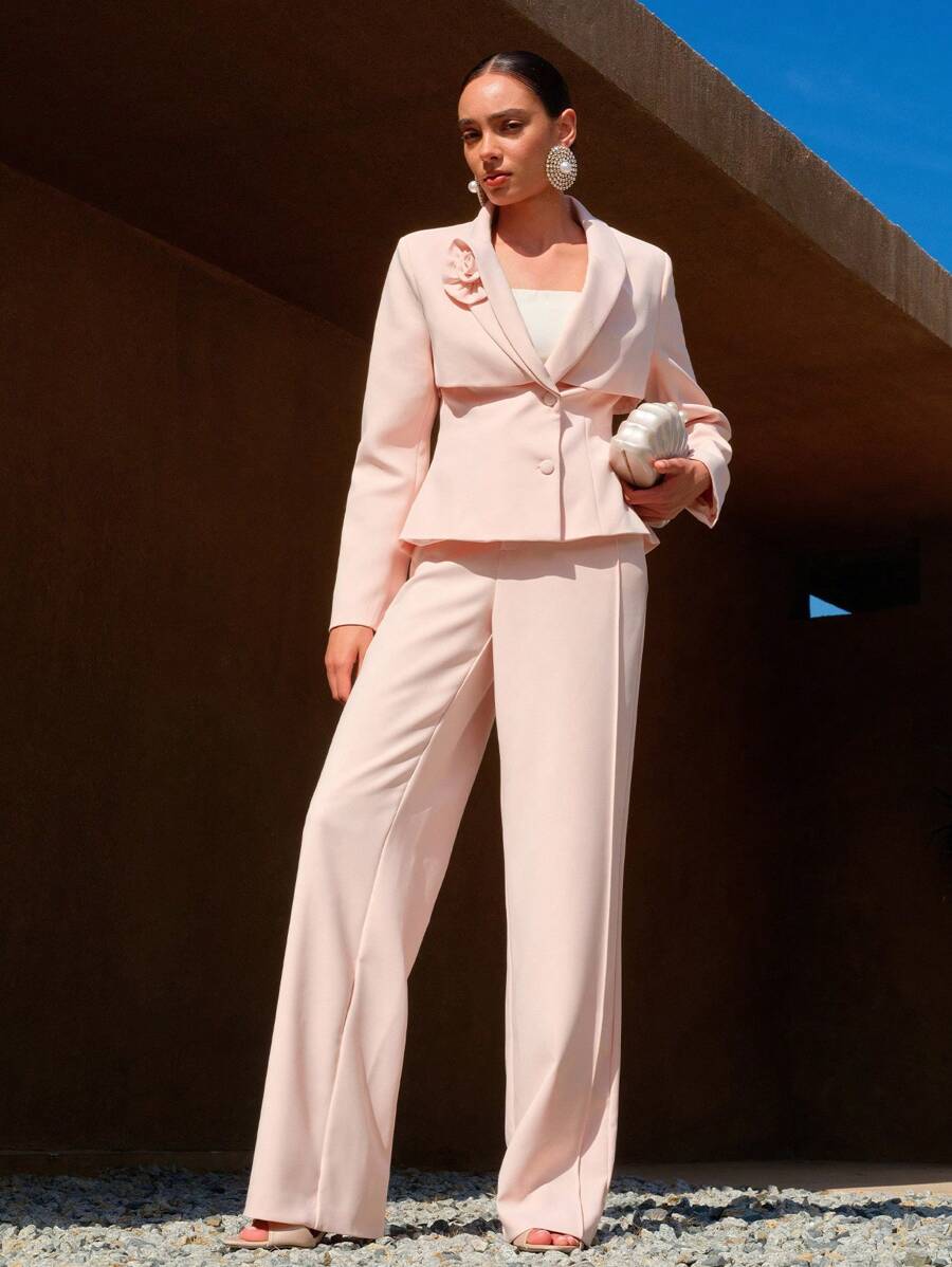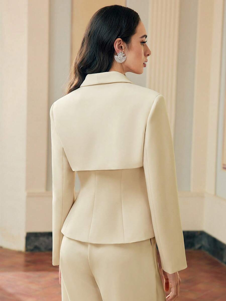 MIU Women's Elegant Floral Embossed Lapel Long Sleeve Blazer Jacket