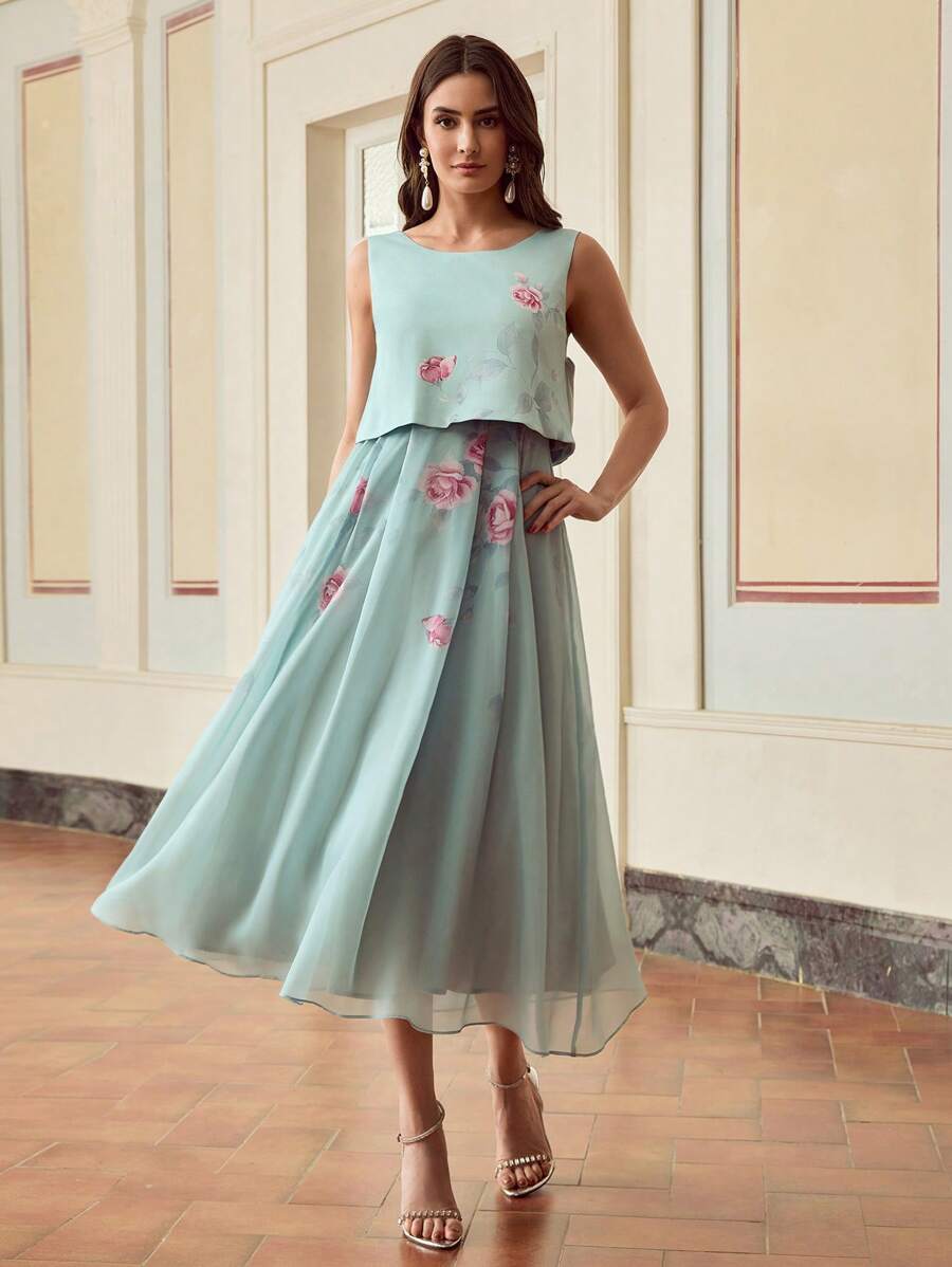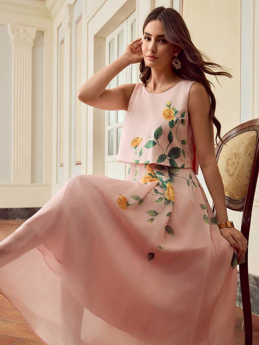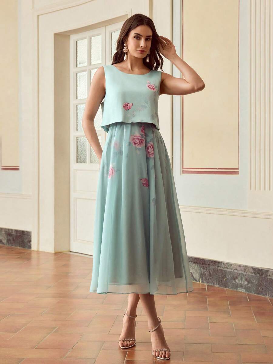 MIU Women's Elegant Floral Print Backless With Bow Decor Sleeveless Midi Dress, Summer Dating Dress