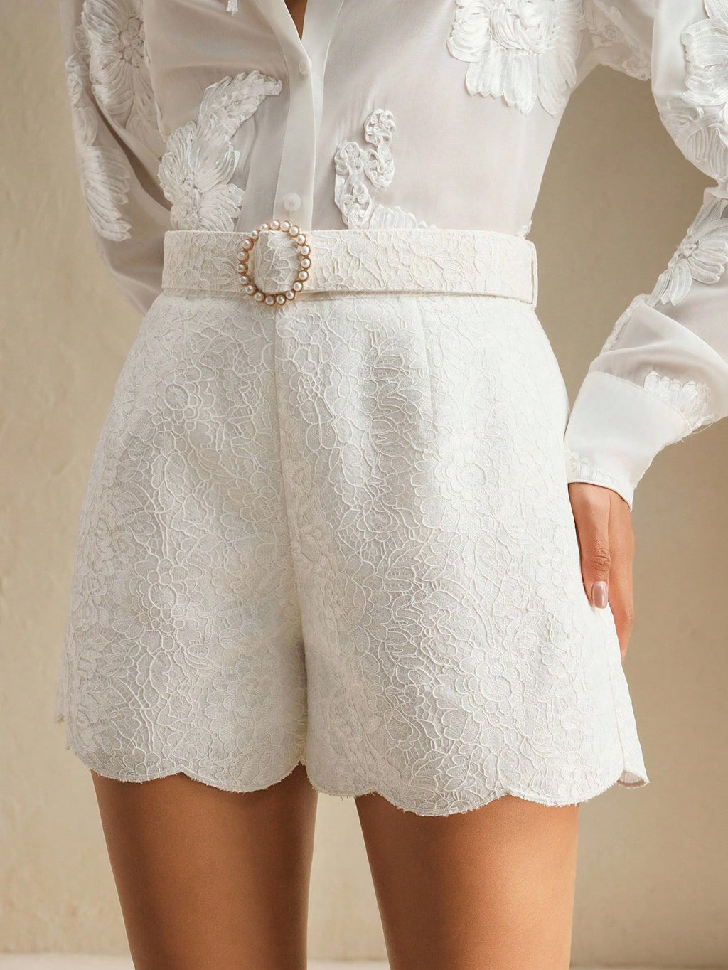 MIU Women's Elegant Office Commute Solid Color Lace Shorts, Summer