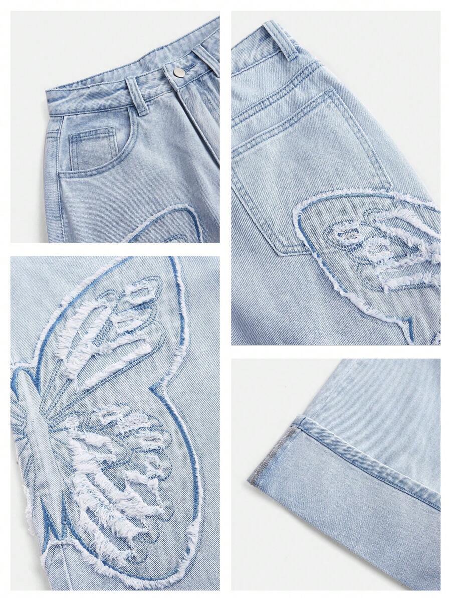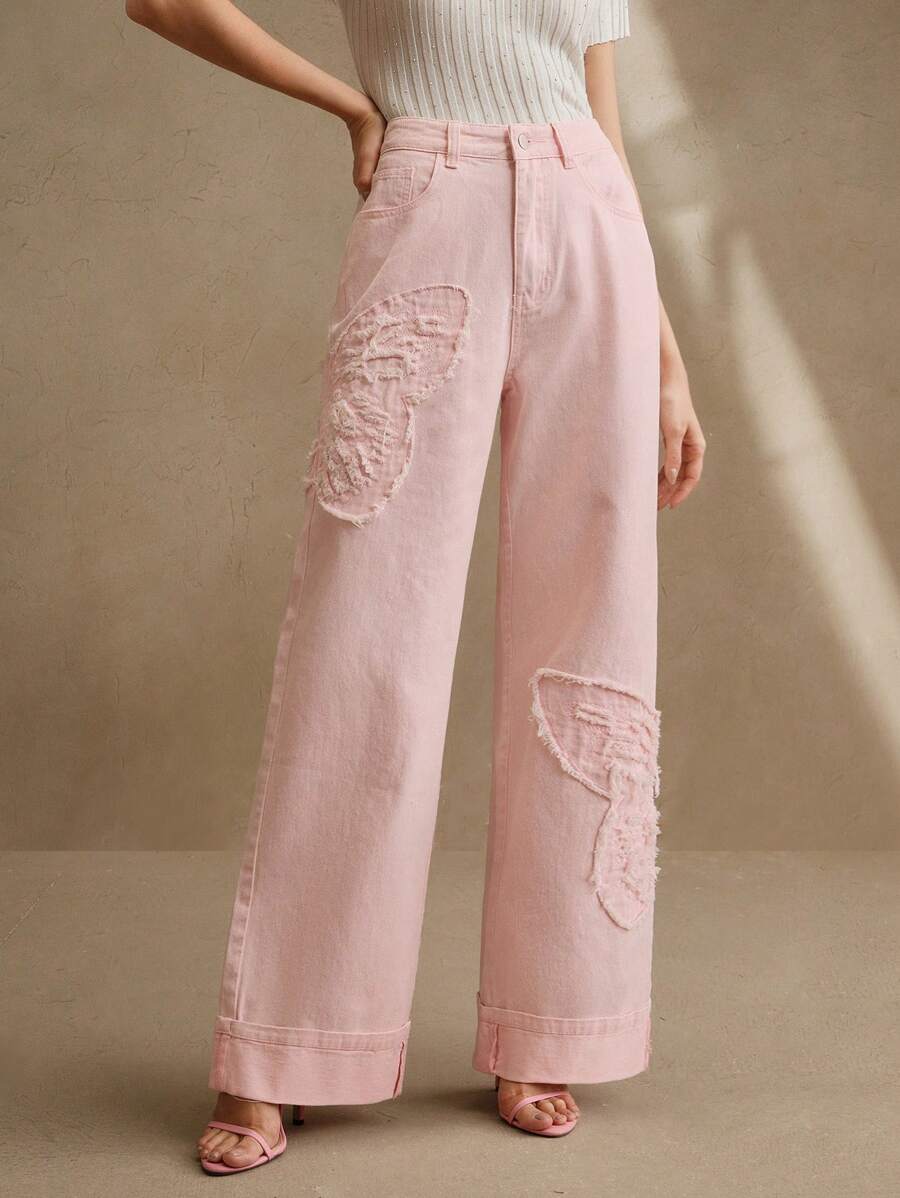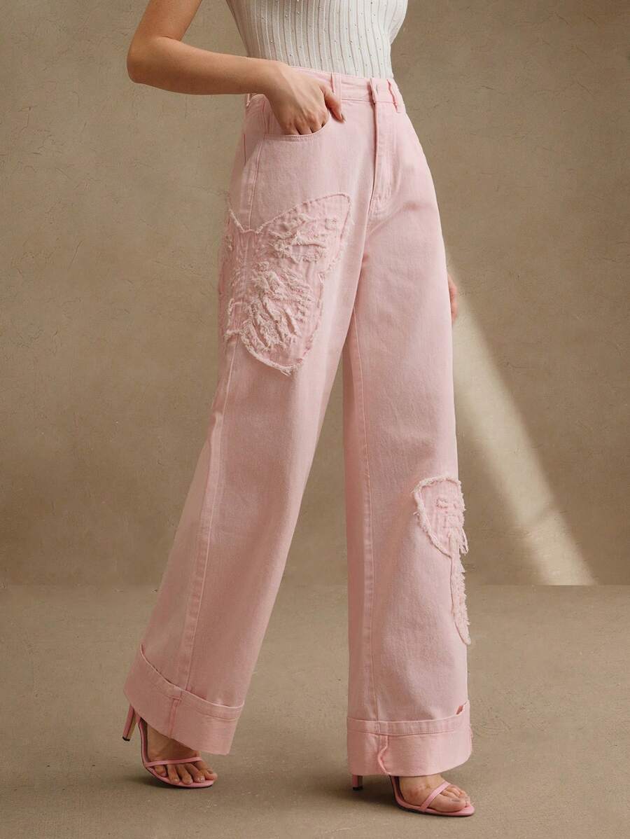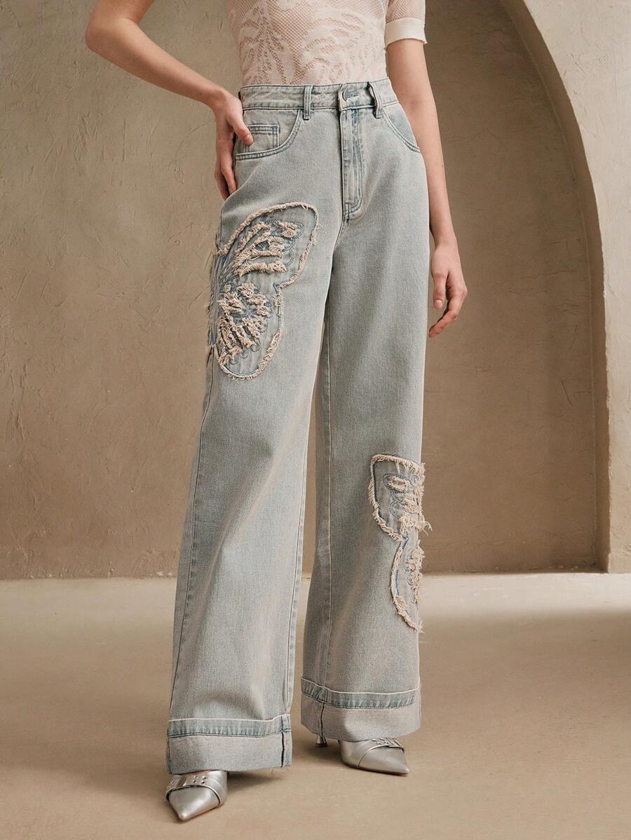 MIU Women's Embroidered Straight Leg Jeans, Fashion