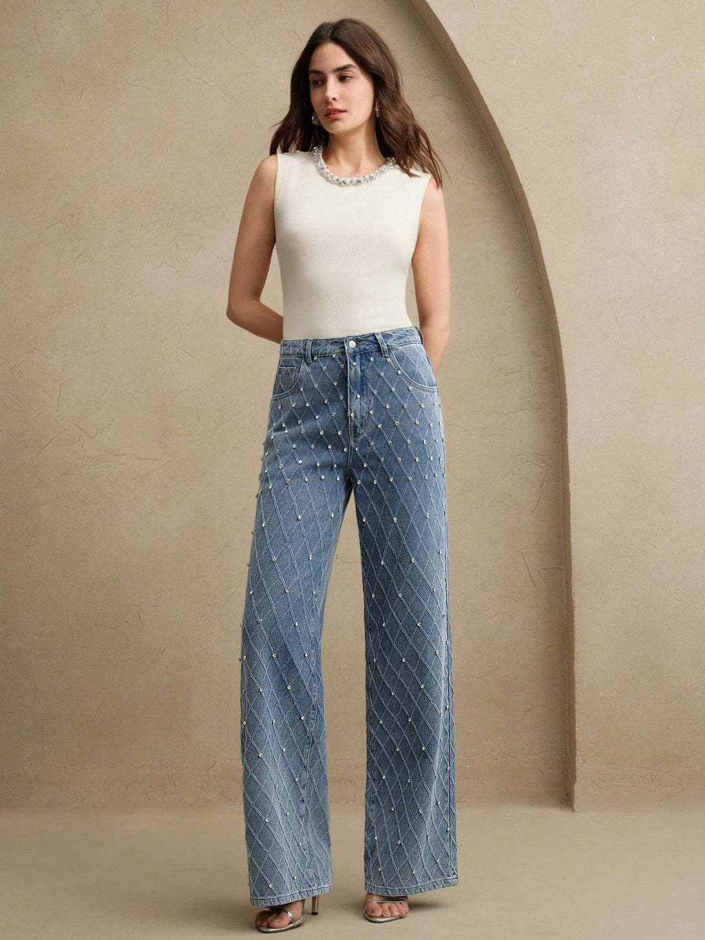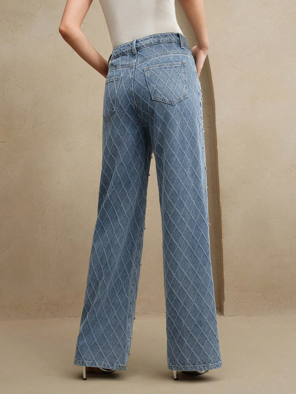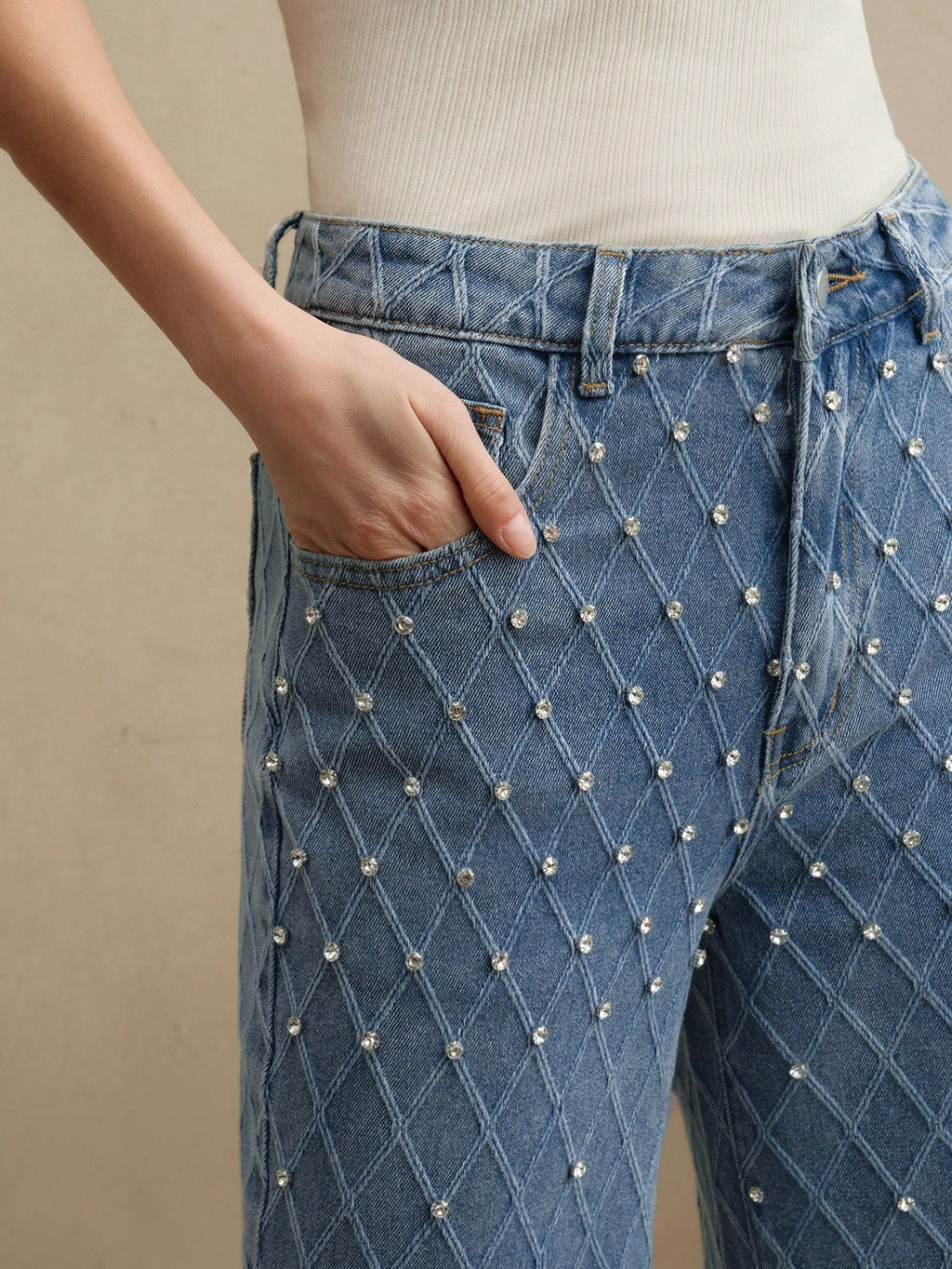 MIU Women's Fashion Beaded Luxury Embellished Straight Leg Jeans, Festival, Casual, Elegant