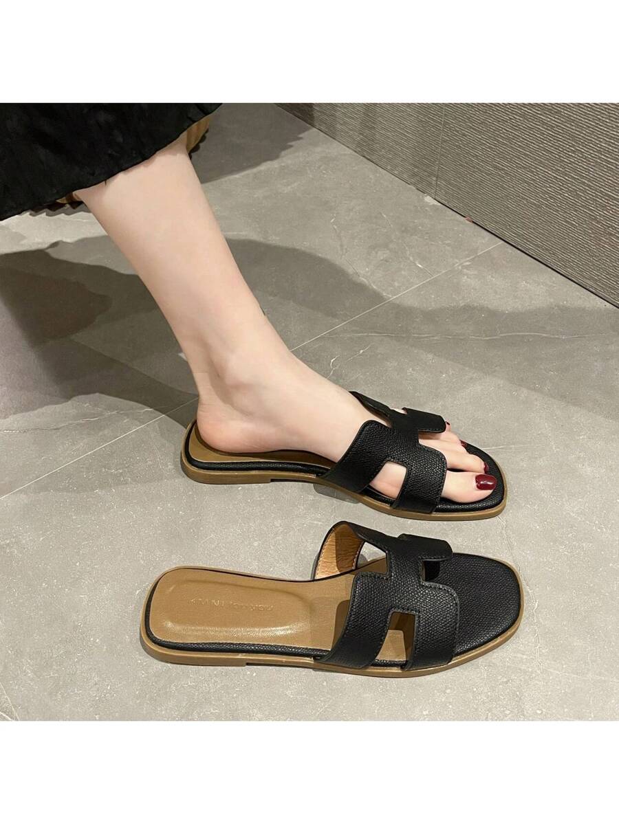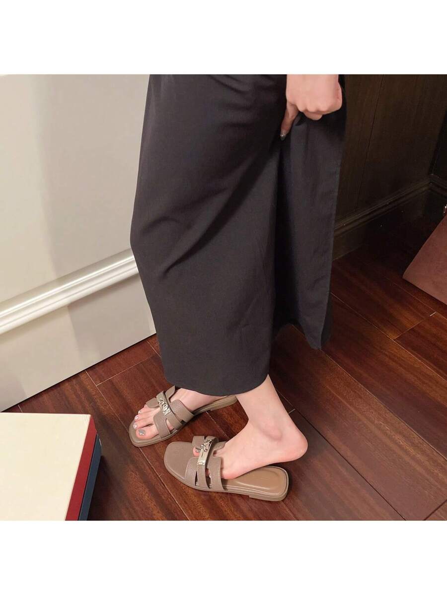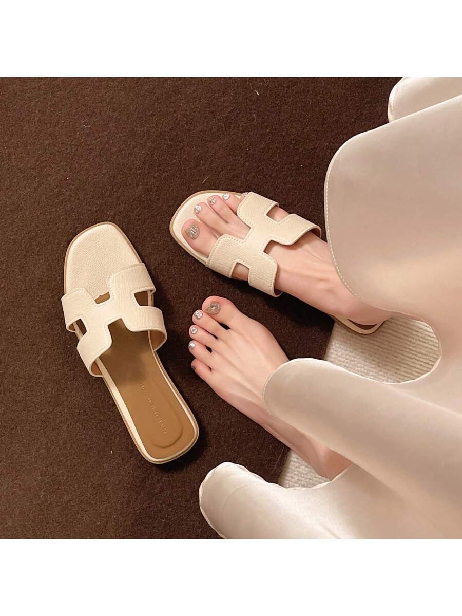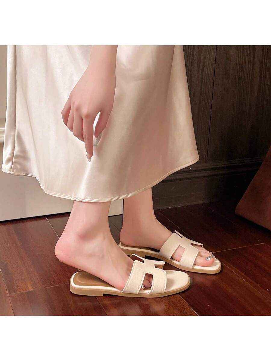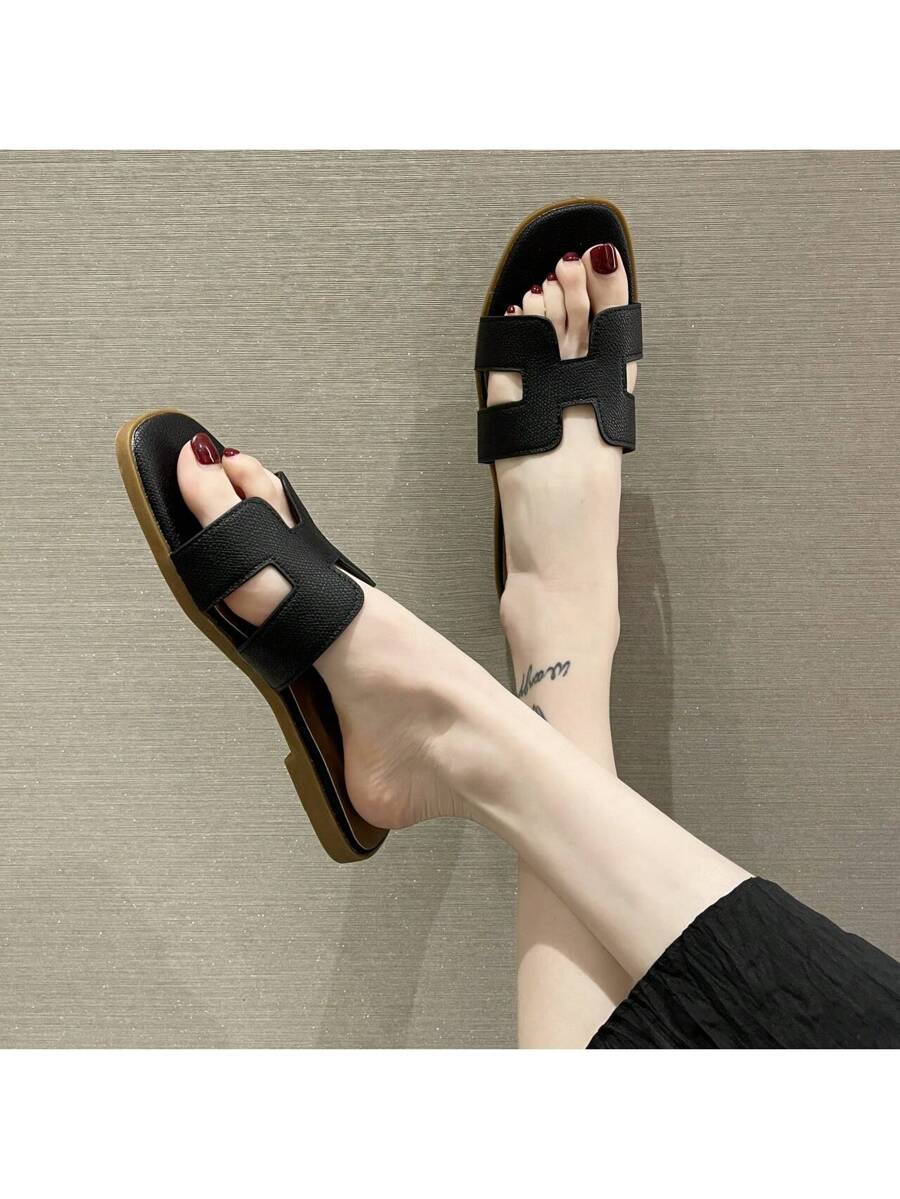 MIU Women's Fashion Open Toe Flat Slippers, Solid Color Boho Style Slip On Sandals, Retro Summer Casual Beach Ladies Flat Slide Sandals, Elegant Suitable For Leisure, Party, Office, Home, Outdoor, Banquet And Other Occasions