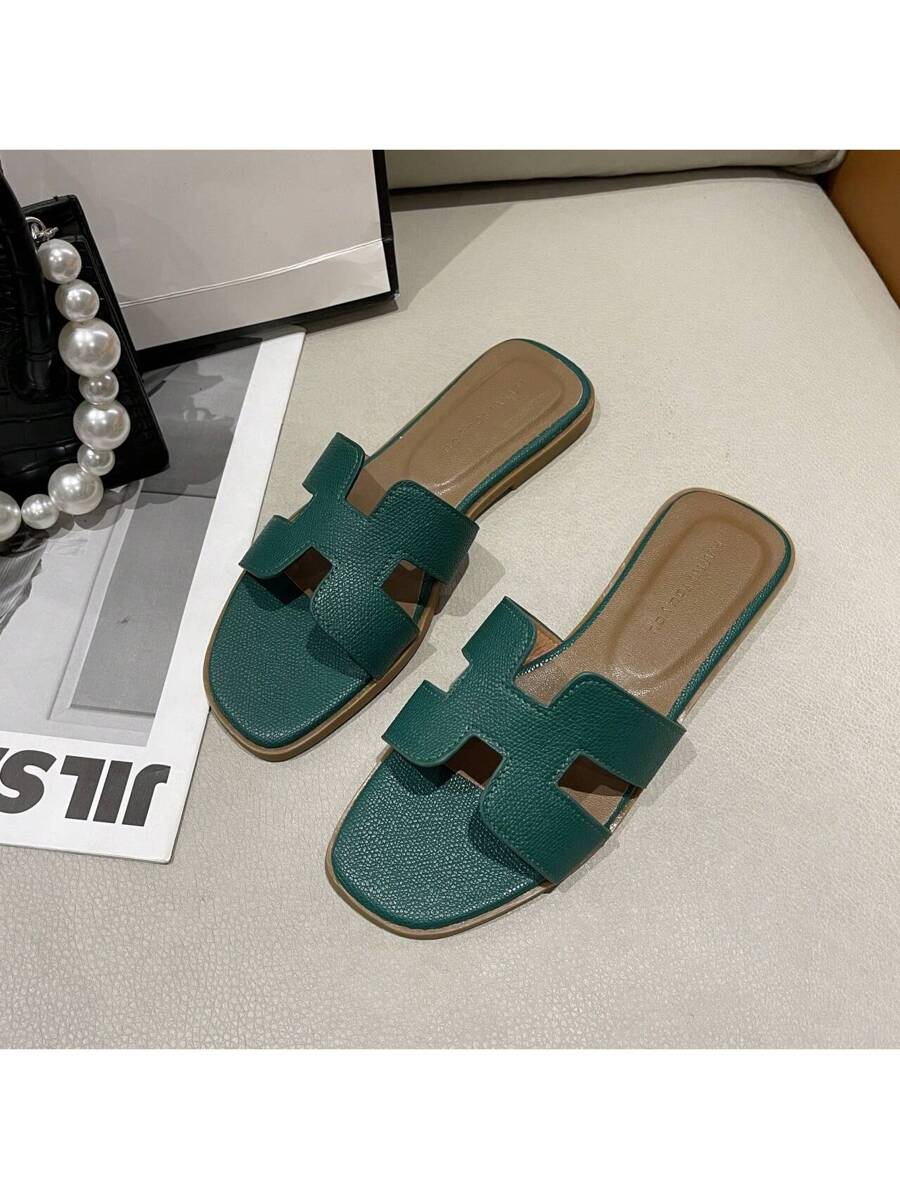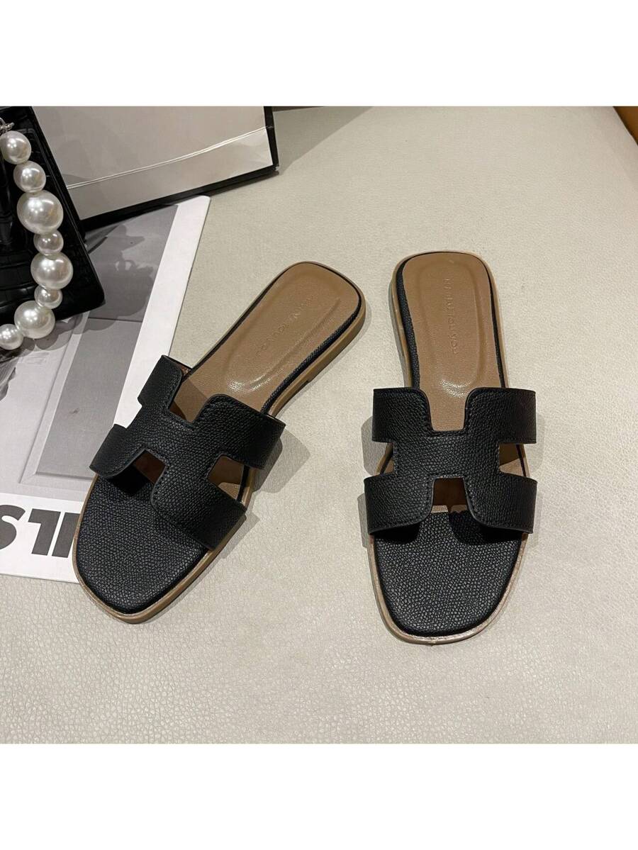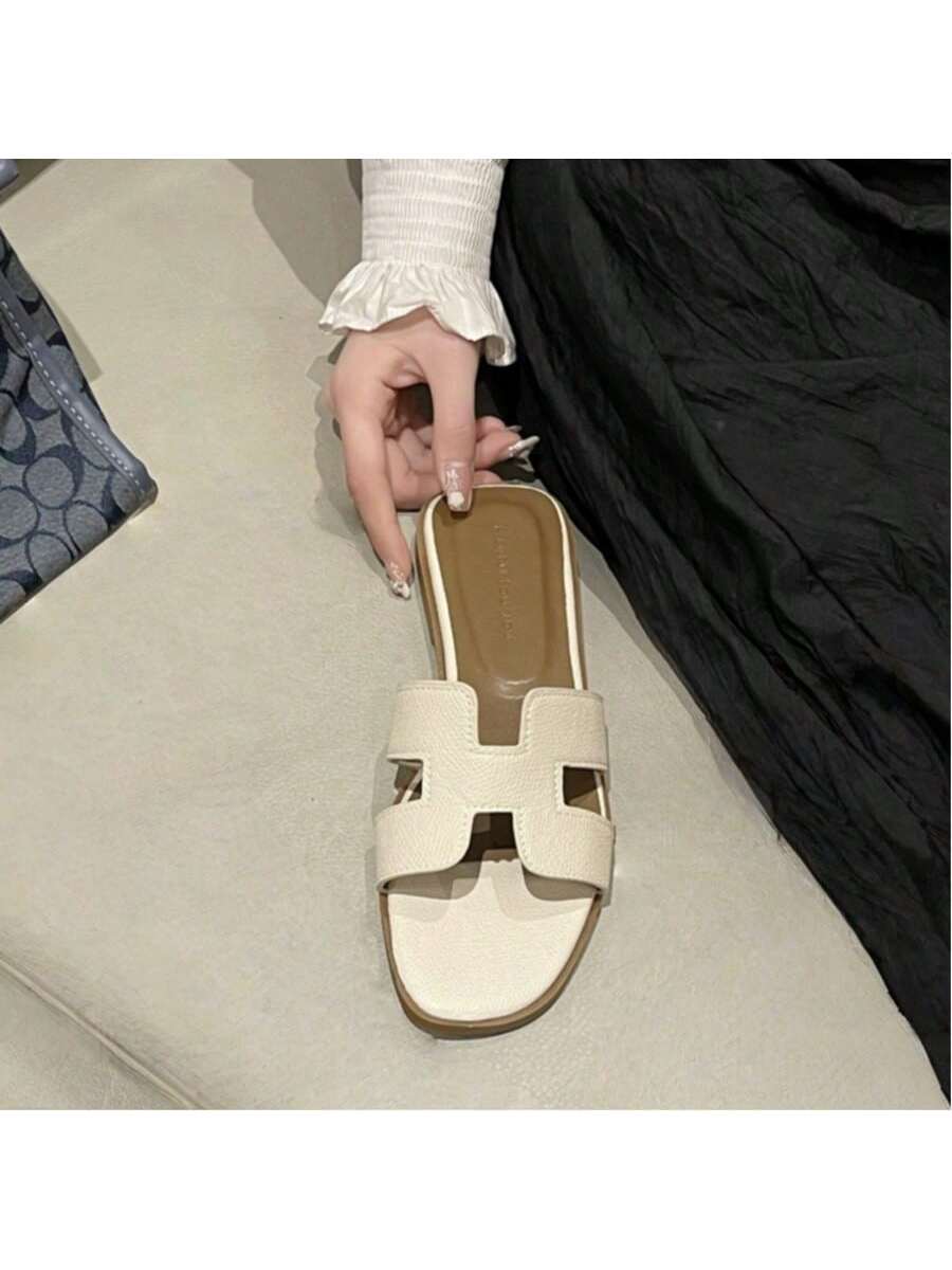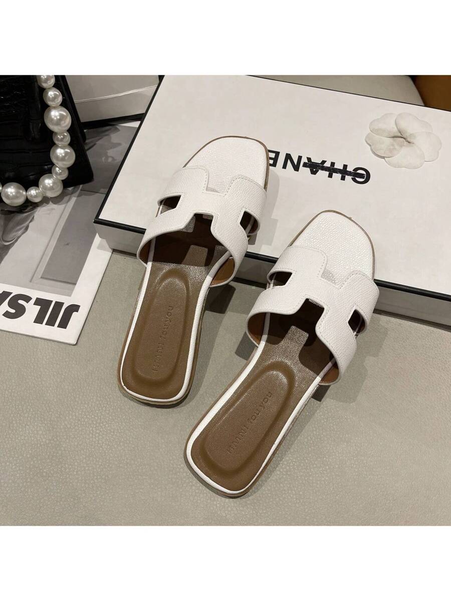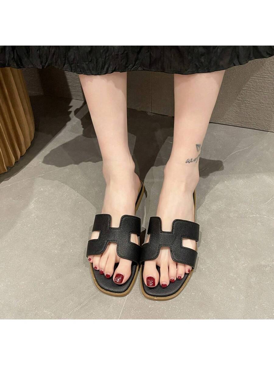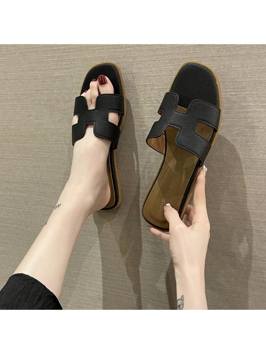 MIU Women's Fashion Open Toe Flat Slippers, Solid Color Boho Style Slip On Sandals, Retro Summer Casual Beach Ladies Flat Slide Sandals, Elegant Suitable For Leisure, Party, Office, Home, Outdoor, Banquet And Other Occasions