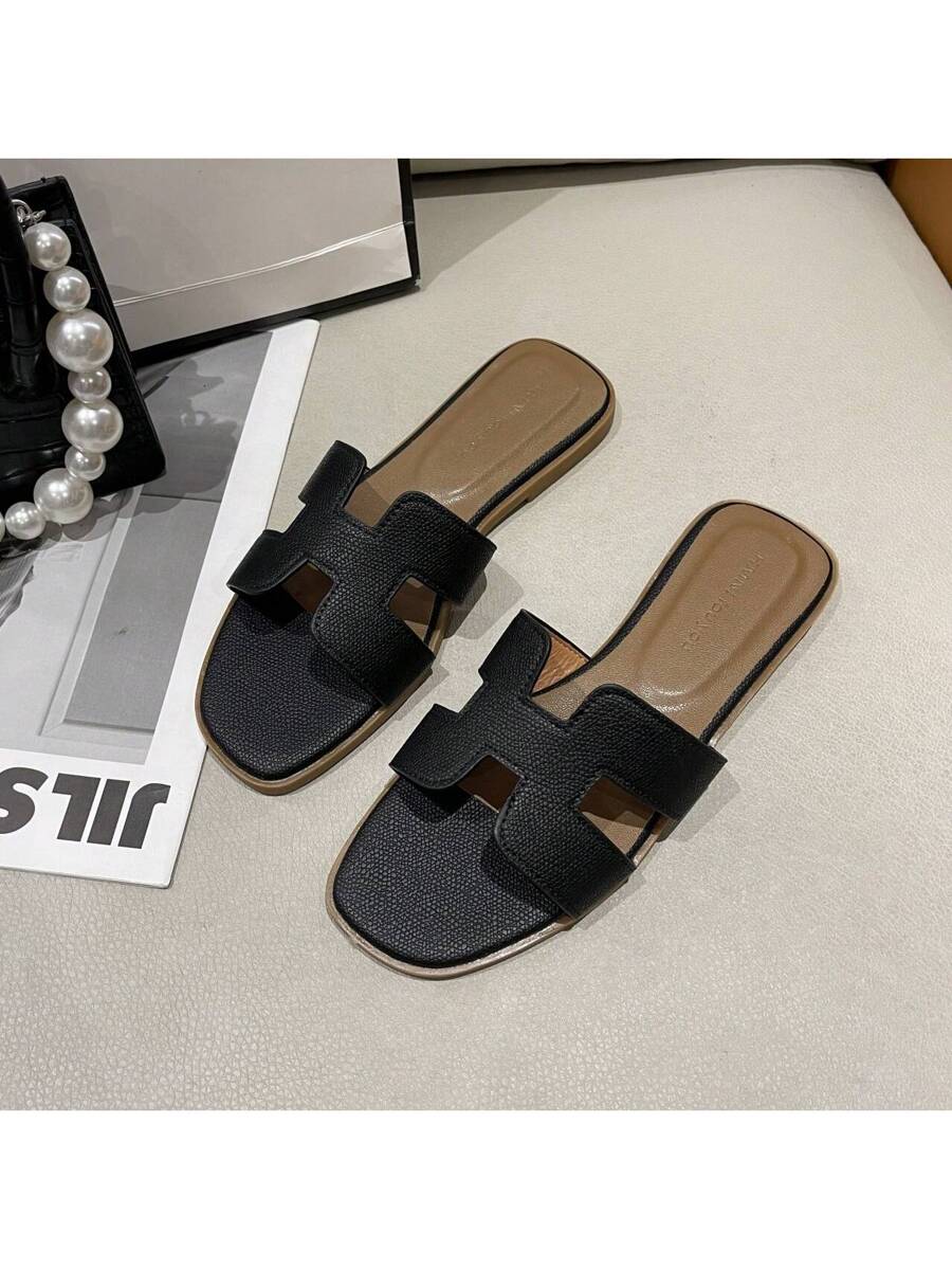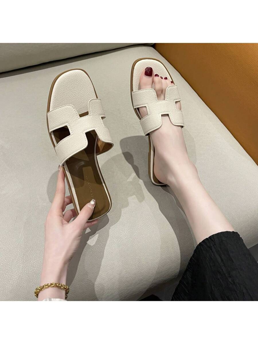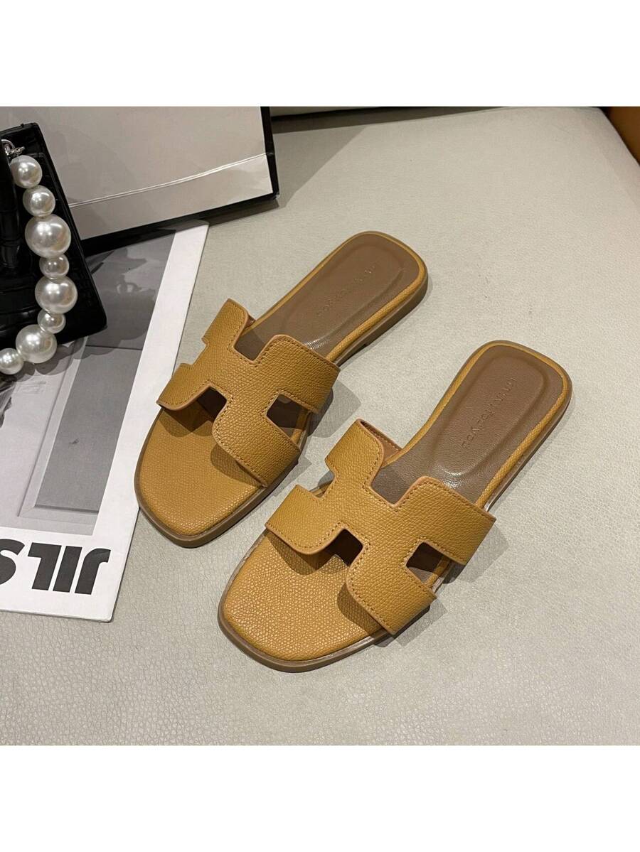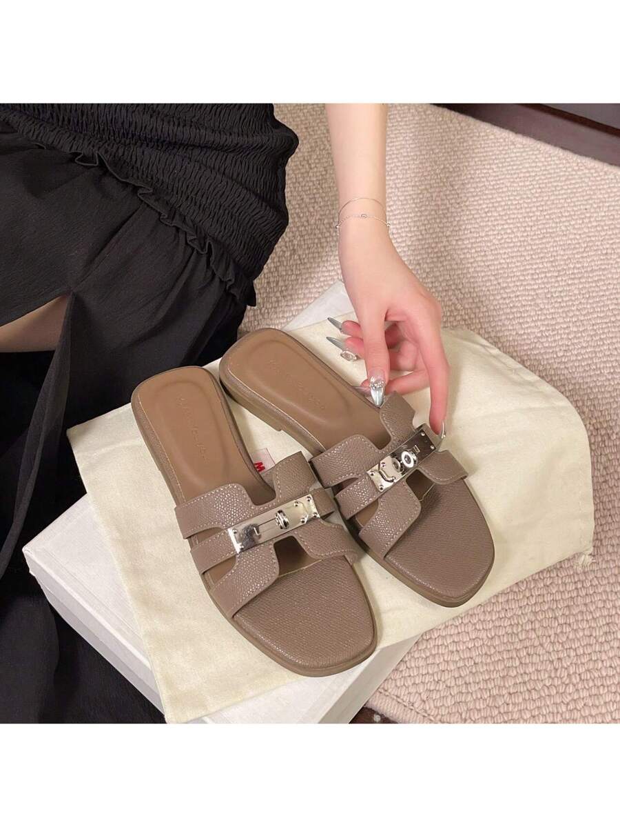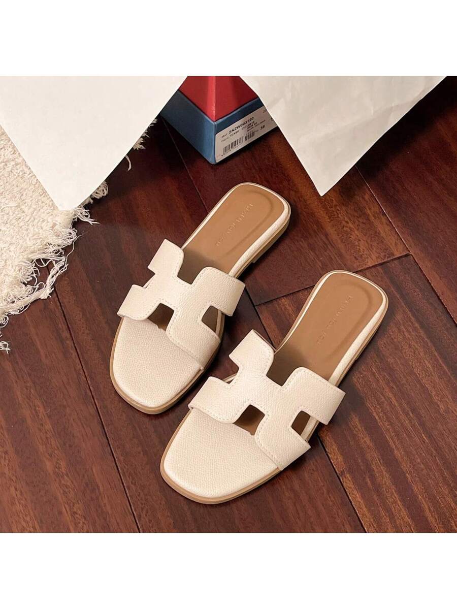 MIU Women's Fashion Open Toe Flat Slippers, Solid Color Boho Style Slip On Sandals, Retro Summer Casual Beach Ladies Flat Slide Sandals, Elegant Suitable For Leisure, Party, Office, Home, Outdoor, Banquet And Other Occasions