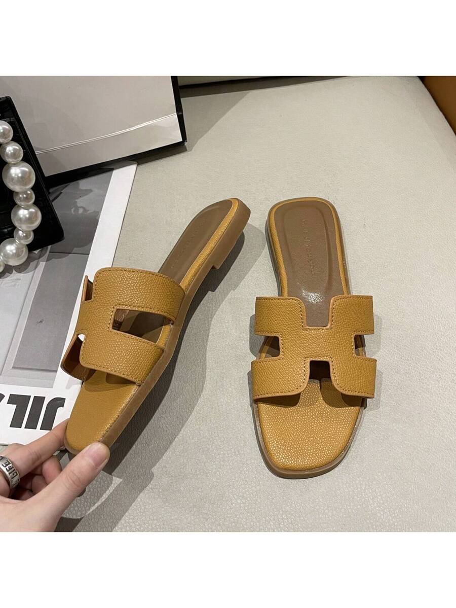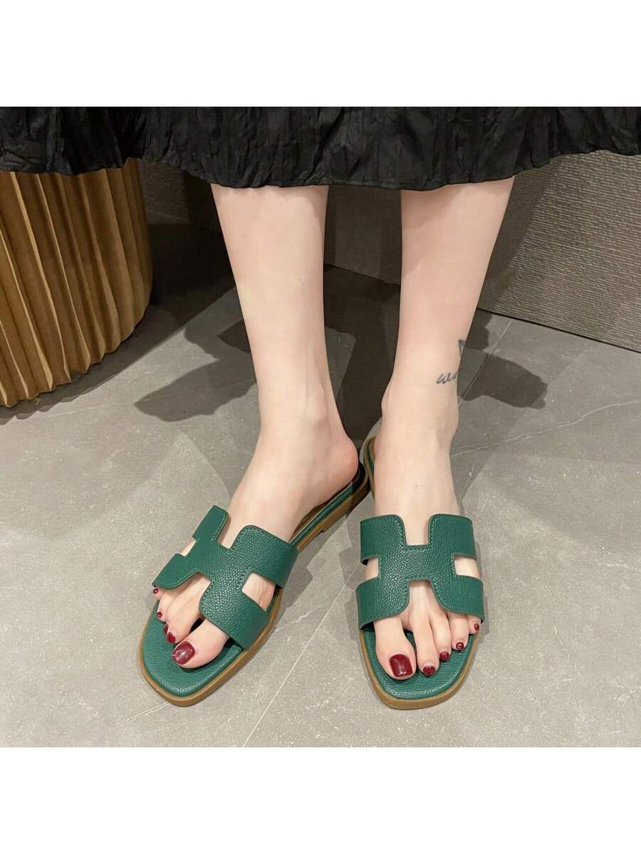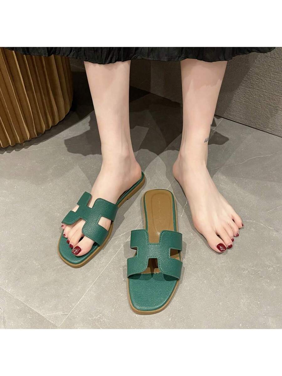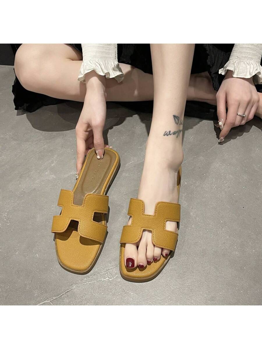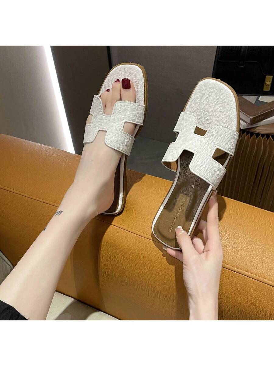 MIU Women's Fashion Open Toe Flat Slippers, Solid Color Boho Style Slip On Sandals, Retro Summer Casual Beach Ladies Flat Slide Sandals, Elegant Suitable For Leisure, Party, Office, Home, Outdoor, Banquet And Other Occasions