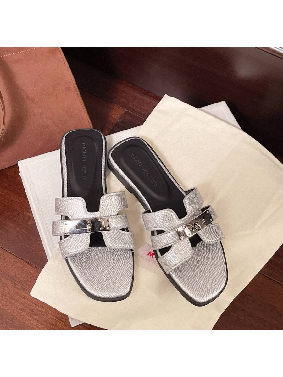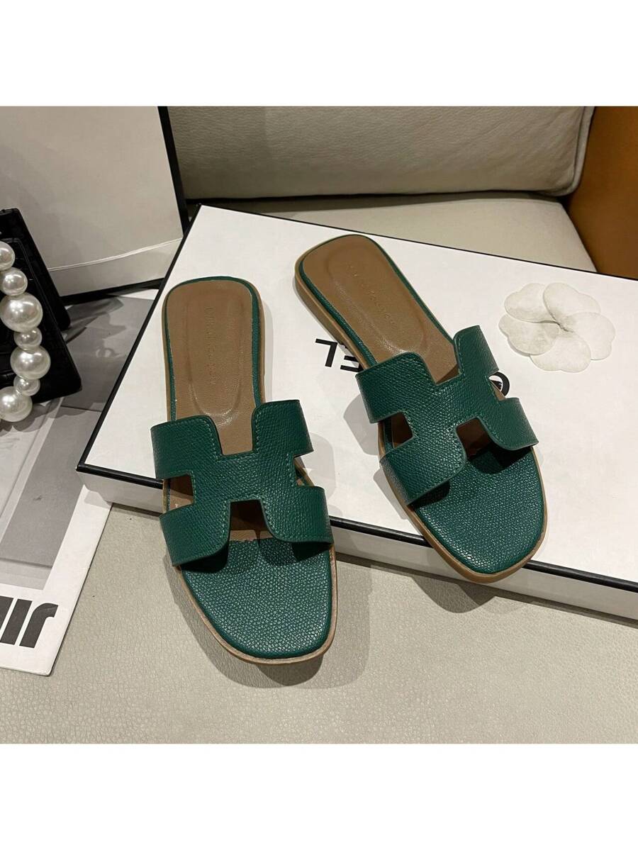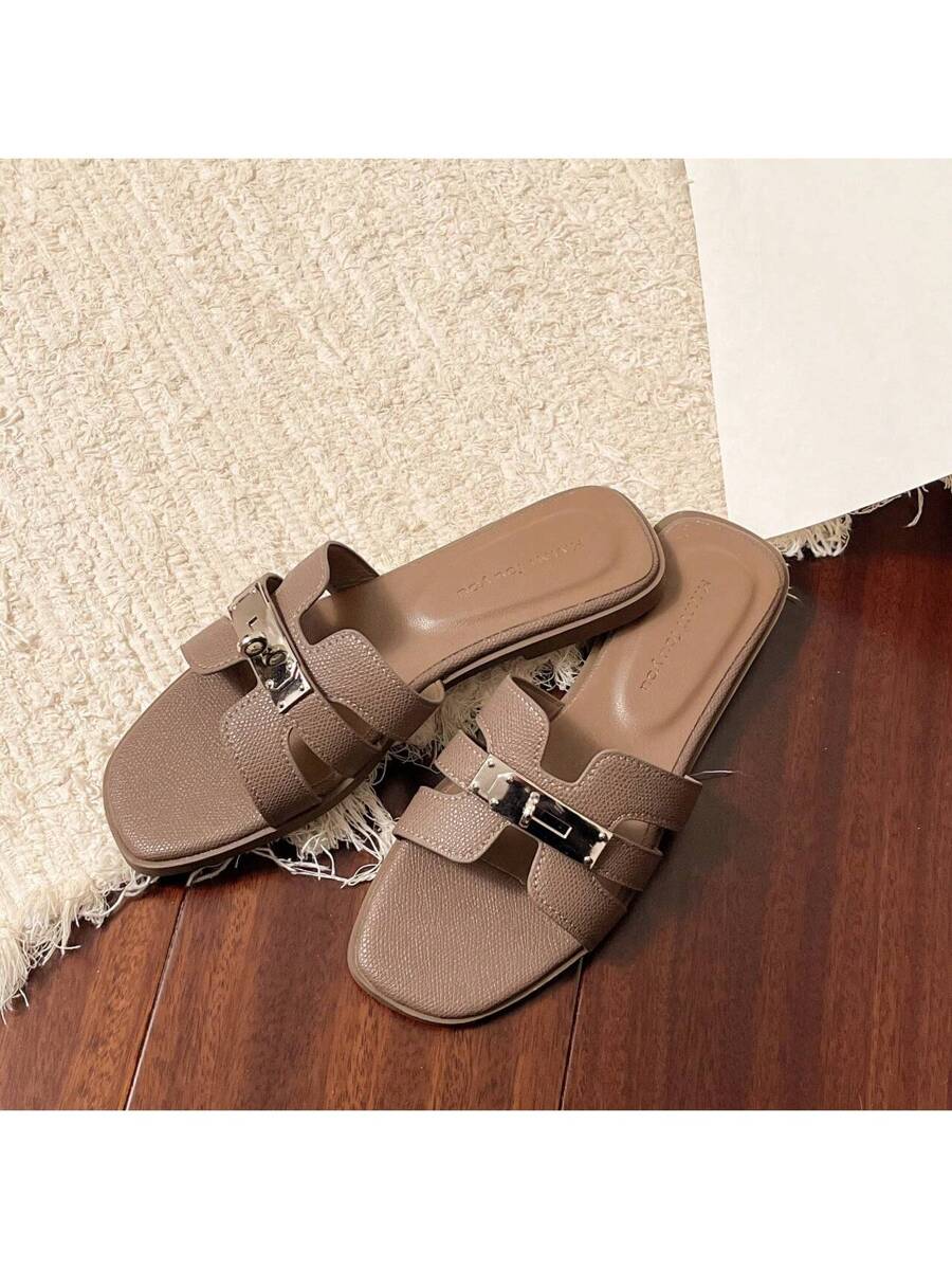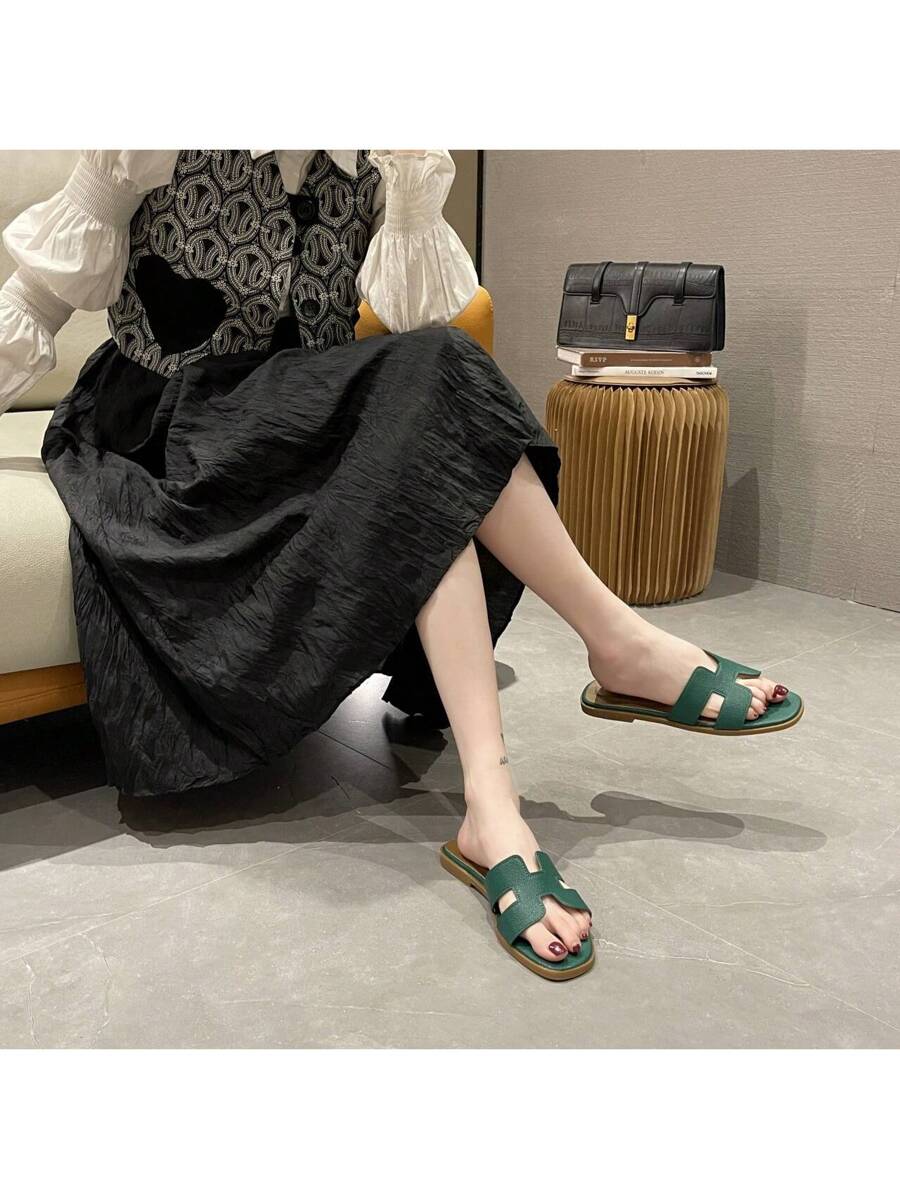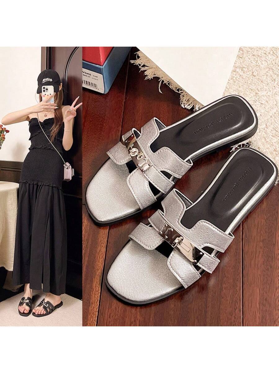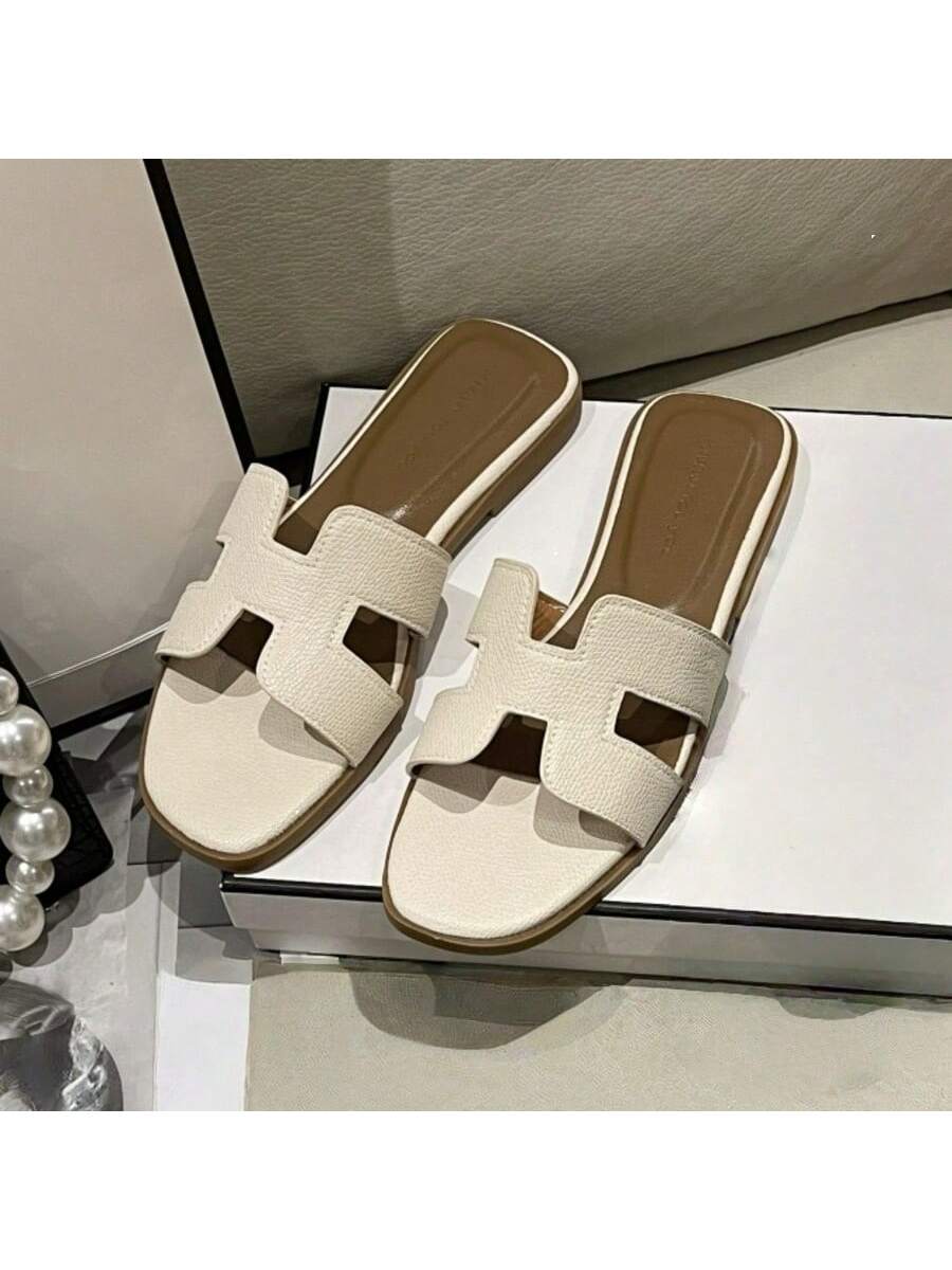 MIU Women's Fashion Open Toe Flat Slippers, Solid Color Boho Style Slip On Sandals, Retro Summer Casual Beach Ladies Flat Slide Sandals, Elegant Suitable For Leisure, Party, Office, Home, Outdoor, Banquet And Other Occasions