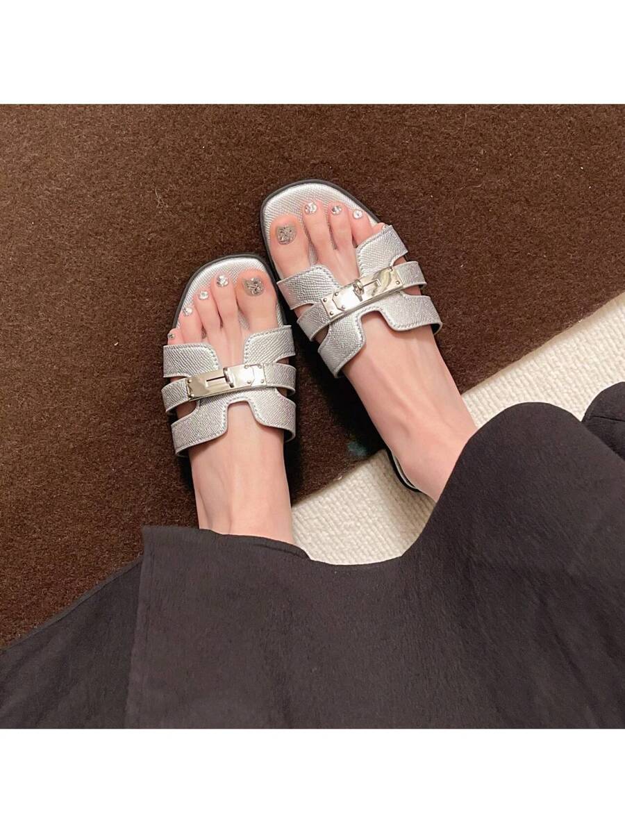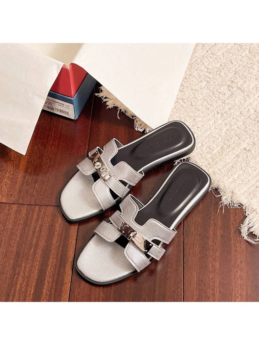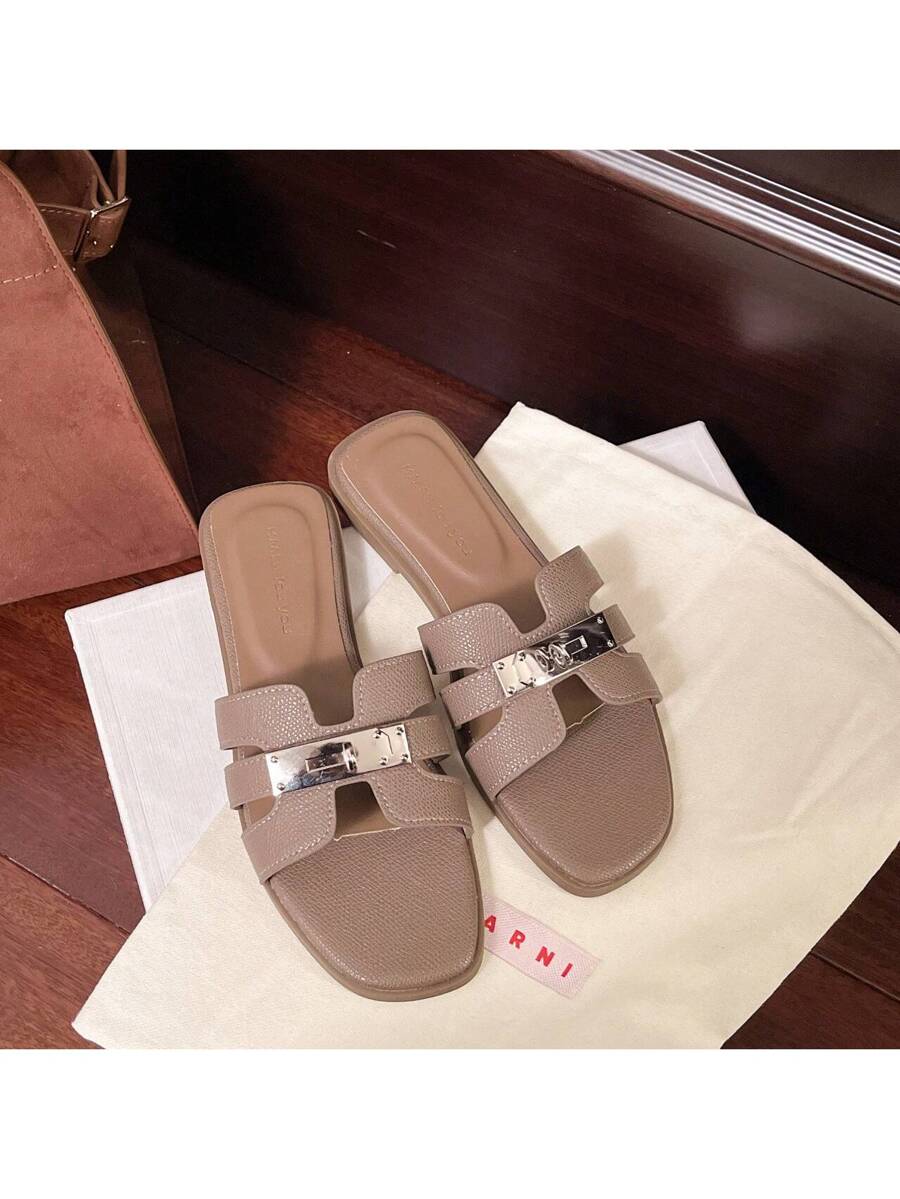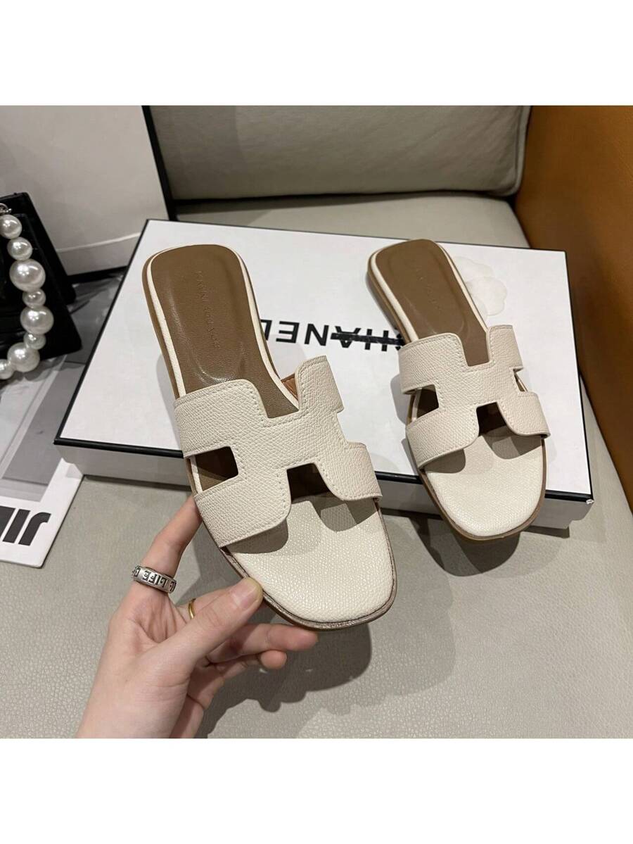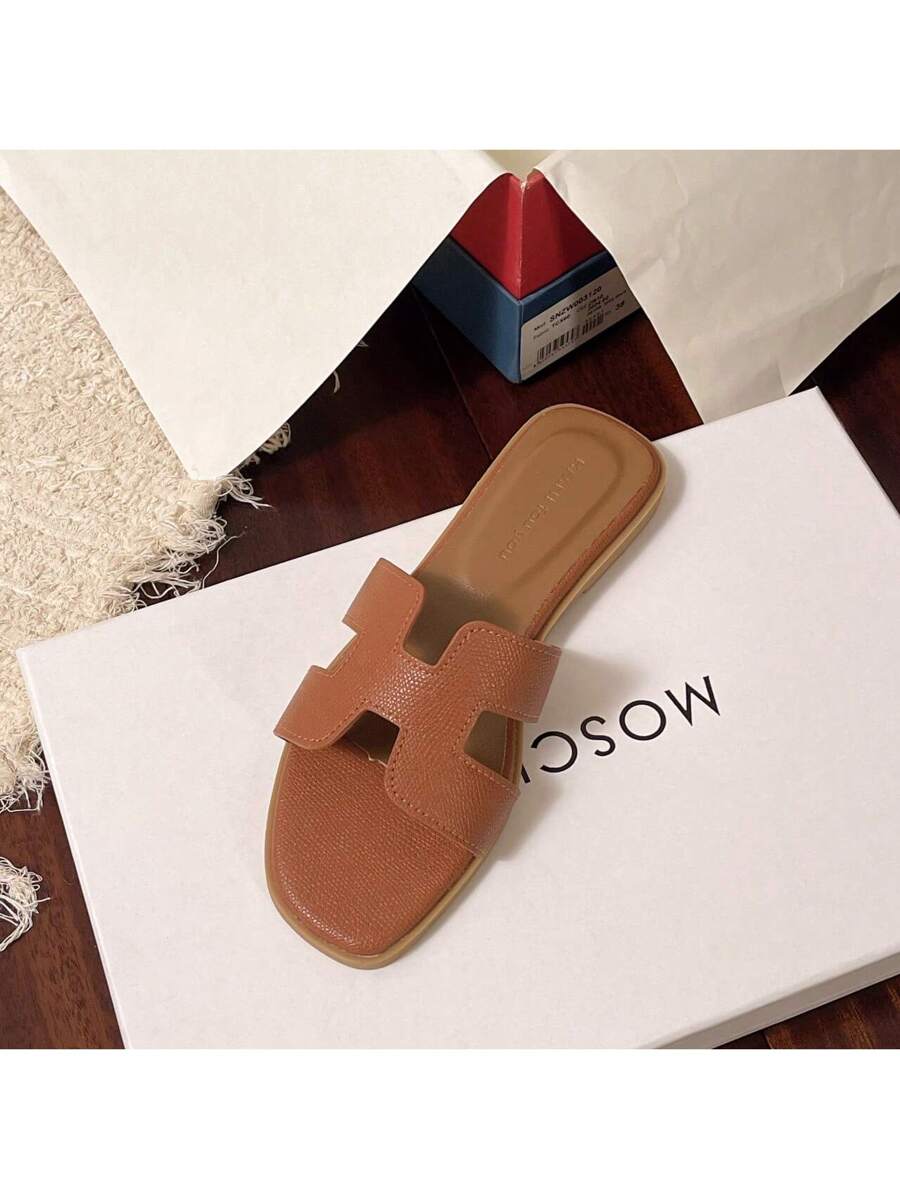 MIU Women's Fashion Open Toe Flat Slippers, Solid Color Boho Style Slip On Sandals, Retro Summer Casual Beach Ladies Flat Slide Sandals, Elegant Suitable For Leisure, Party, Office, Home, Outdoor, Banquet And Other Occasions