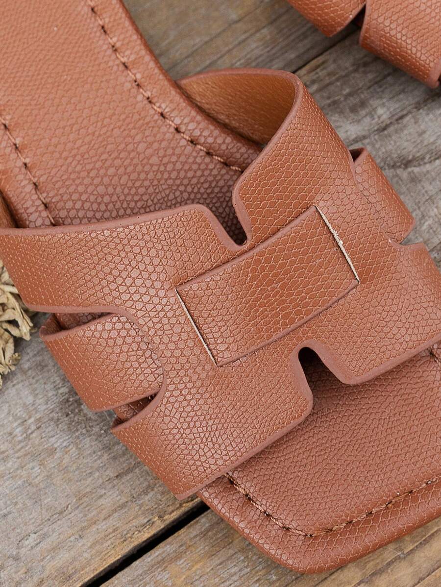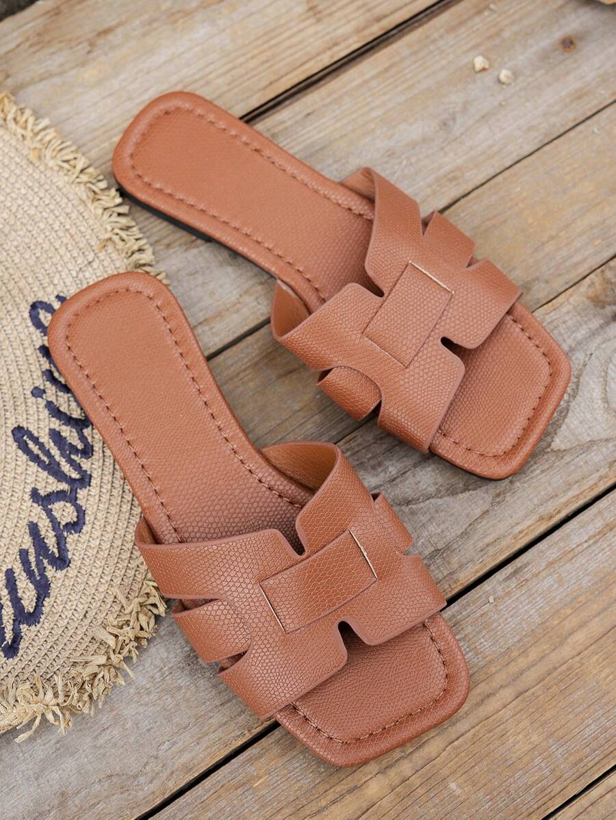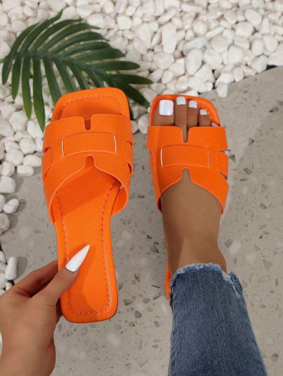 MIU Women's Fashion Square Toe Flat Slippers, Versatile Open Toe Sandals For Spring Summer, Solid Color Casual Ladies Sandals
