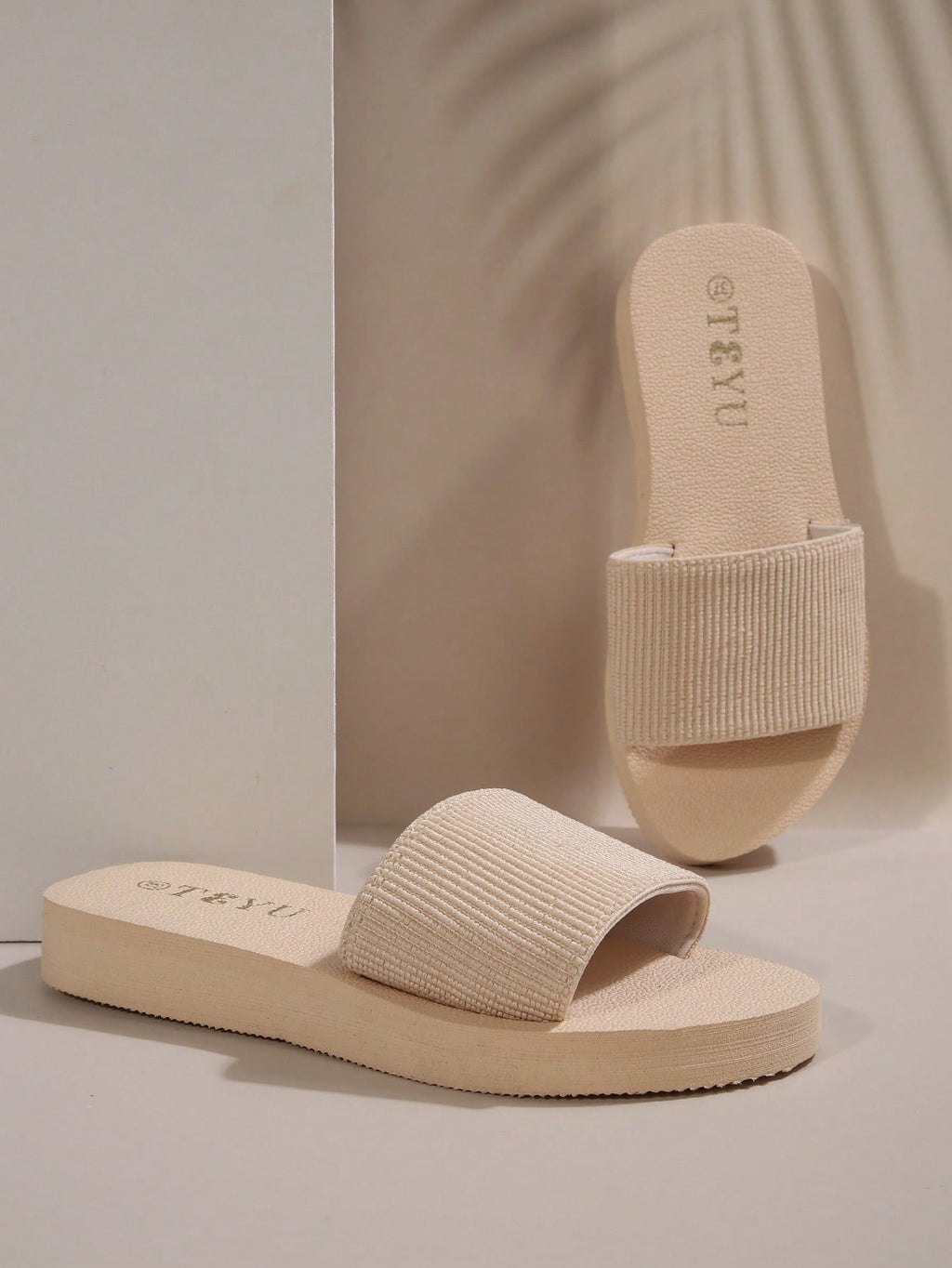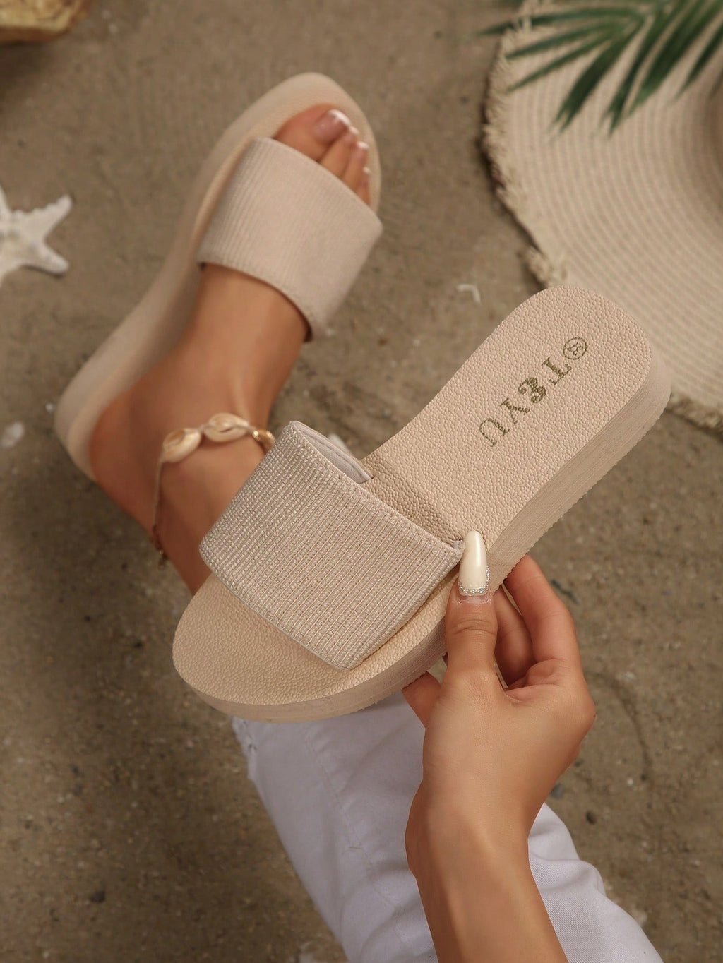 MIU Women's Fashion Thick-Sole Cream White Slippers, Comfortable Soft-Bottom Indoor Home Slippers, Suitable For Beach Resort