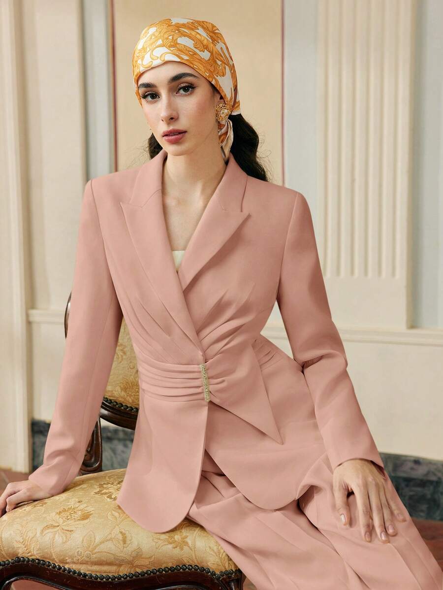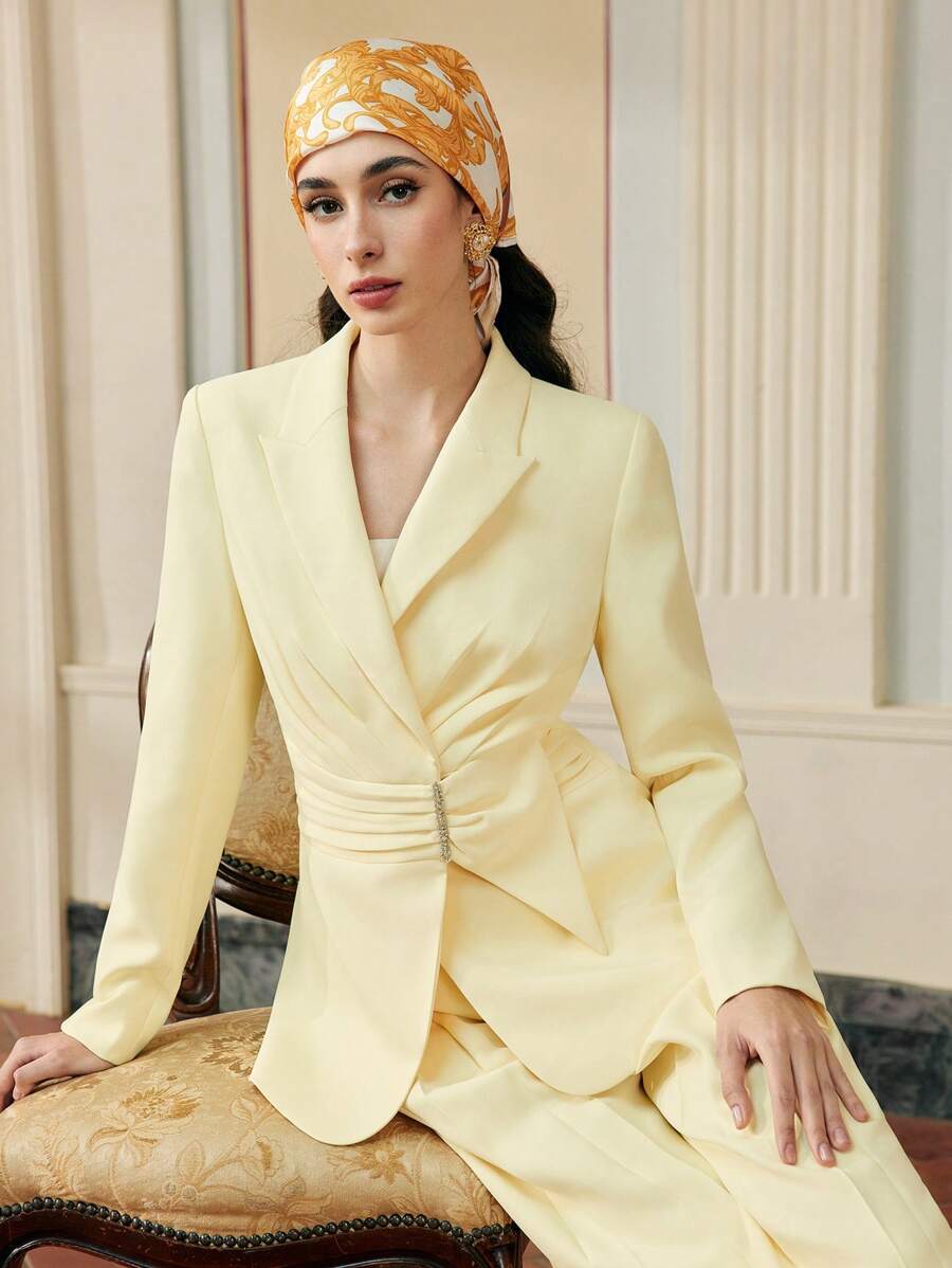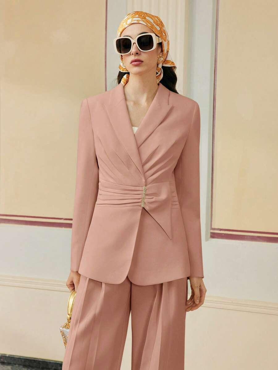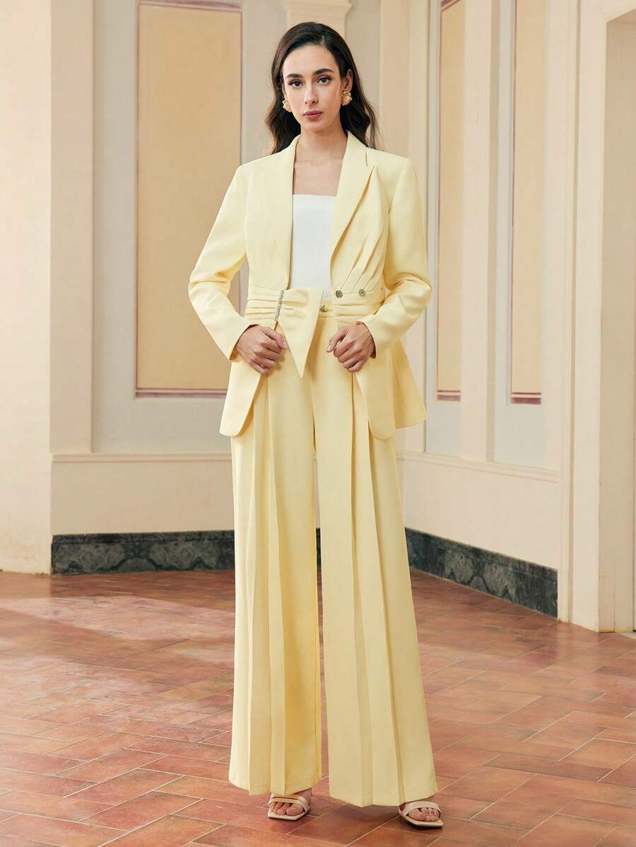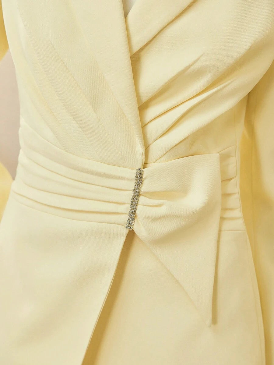 MIU WOMEN'S FOLD PLEATED BOW DECOR BLAZER, SPRING SUMMER