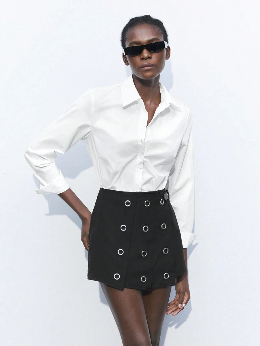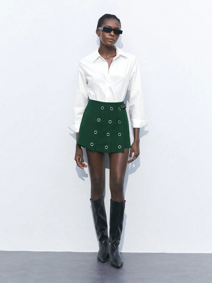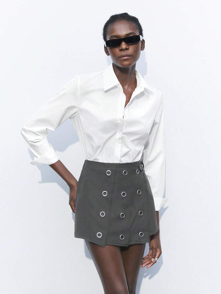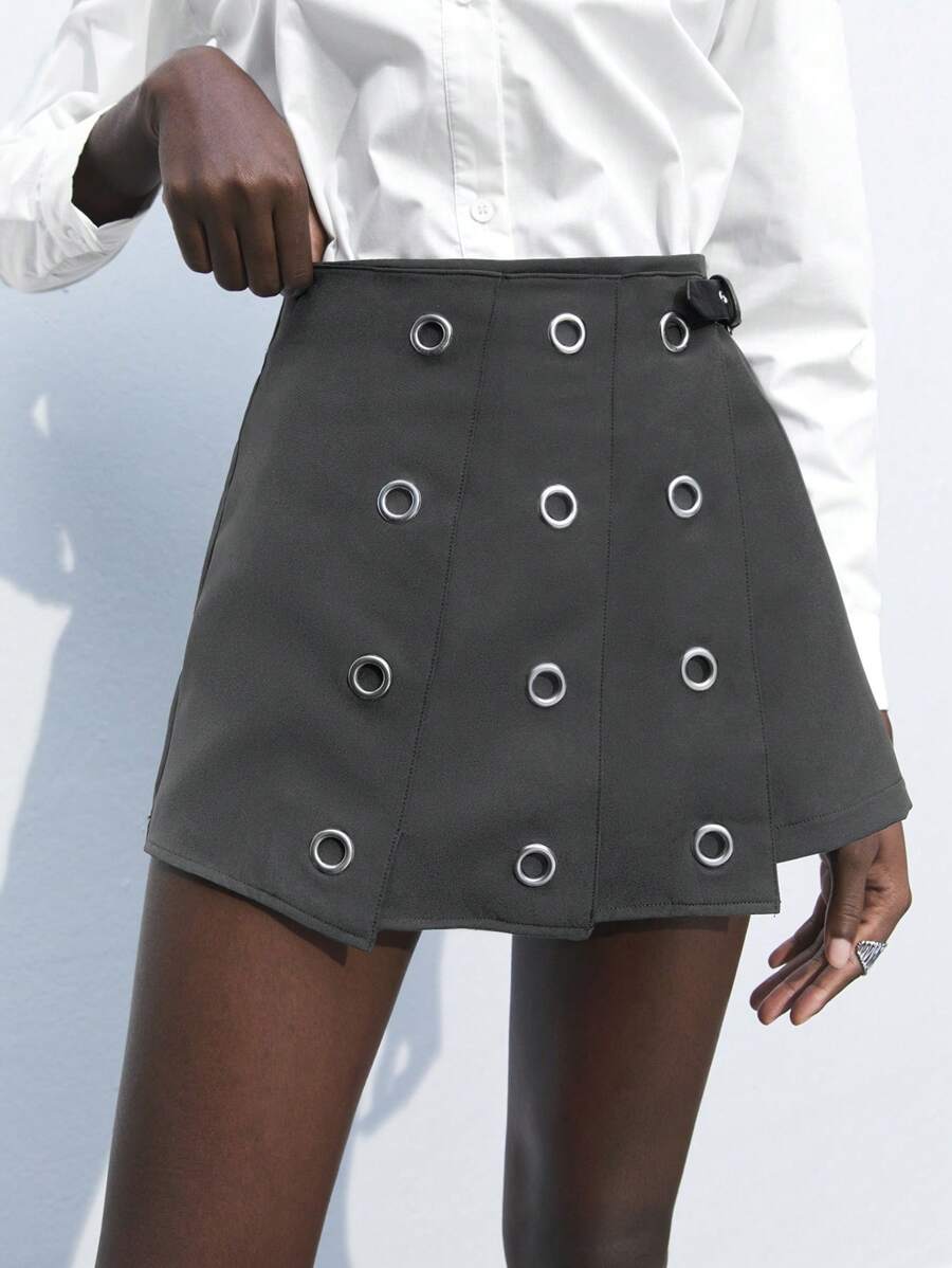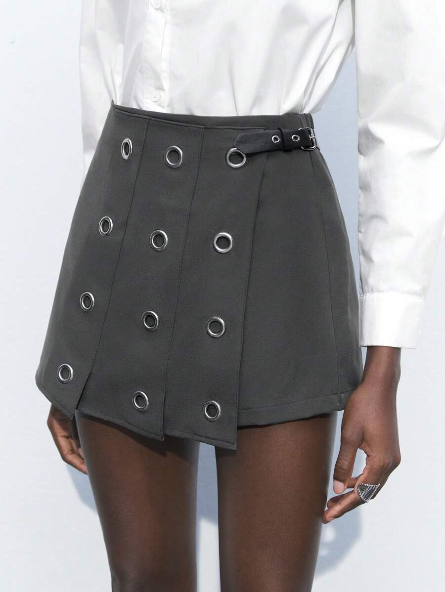 MIU Women's Gray Eyelet Design Versatile Modern Fashion Office/Casual A-Line Skorts,Summer Dresses For Women, Country Concert Outfit,European Summer