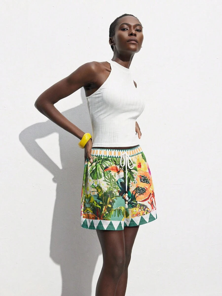 MIU Women's Green Casual Elegant Vacation Shorts Suitable For Independence Day, Graduation Season, Island And Beach Outfits, Cruise Travel, Spring