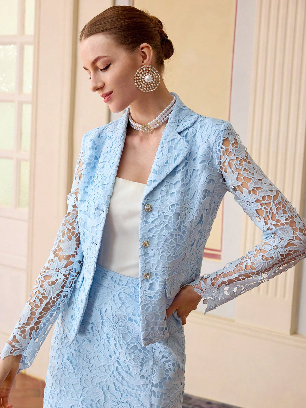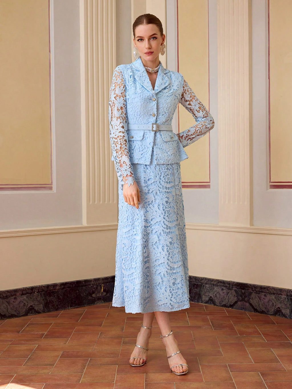 MIU Women's LACE BELTED SPRING FITTED BLAZER