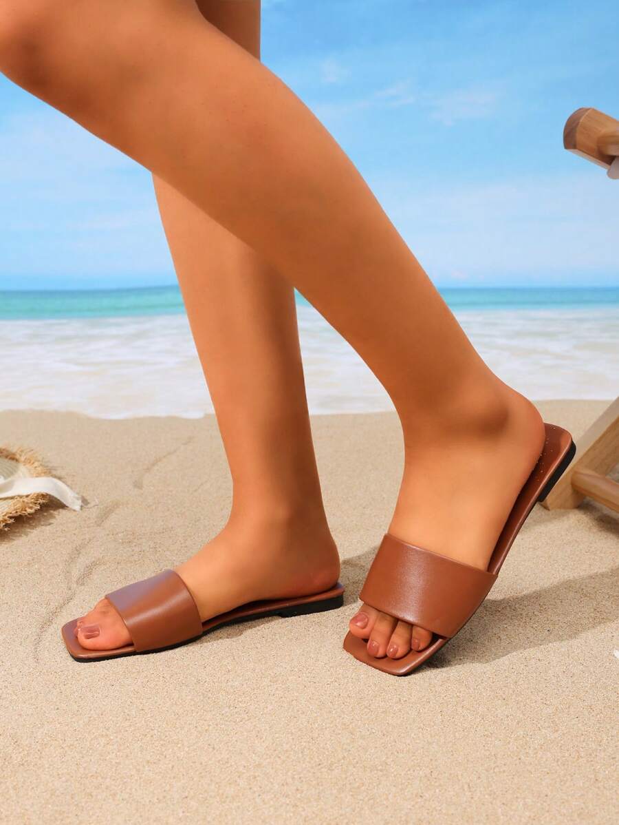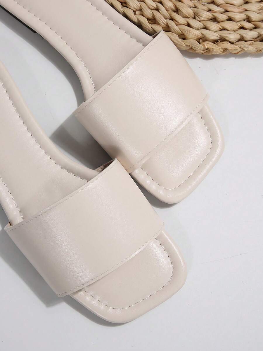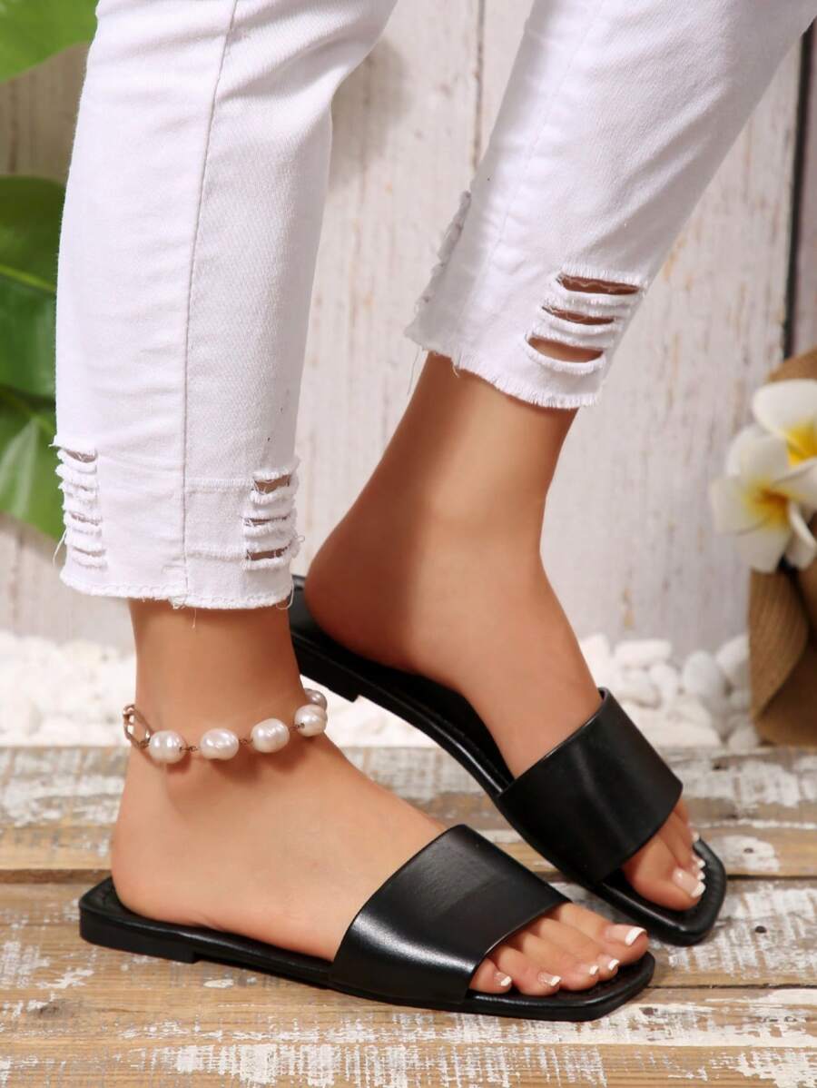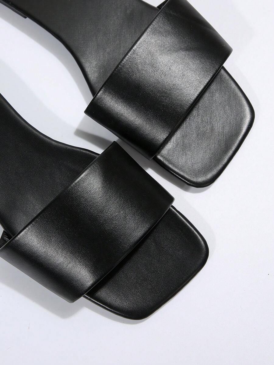MIU Women's Leather One-Piece Flat Slide Sandals, Black Lightweight Soft Bottom Low Heel Slip-On Mule Sandals For Summer Casual Wear