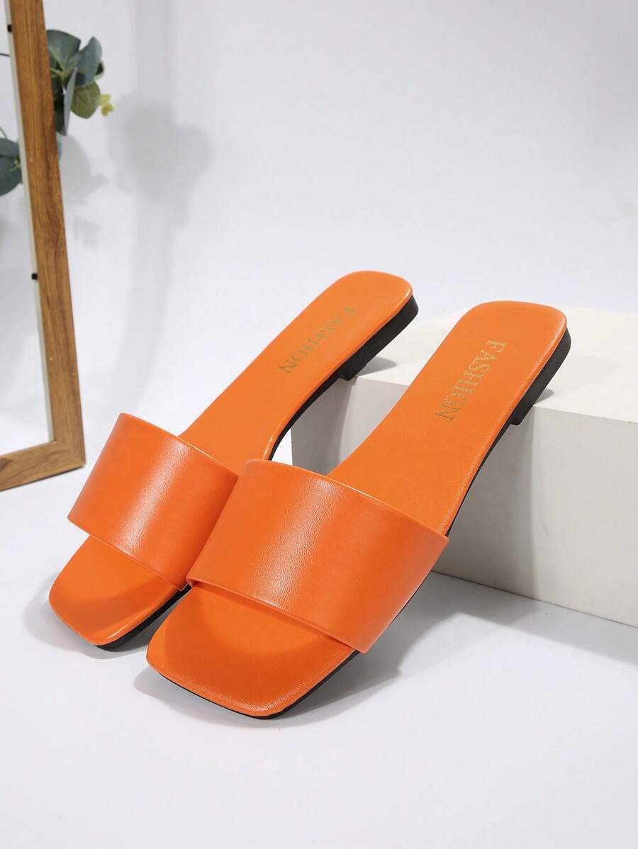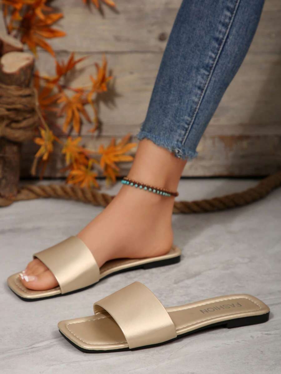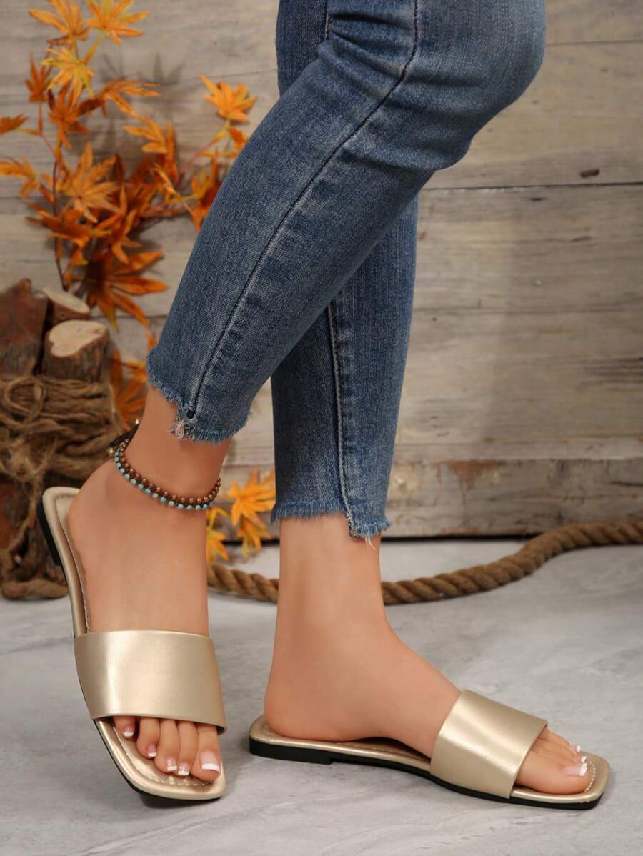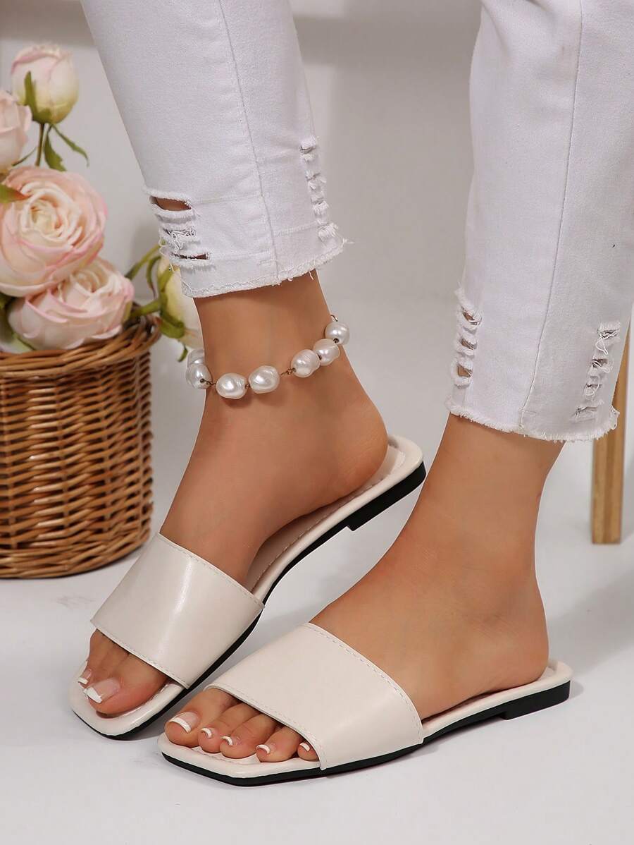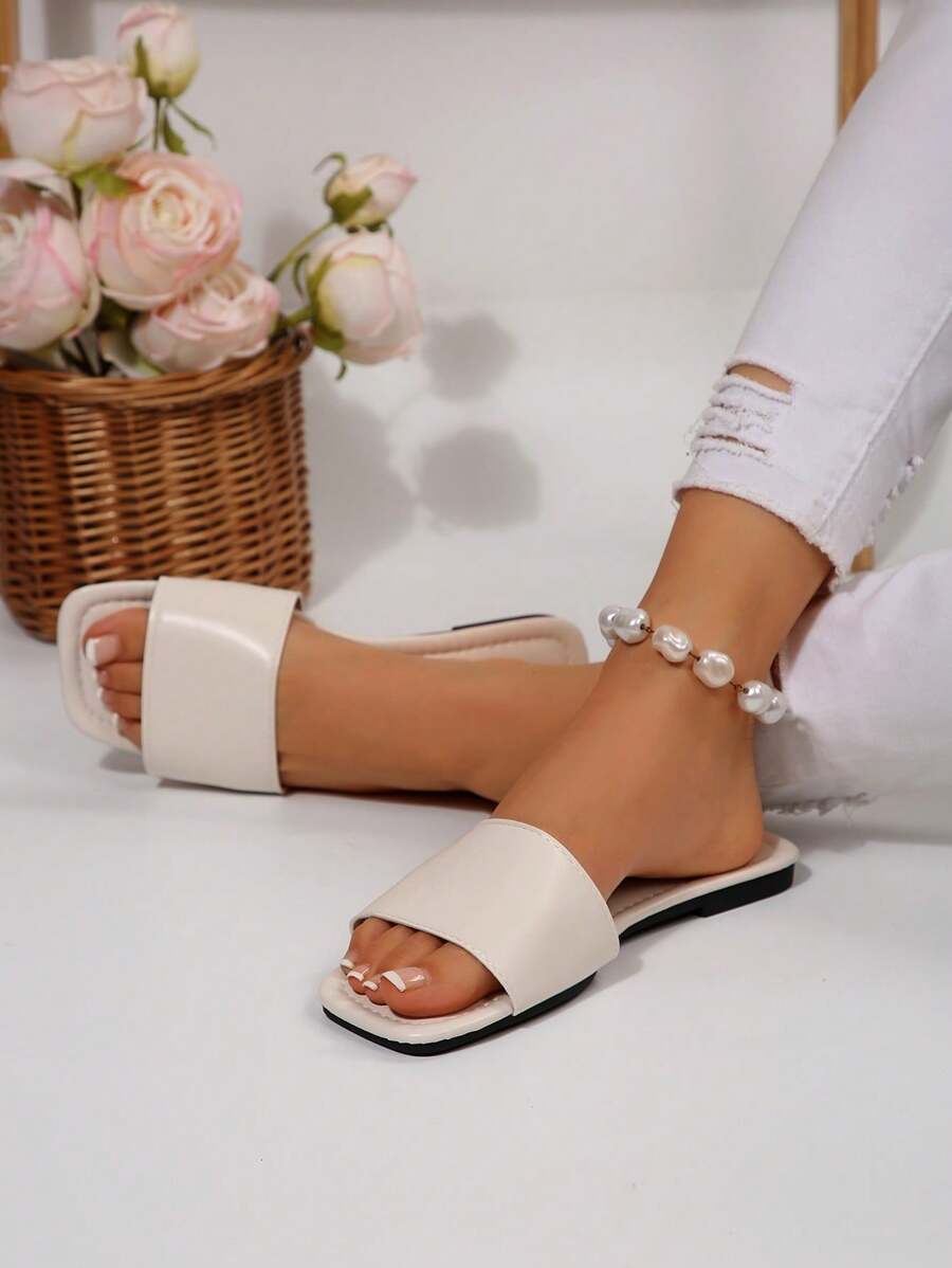 MIU Women's Leather One-Piece Flat Slide Sandals, Black Lightweight Soft Bottom Low Heel Slip-On Mule Sandals For Summer Casual Wear